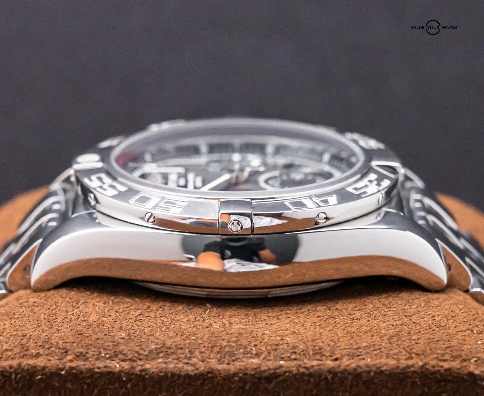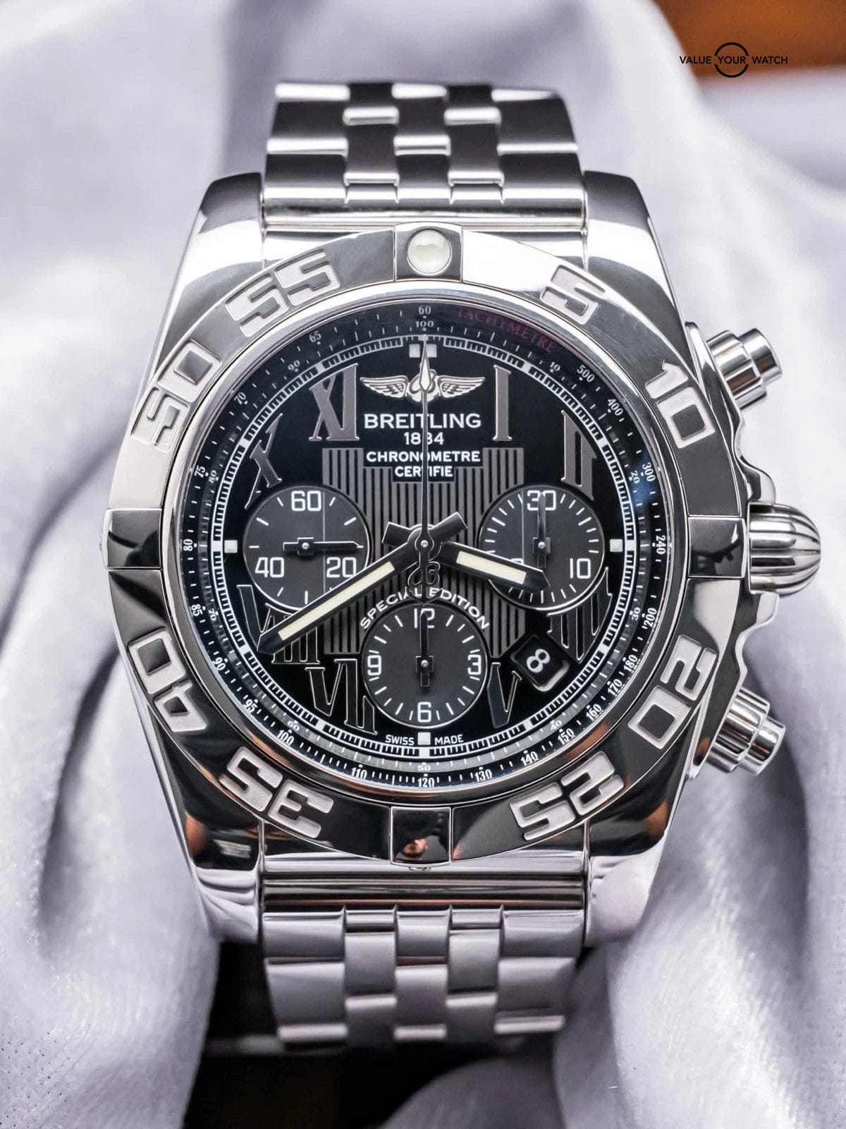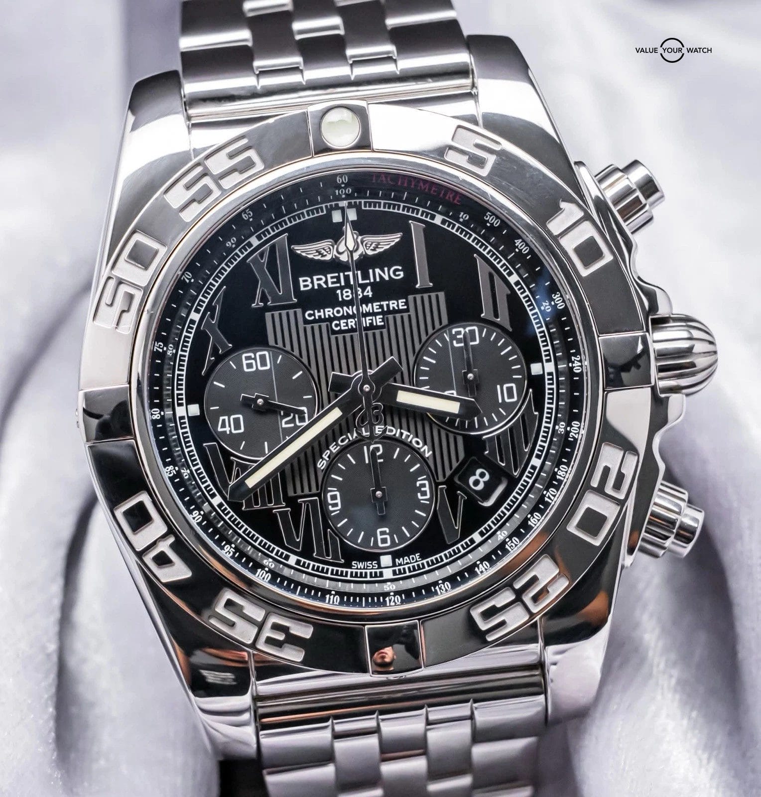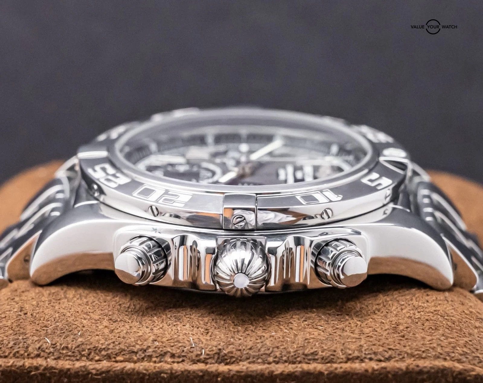 Specification: Breitling Chronomat 44 B01 Black Roman $9K MSRP Box SERVICED Bracelet AB0110