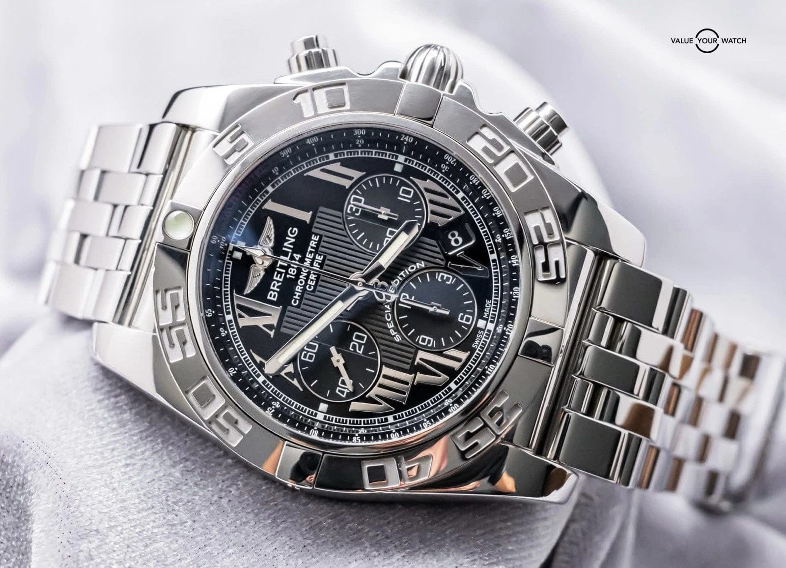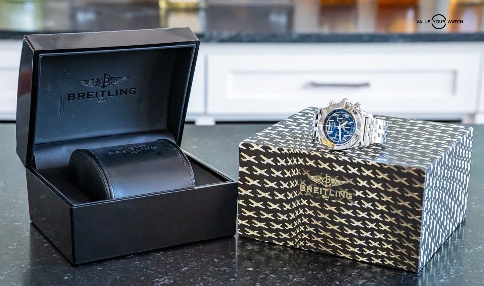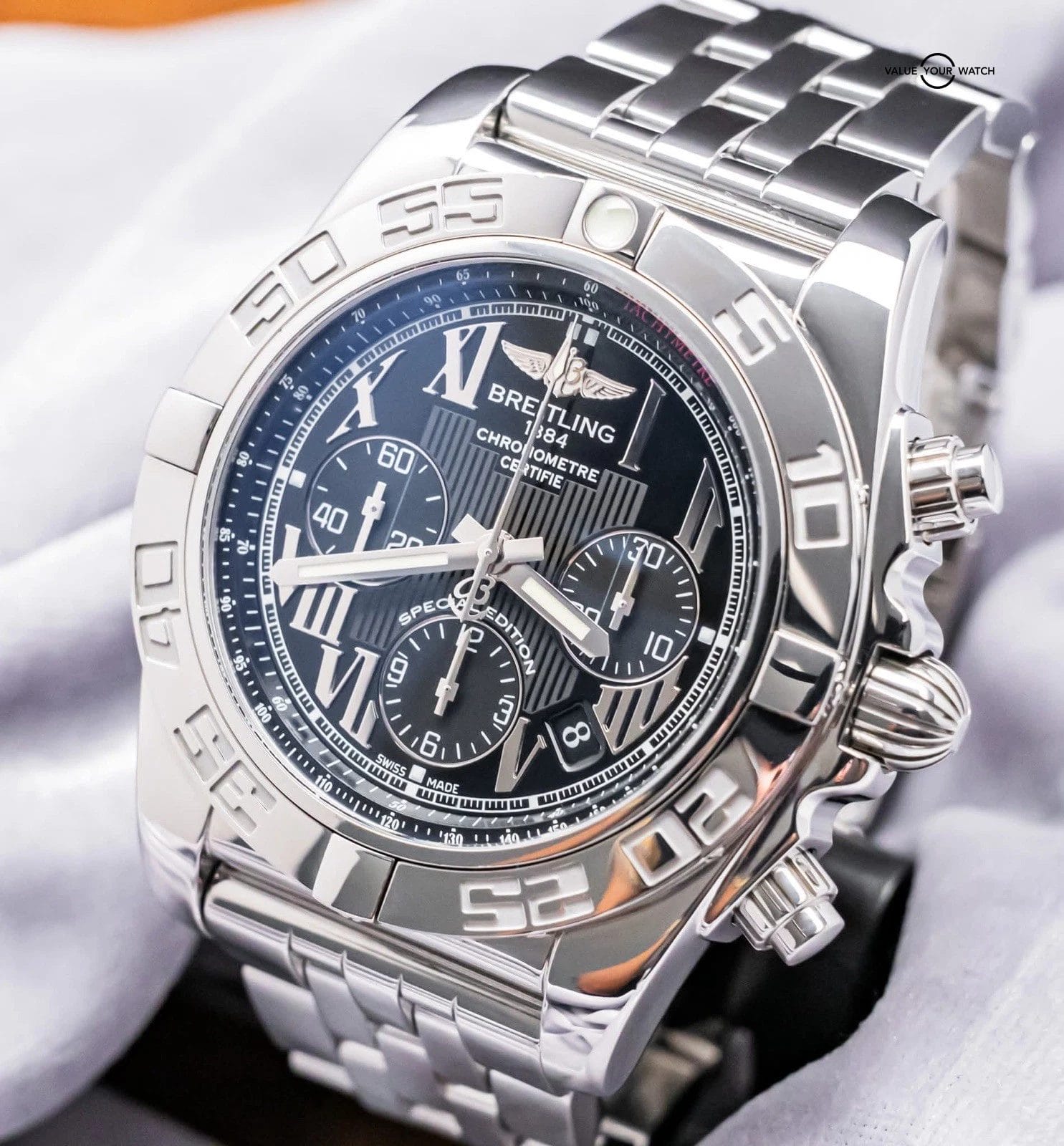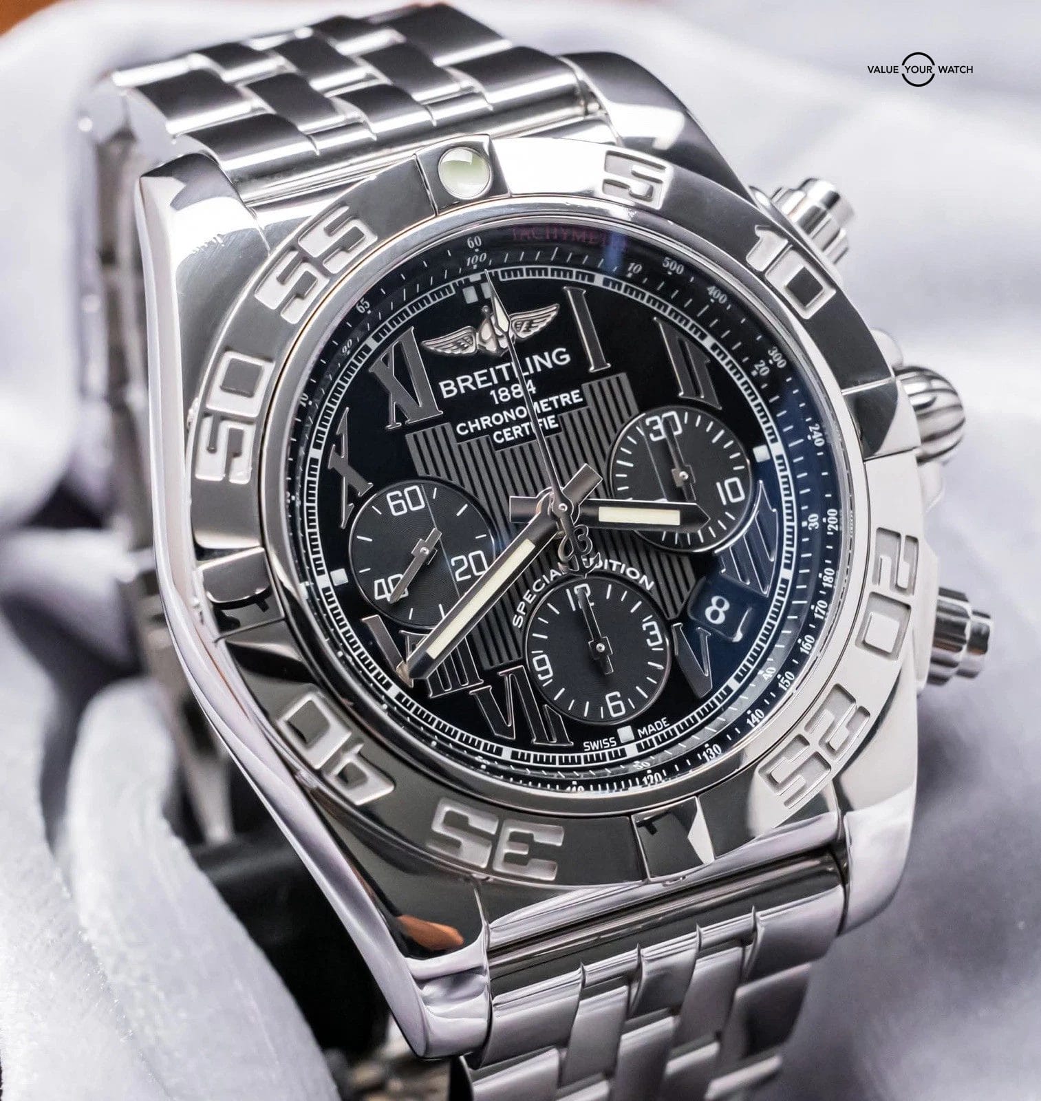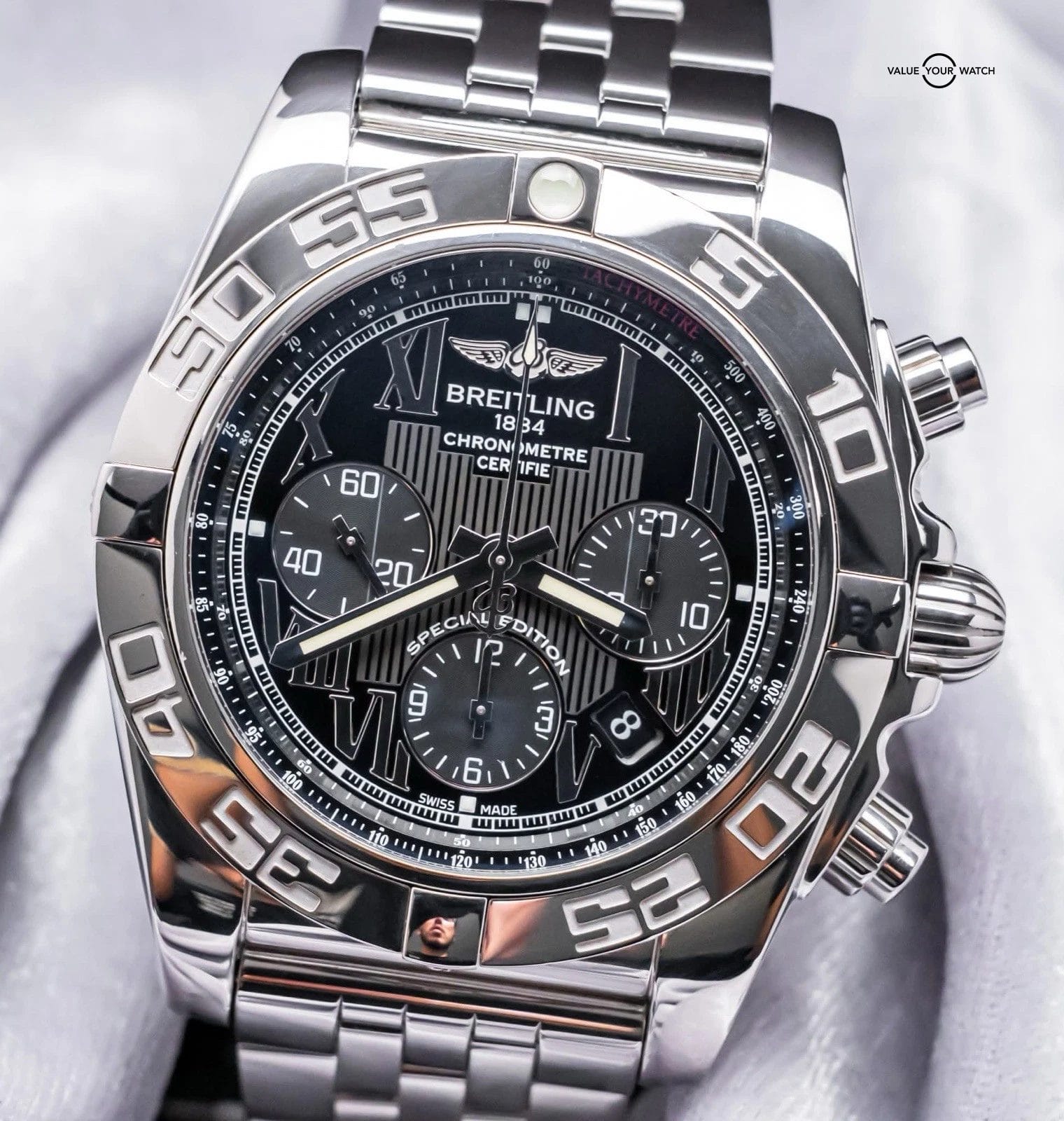 Specification: Breitling Chronomat 44 B01 Black Roman $9K MSRP Box SERVICED Bracelet AB0110