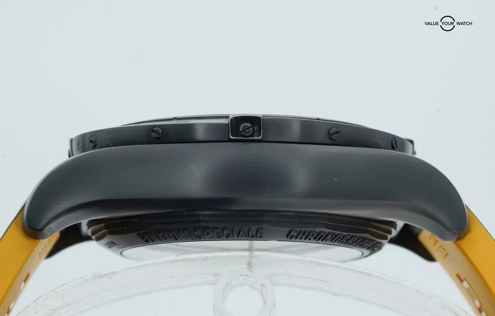 This beautiful timepiece comes with the outer brown box, inner travel roll, manuals, COSC Papers, and the original warranty card. The watch is in excellent pre-owned condition with very light cosmetic wear on the clasp. The