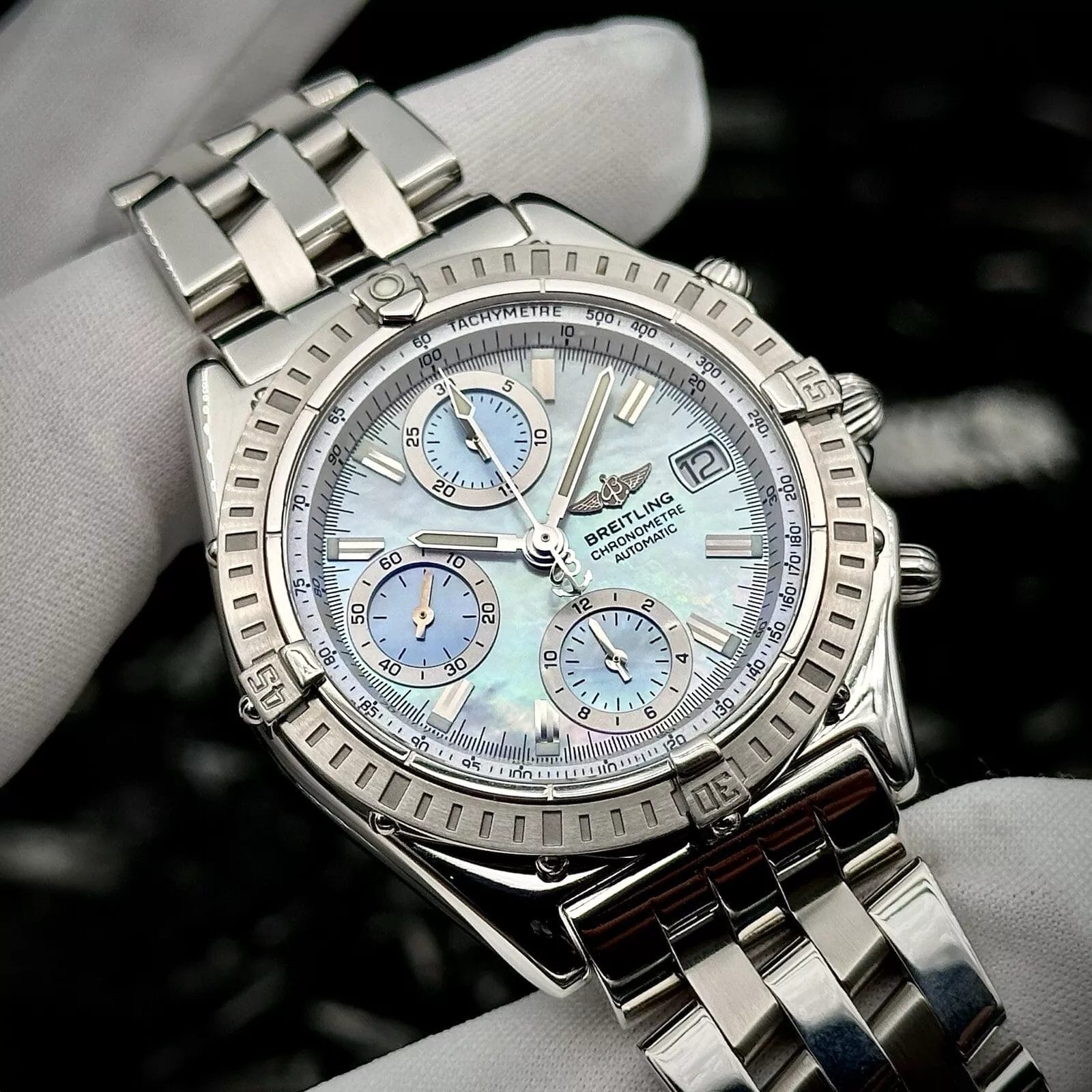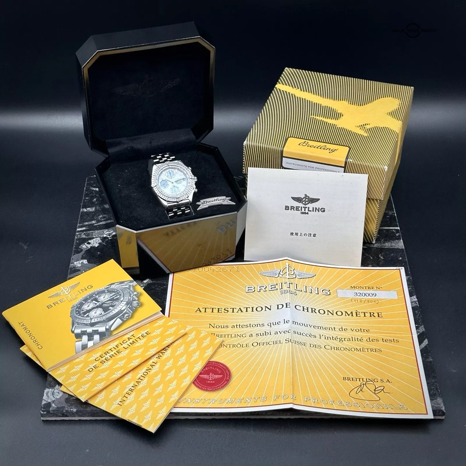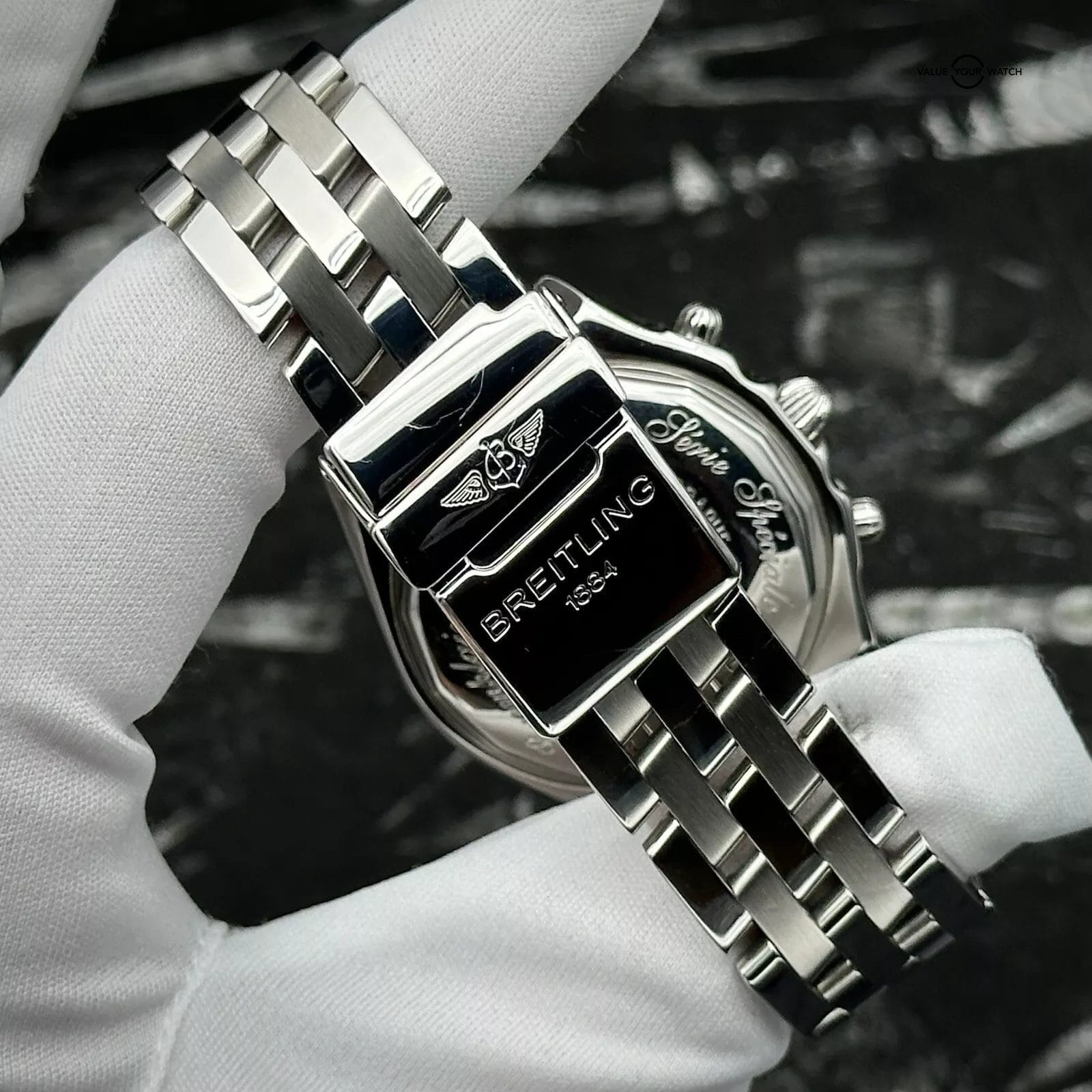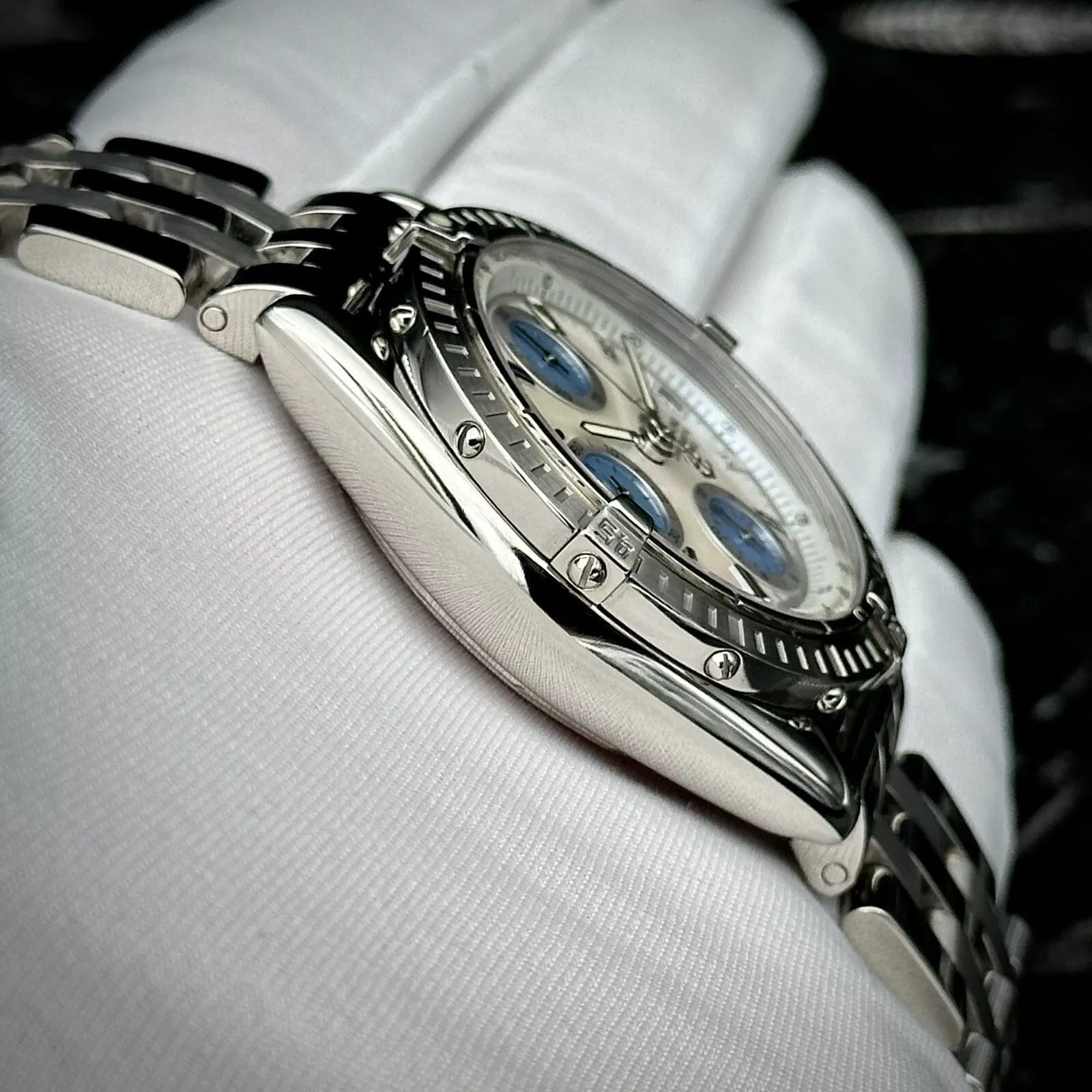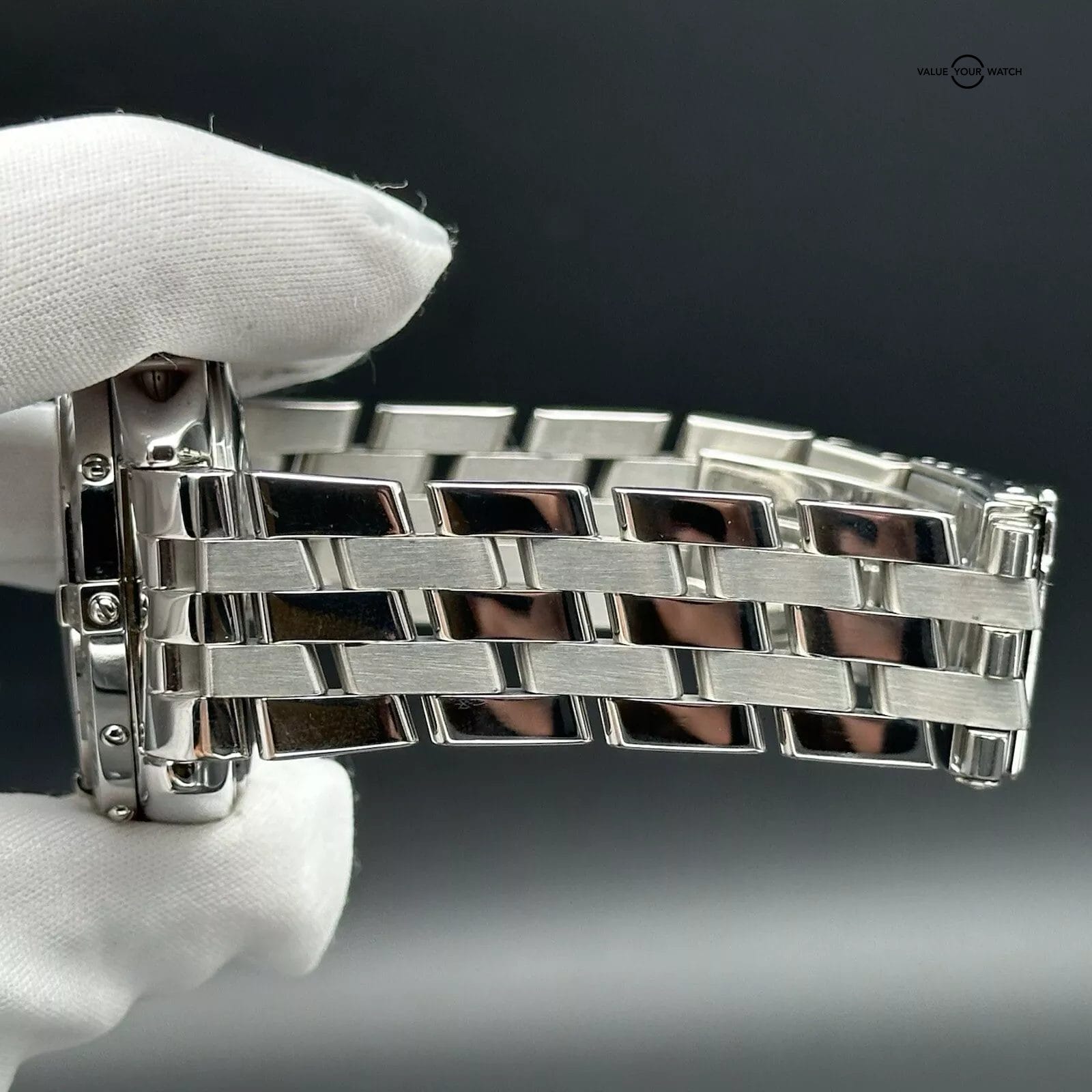 This watch comes as a complete set with the inner and outer box, chronometer certificate, instruction manual, series certificate, and warranty booklet. It is in very good condition, excellent for its age, showing only a couple light scratches on the clasp. Get this beautiful pre-owned timepiece before it’s gone!