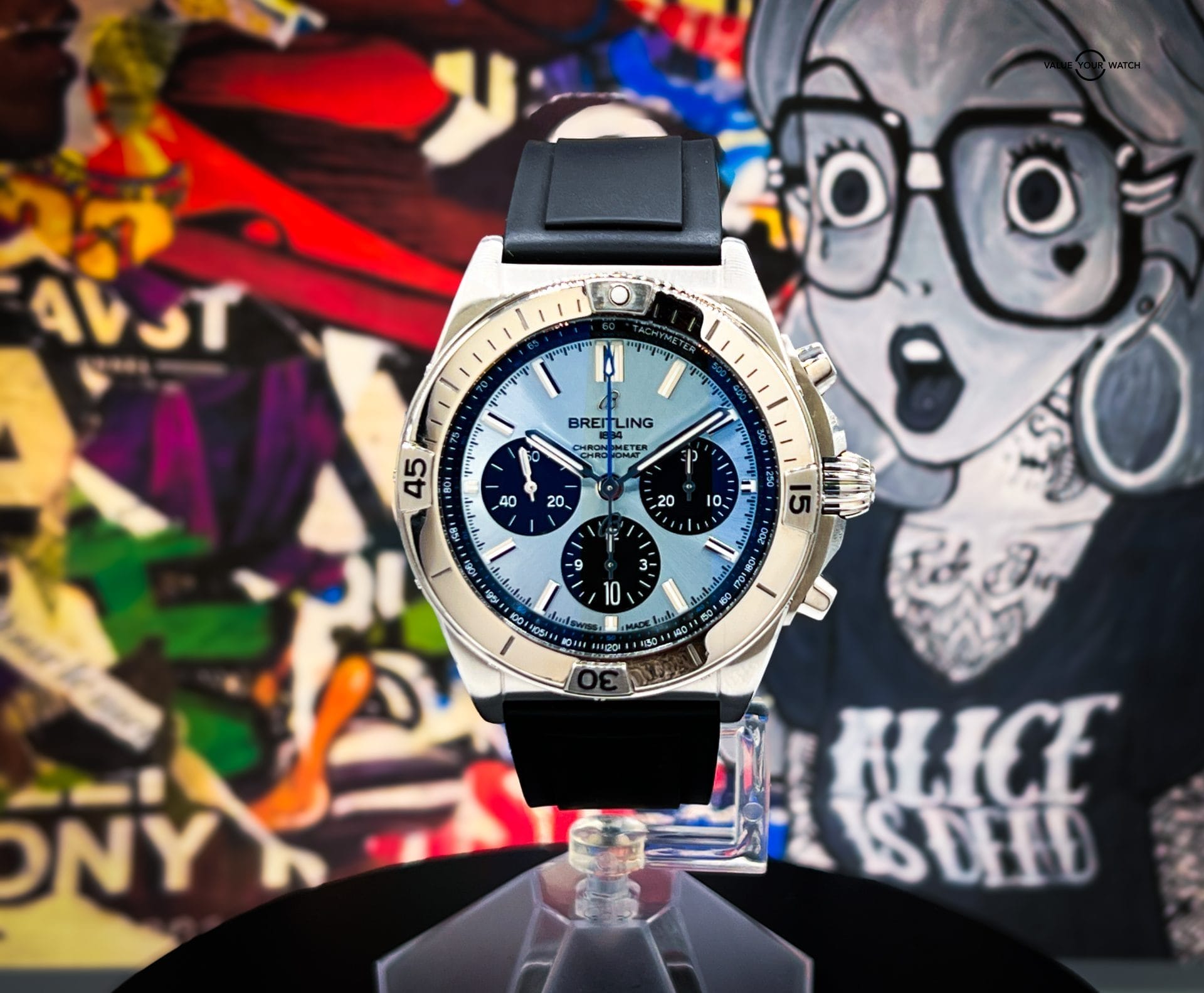 Experience excellence with the Breitling Chronomat B01 42, featuring a stunning ice blue dial. This exceptional timepiece, boasts a robust 42mm case crafted from stainless steel, paired with a self-winding caliber 01 movement. This watch has enough weight to feel the quality of the build without weighing you down.