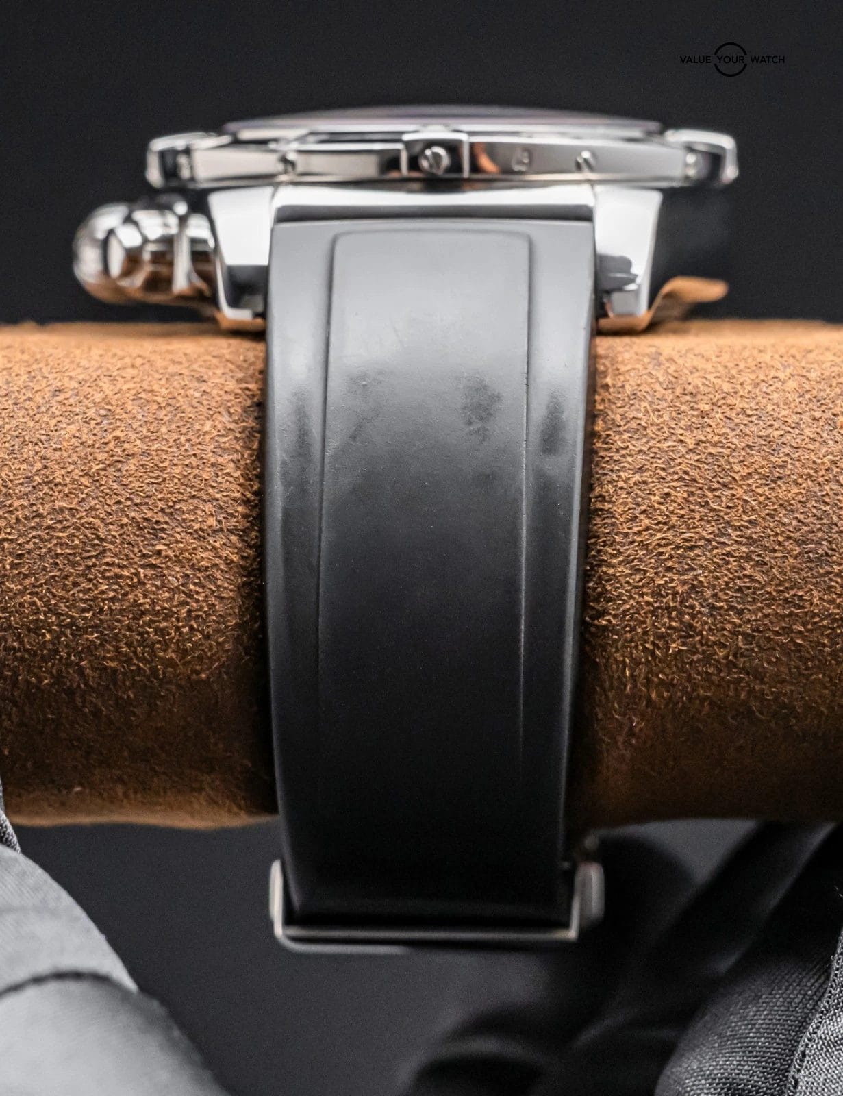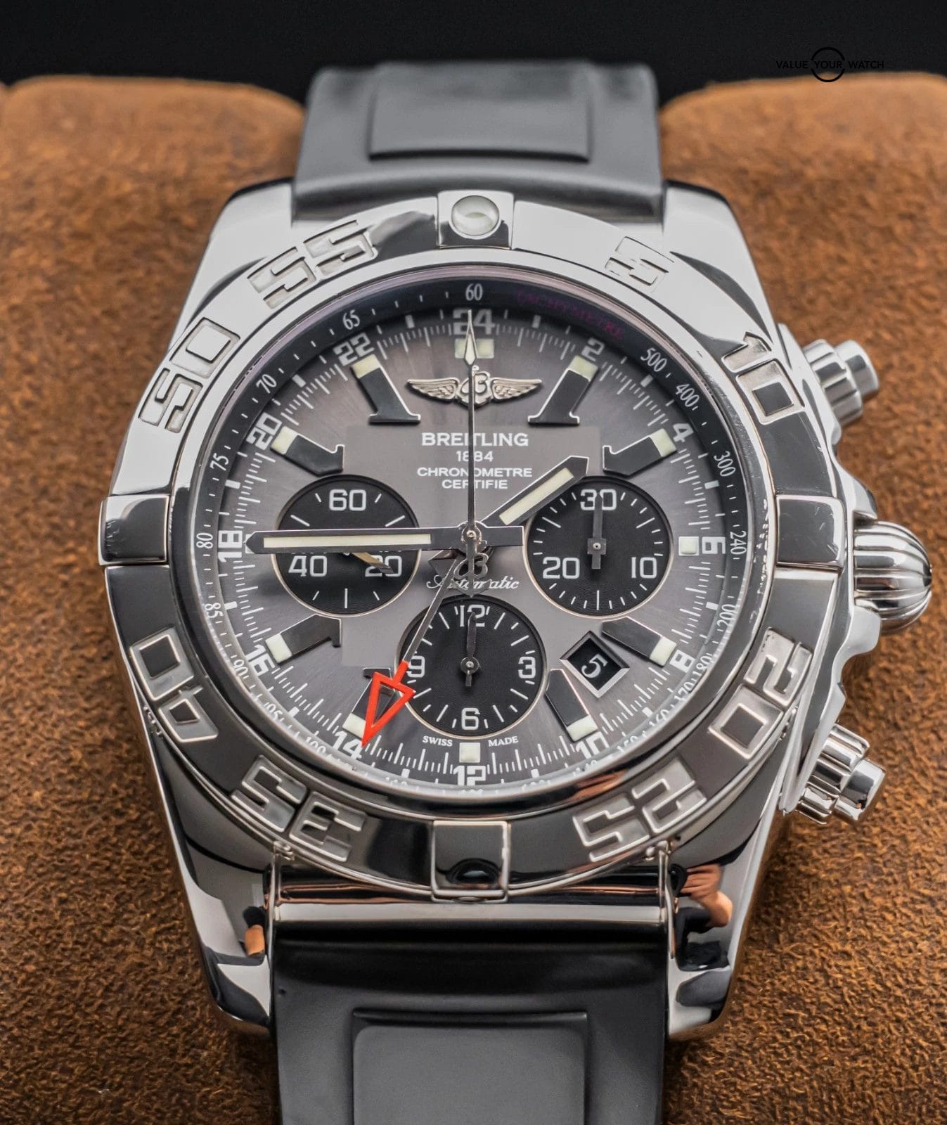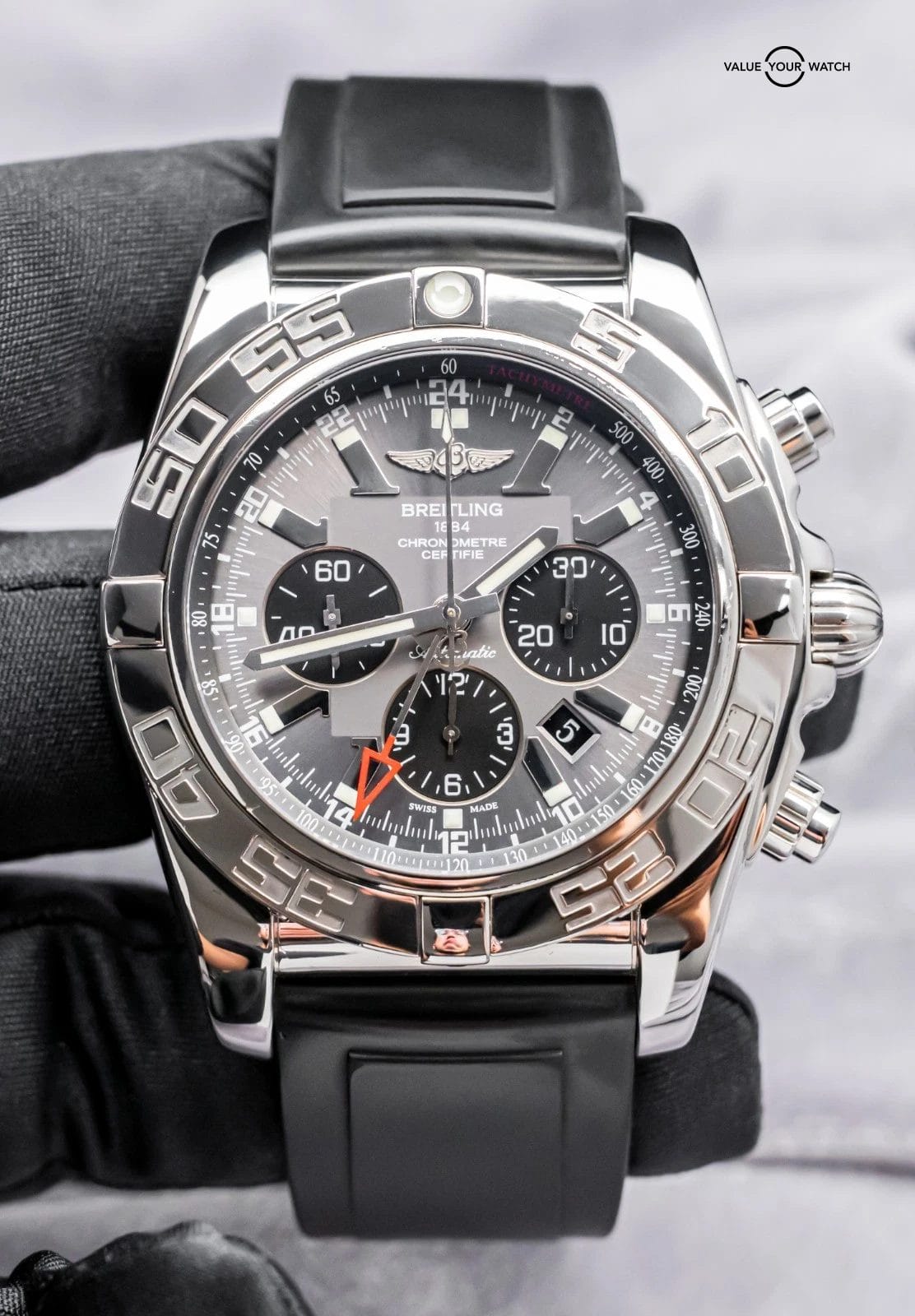 Do not hesitate to contact me with any questions. I sell over 900 watches per year, have fantastic reviews online, and thousands of references; I seek a very simple and pleasant buying experience for my clients through fostering relationships in the watch community. The serials have been blurred for privacy. The rubber strap an accommodate a 7.4 inch wrist at maximum as all Breitling rubber straps for deploy clasp are cut to fit when new. In the event you have a larger wrist, additional Breitling rubber straps are available from their website for $90.