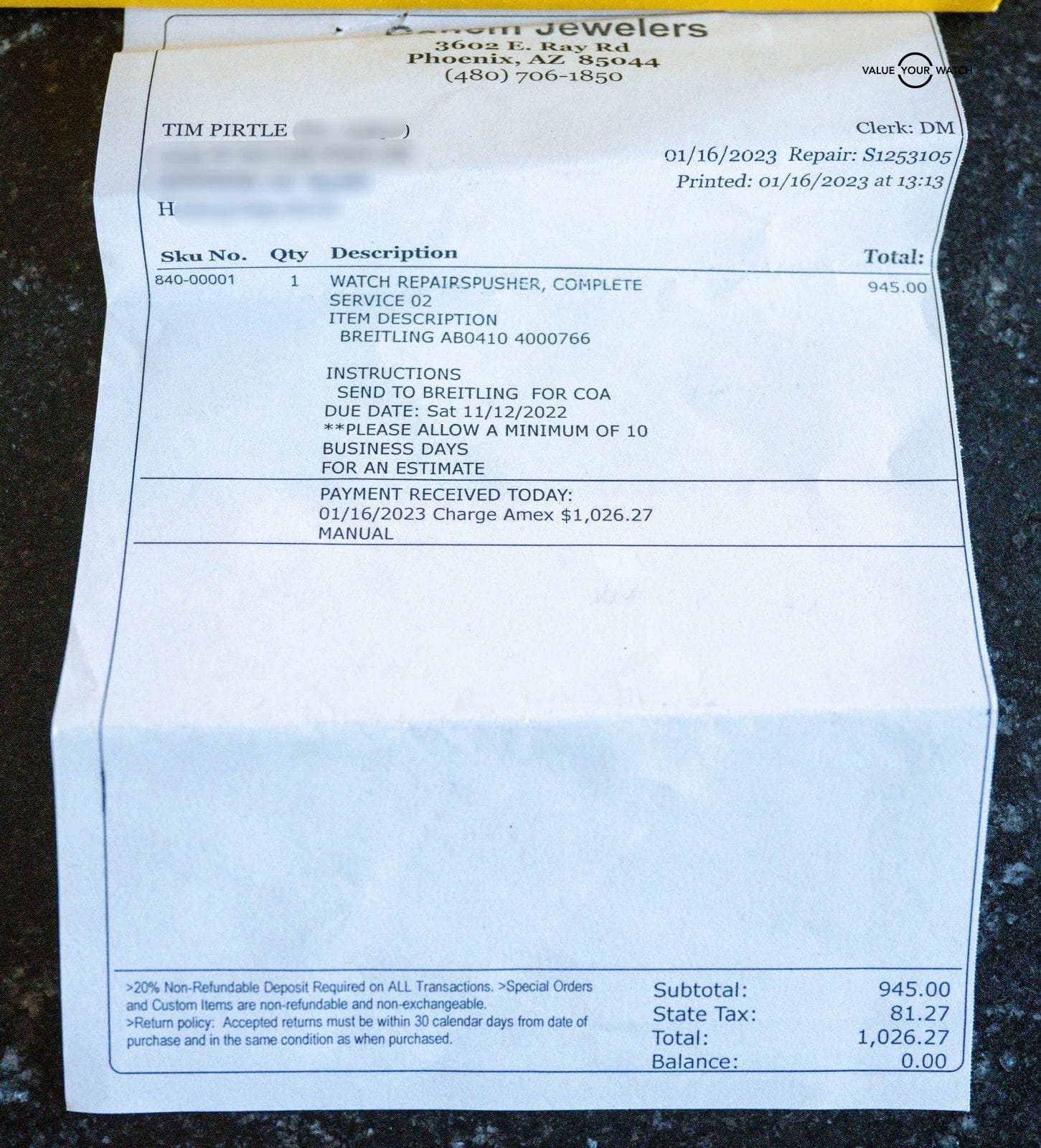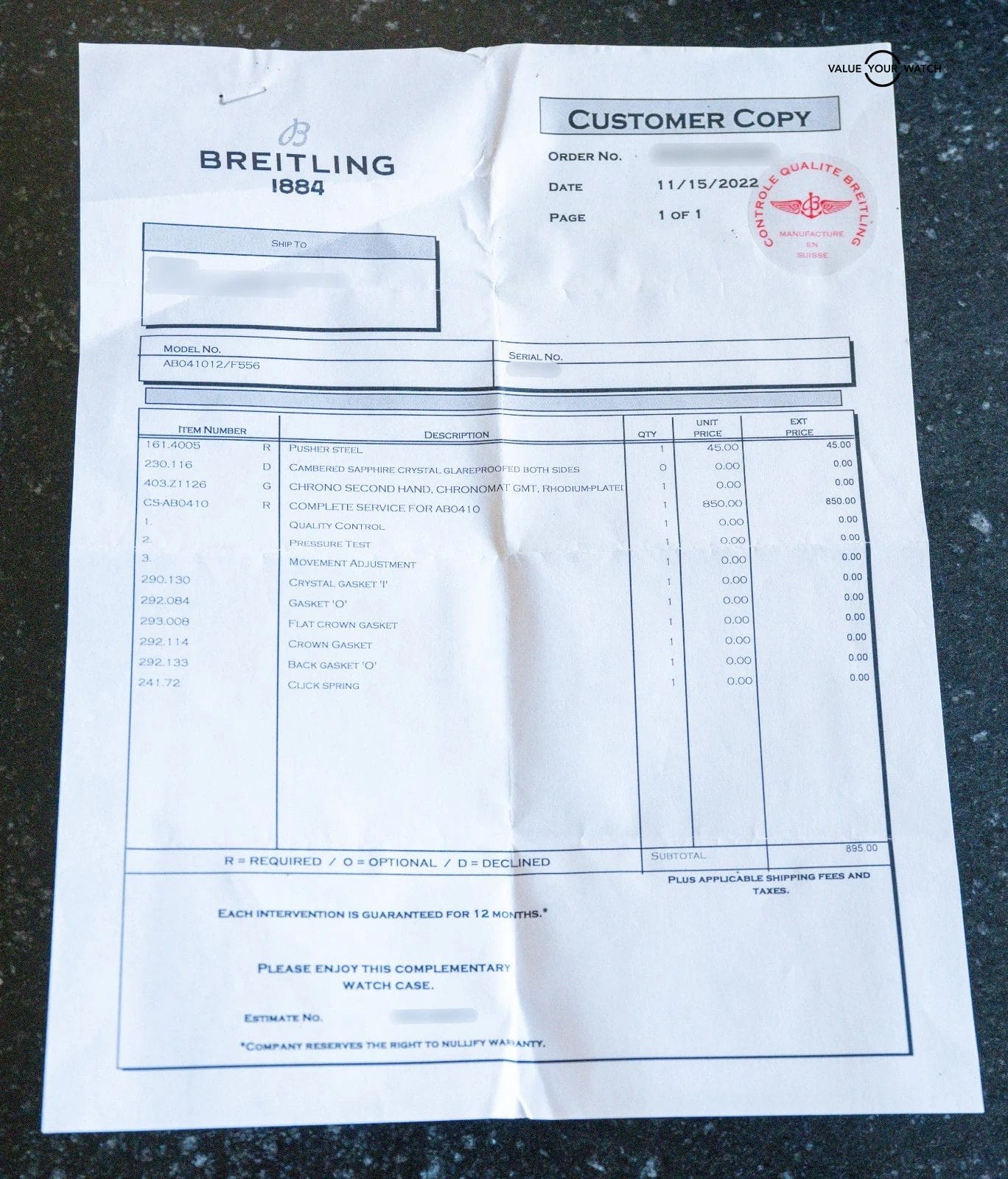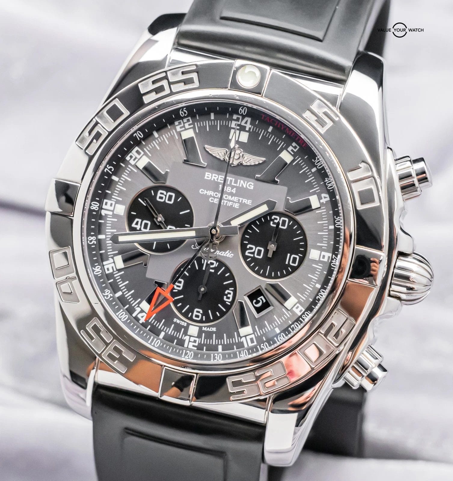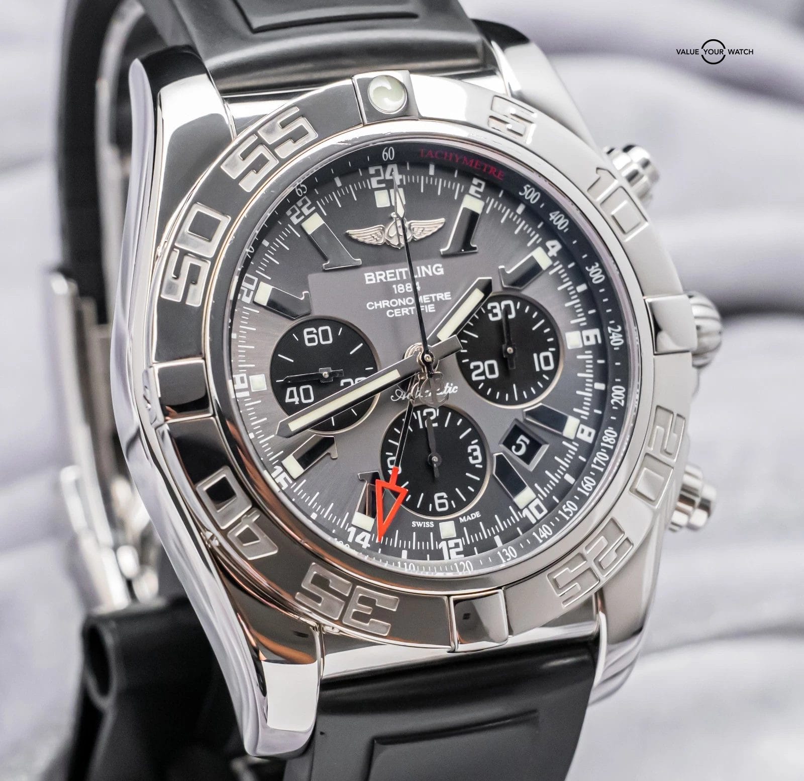 Do not hesitate to contact me with any questions. I sell over 900 watches per year, have fantastic reviews online, and thousands of references; I seek a very simple and pleasant buying experience for my clients through fostering relationships in the watch community. The serials have been blurred for privacy. The rubber strap an accommodate a 7.4 inch wrist at maximum as all Breitling rubber straps for deploy clasp are cut to fit when new. In the event you have a larger wrist, additional Breitling rubber straps are available from their website for $90.