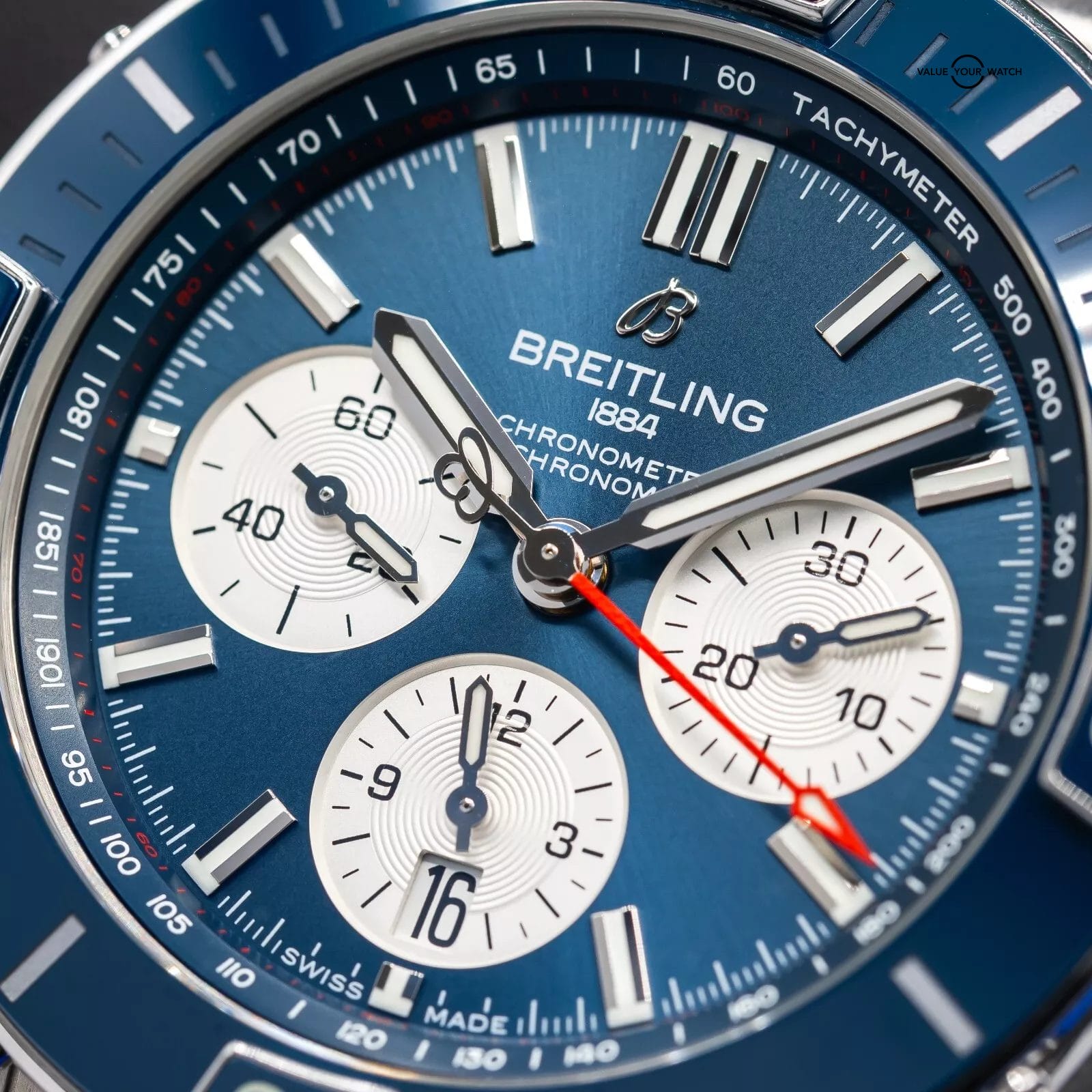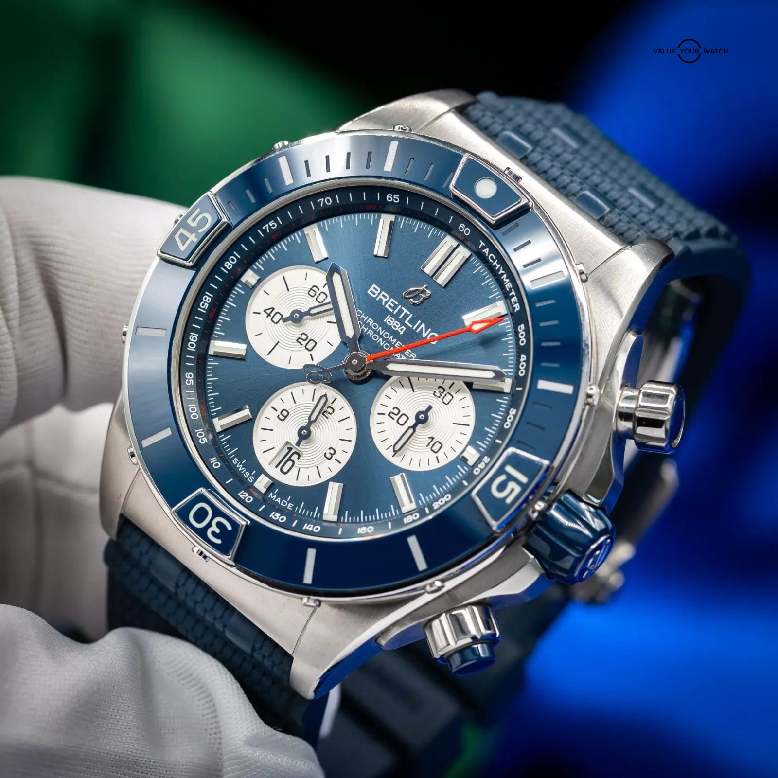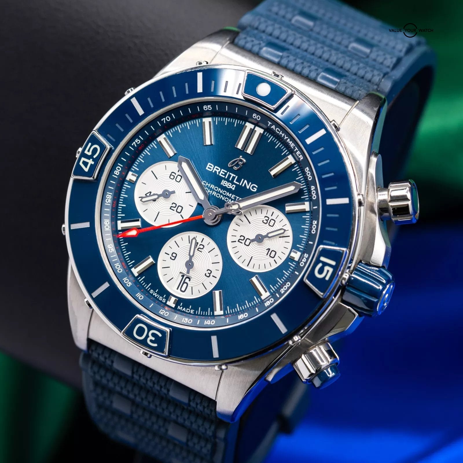 Specification: Breitling Super Chronomat B01 44 Blue Dial Chronograph 44mm AB0136