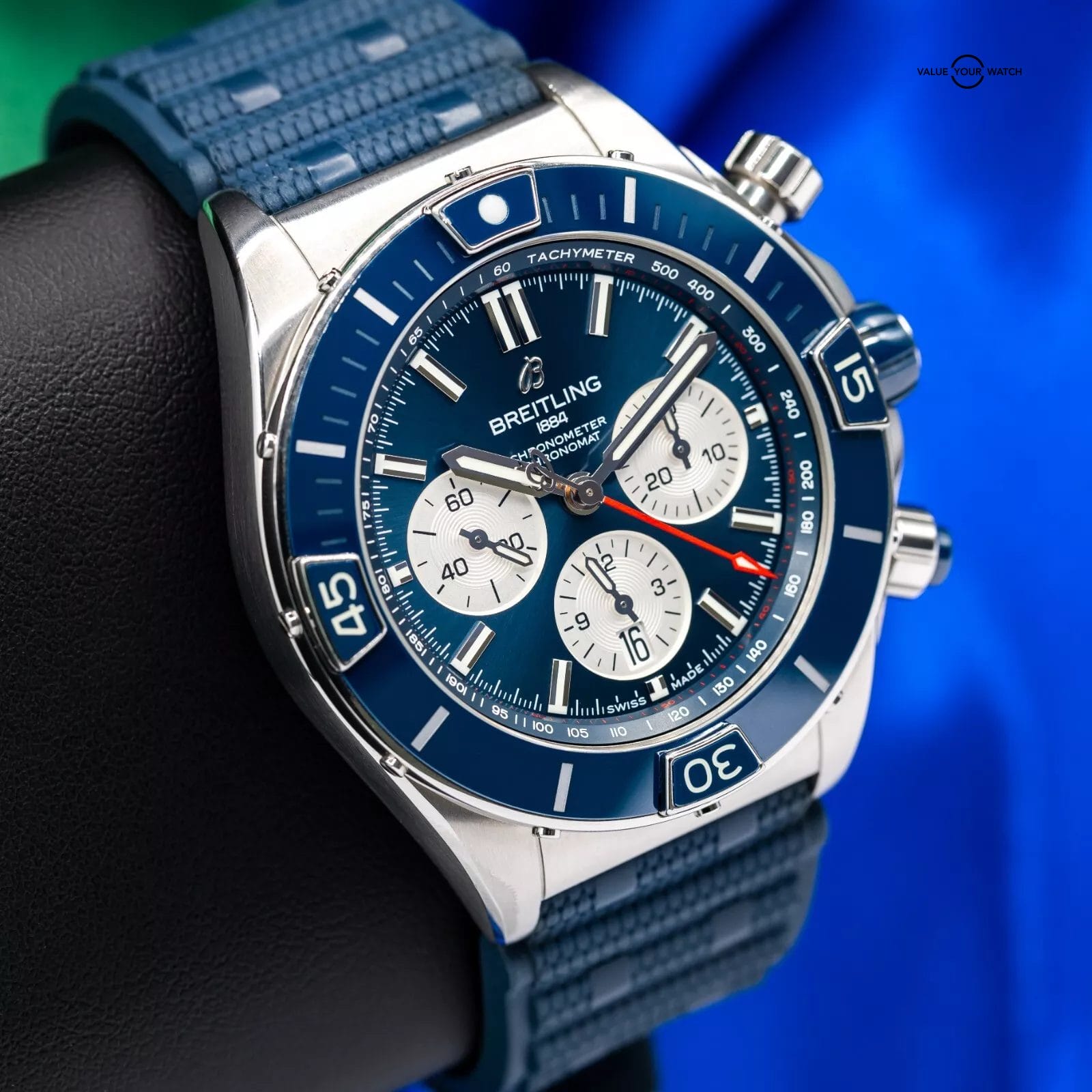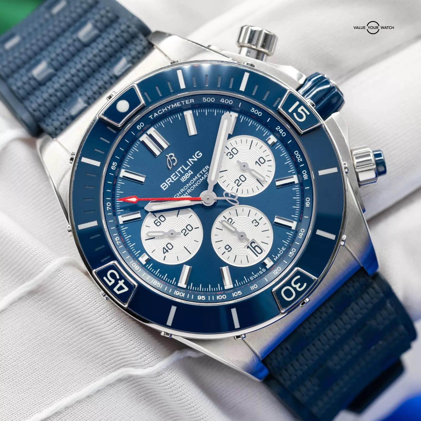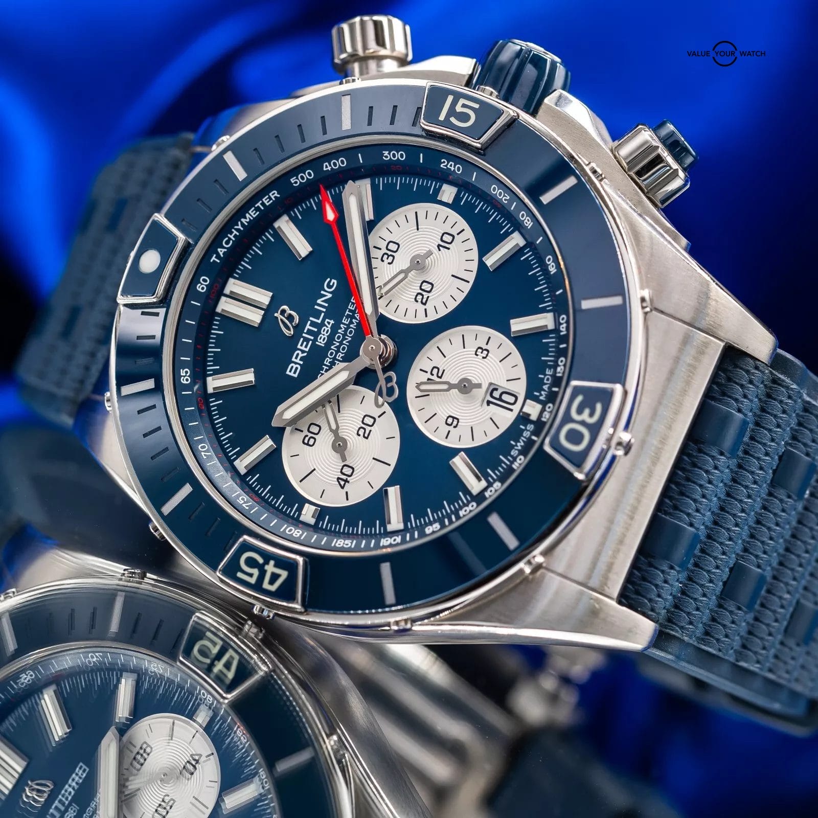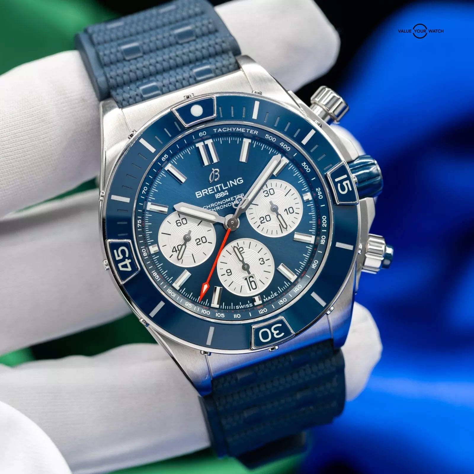 Specification: Breitling Super Chronomat B01 44 Blue Dial Chronograph 44mm AB0136