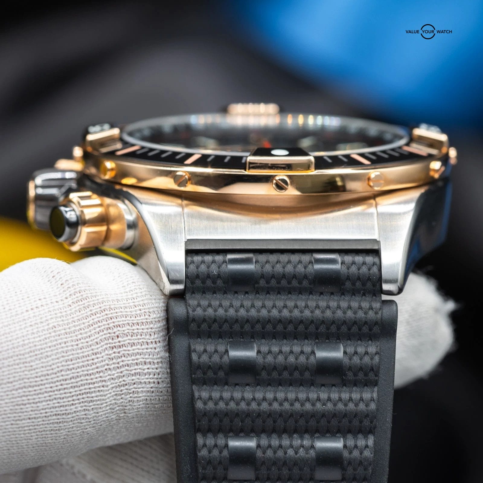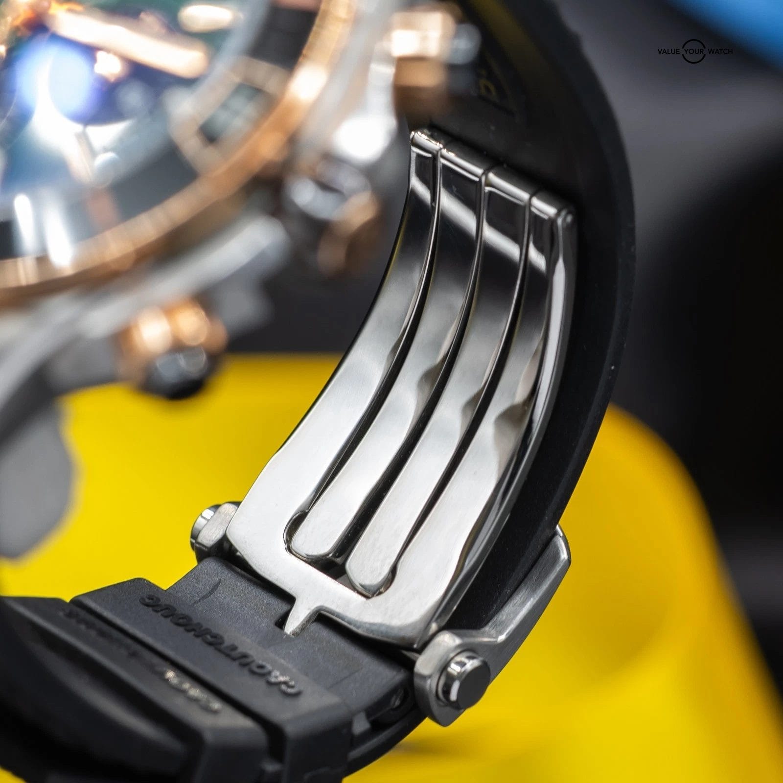 • Strap: Black rubber “Rouleaux”-inspired strap