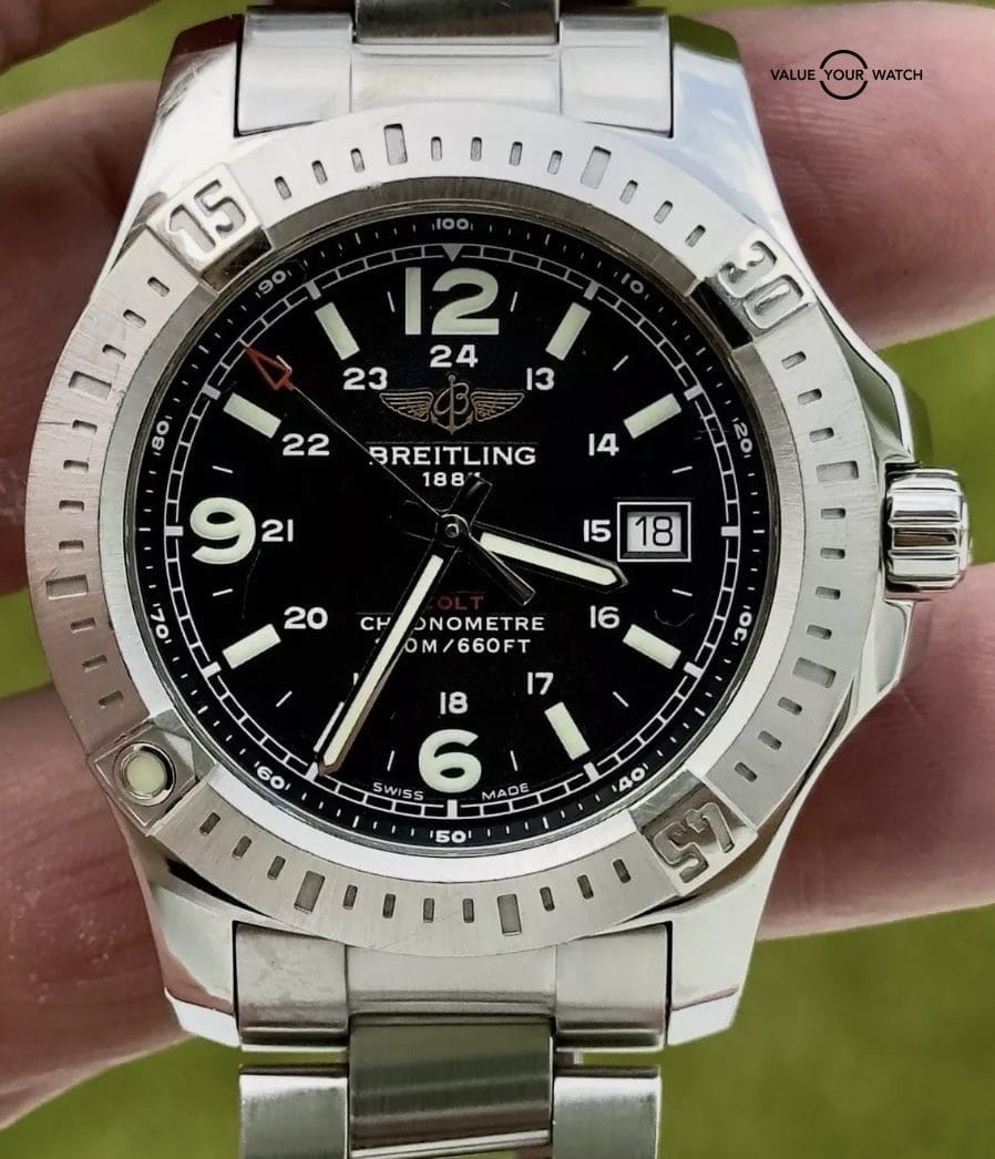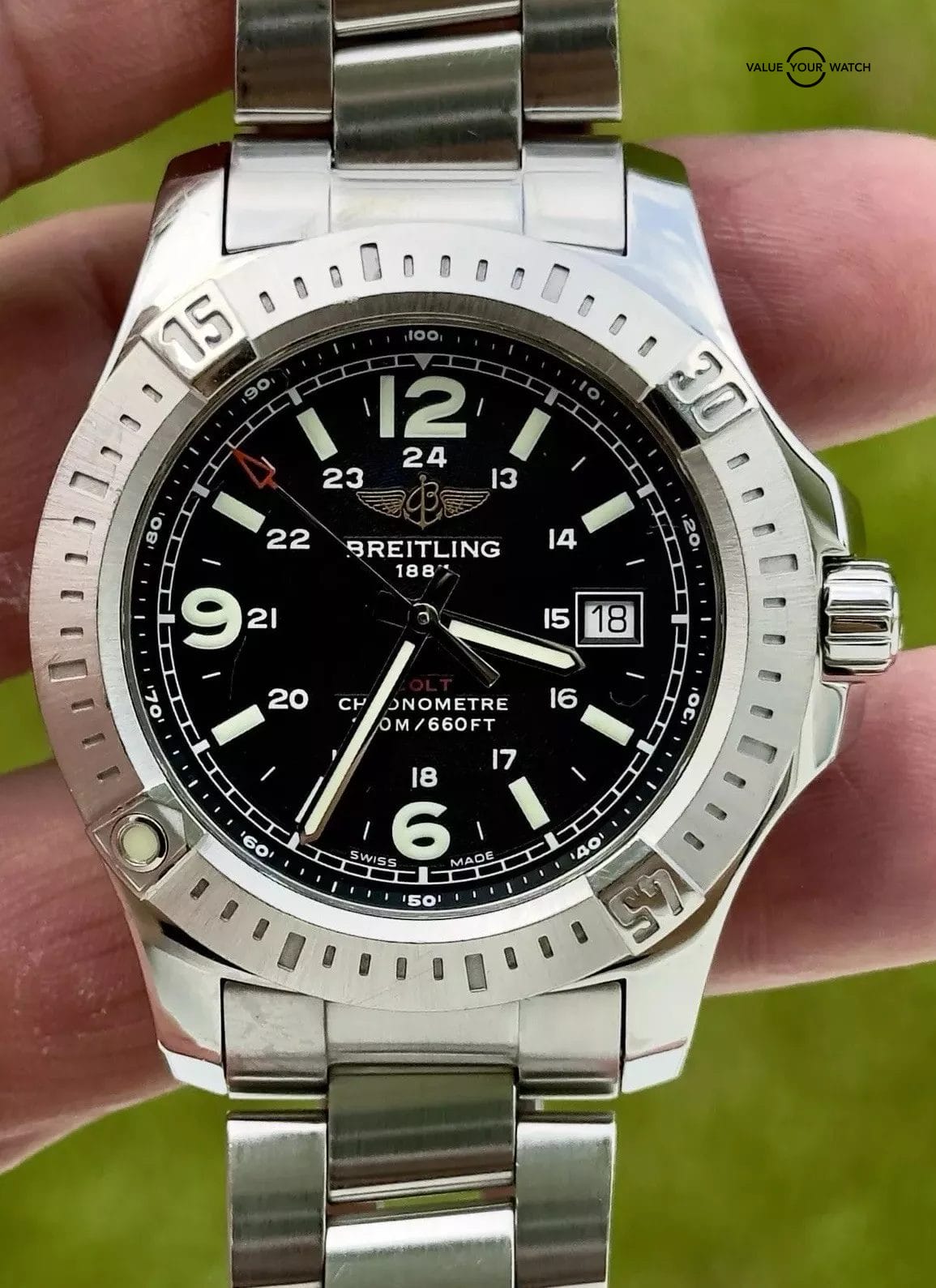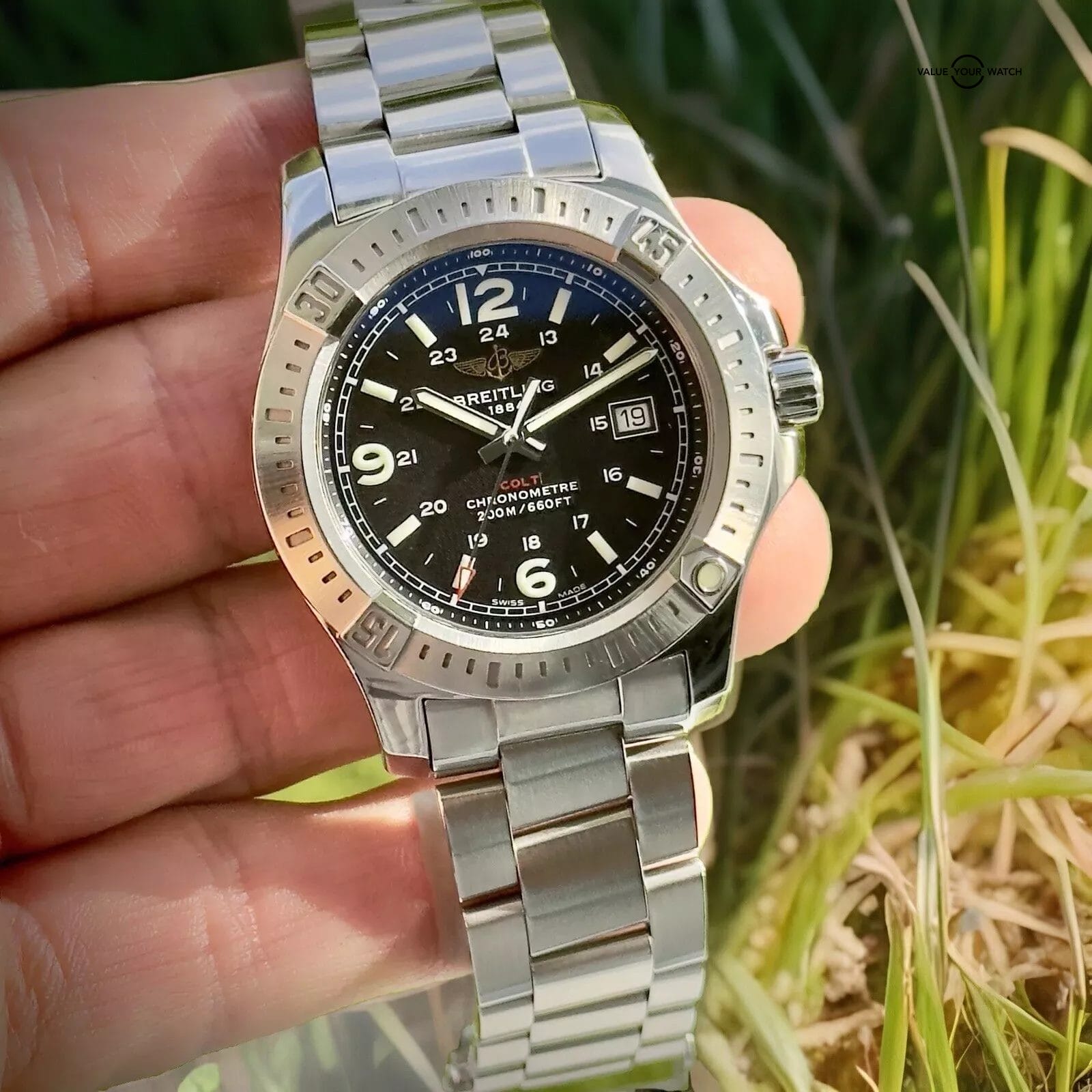 Breitling Colt Quartz 44mm A74388 – Complete Set – Black Dial & Bracelet & Links
