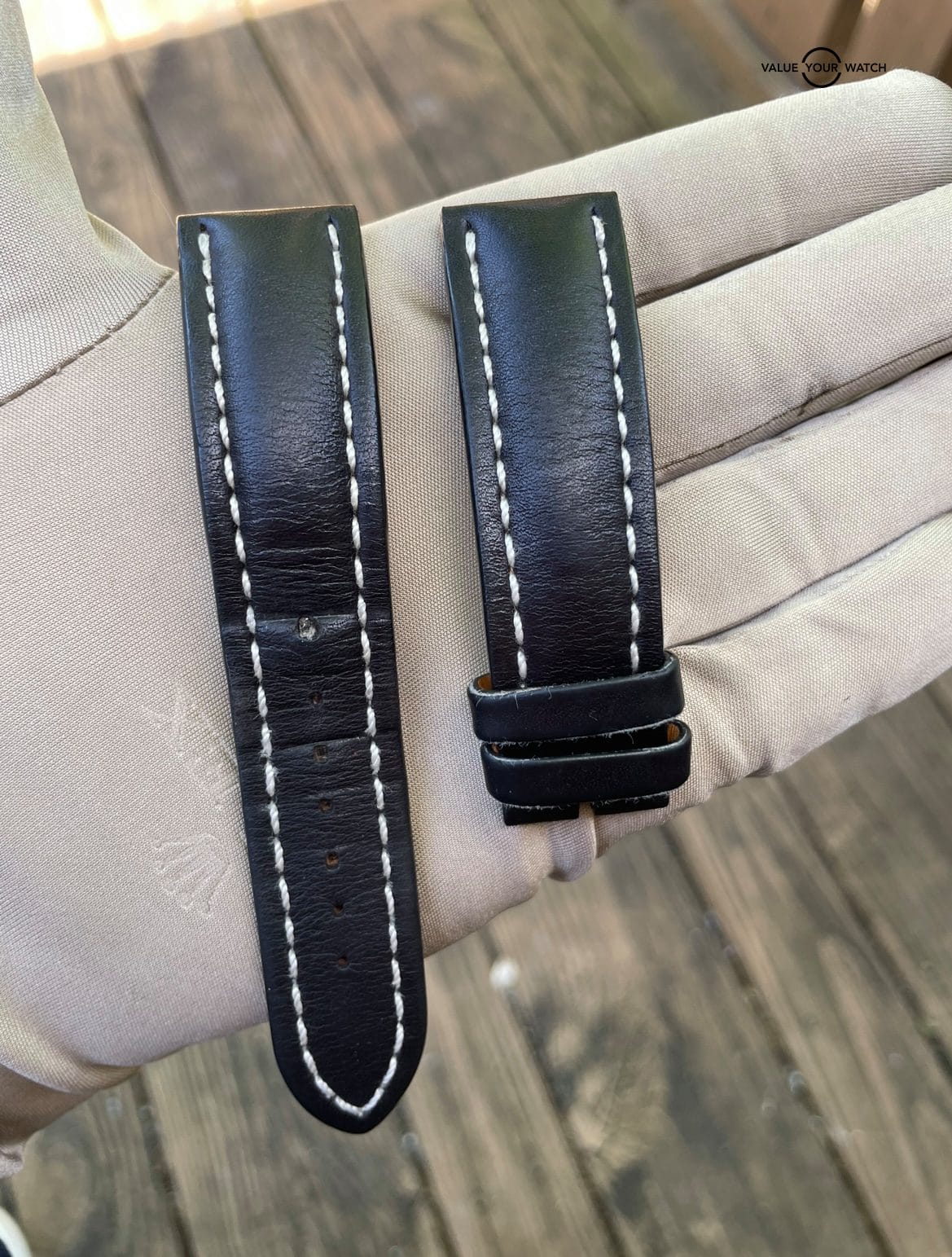 This watch also has 8 hands on the dial and tells Day, Date, Month, 24 hour register with small seconds and chronograph functionality for timing things. On top of that it also feature the famous slide rule by Breitling that was designed to work out math problems on the “fly” for pilots