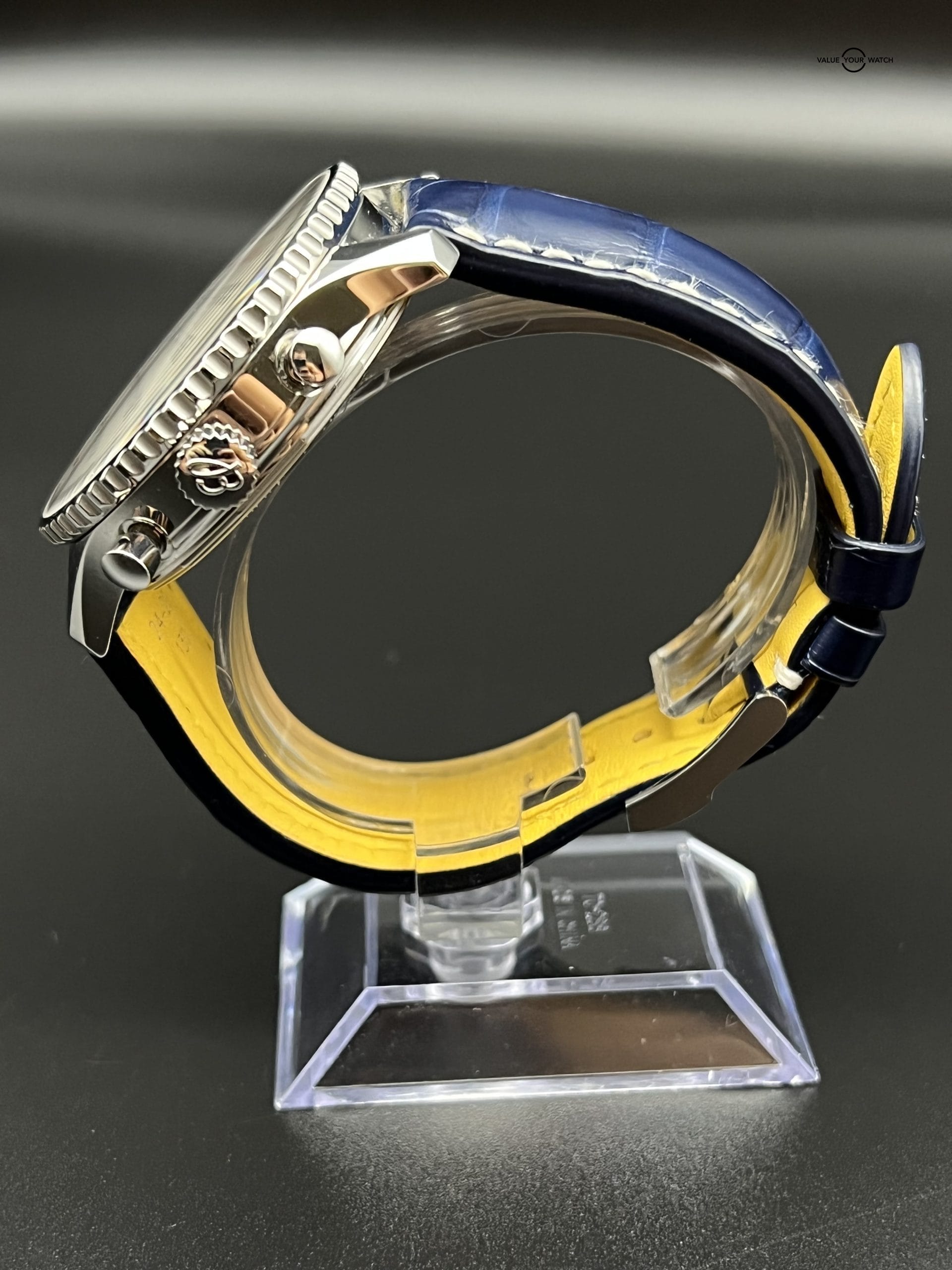 Offering my Mint condition Navitimer B01 46mm. It has a vibrant combination of the Blue Dial and Blue Crocodile strap wrapped in stainless steel casing.