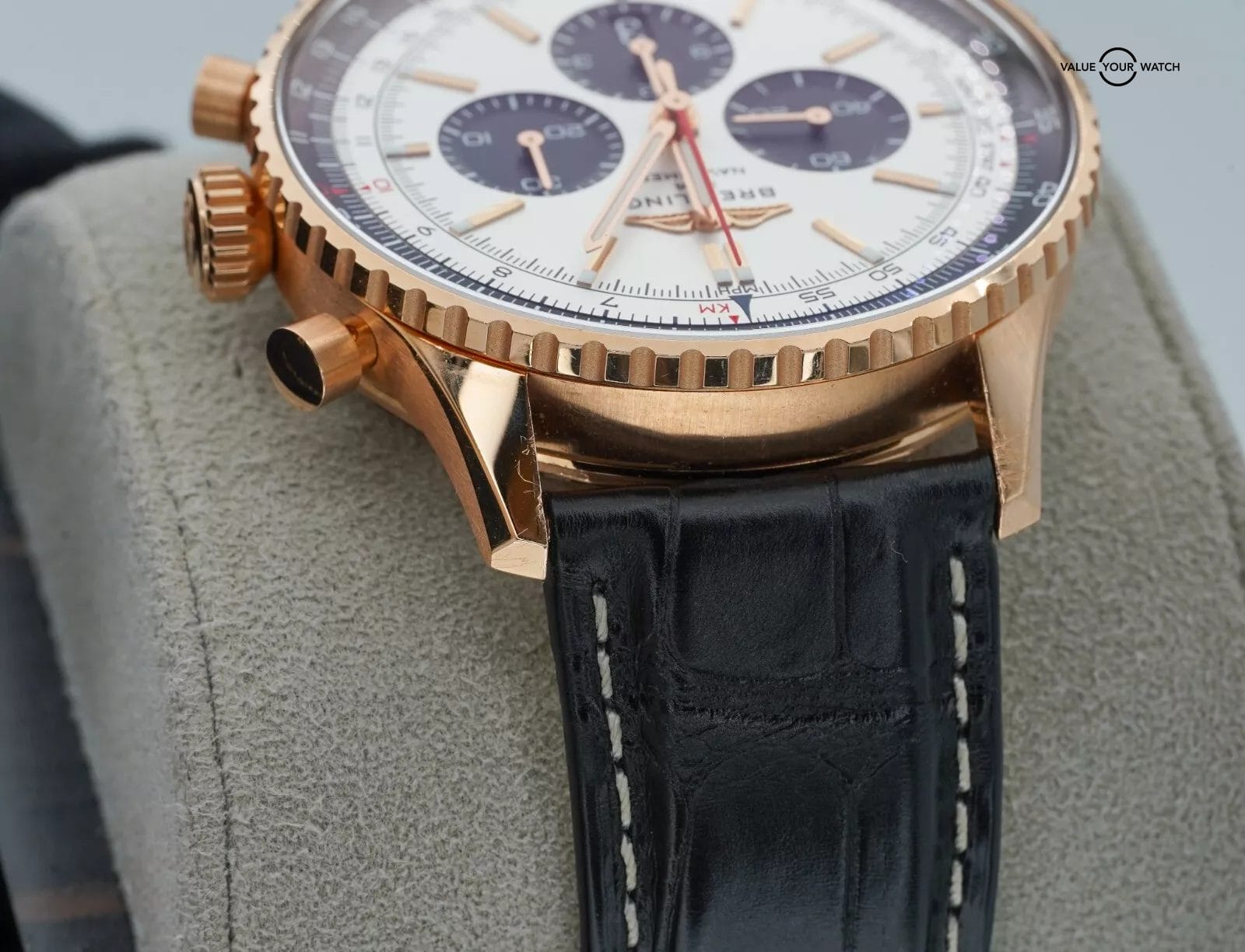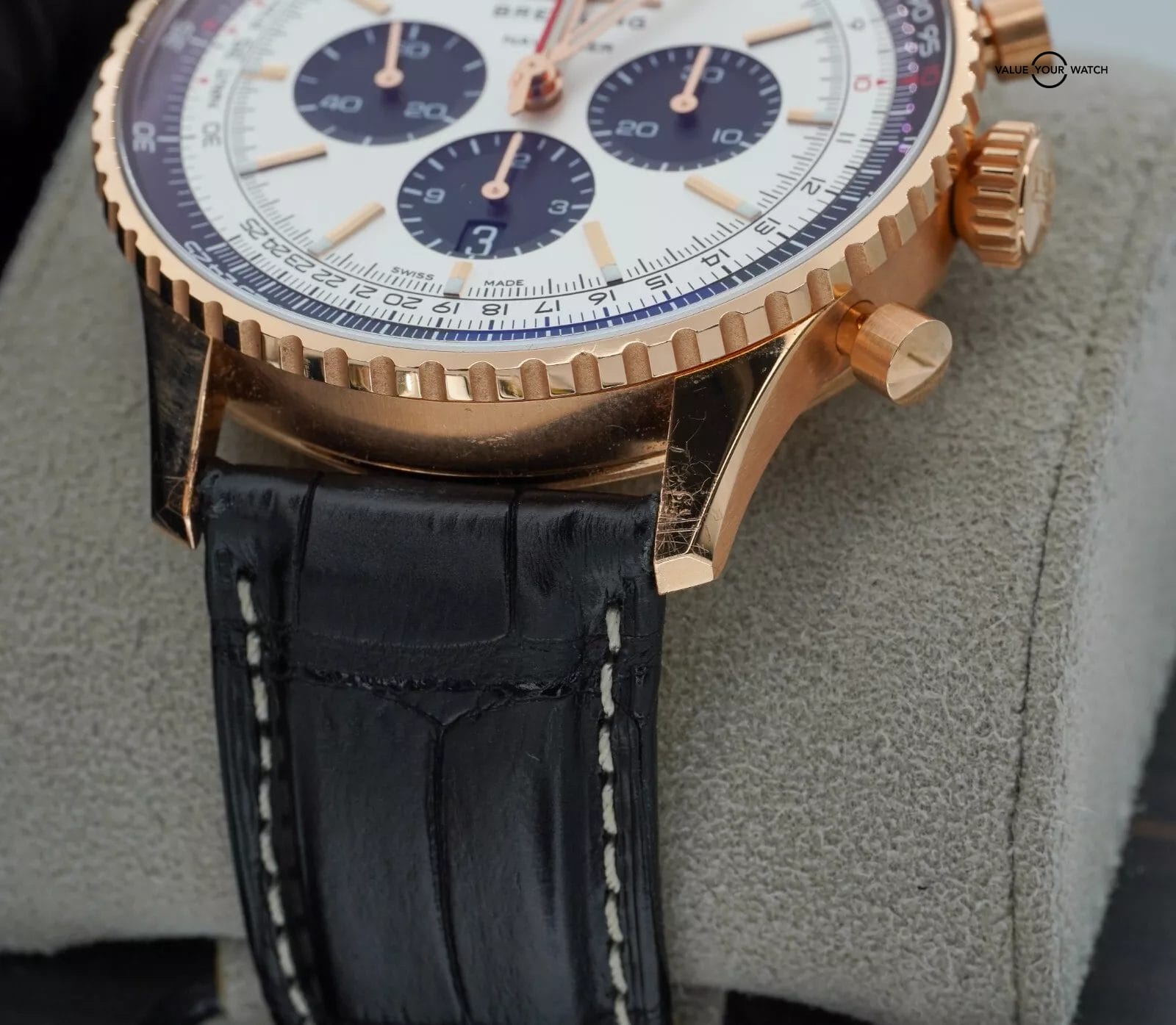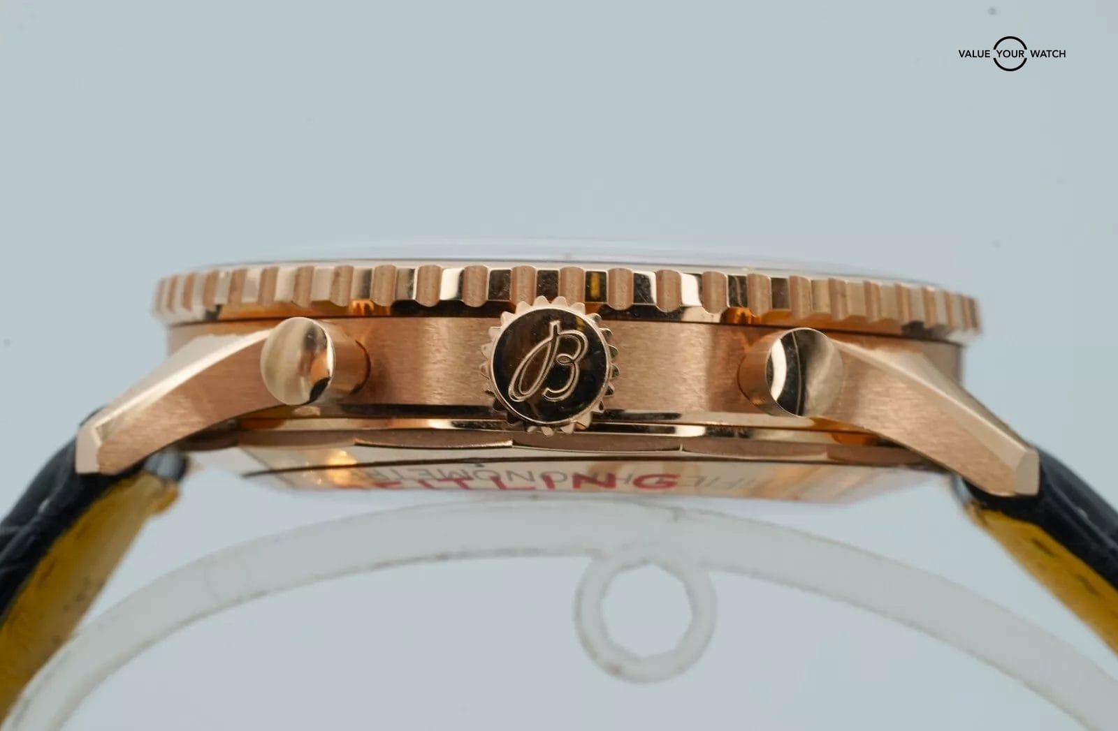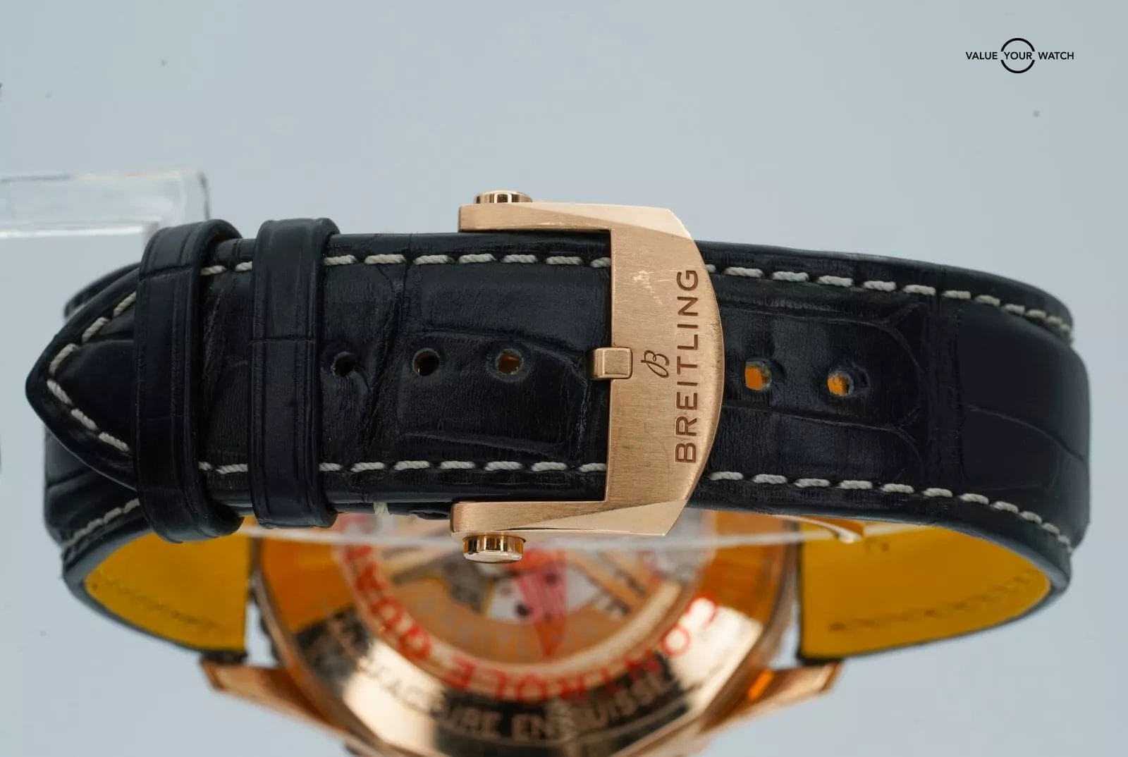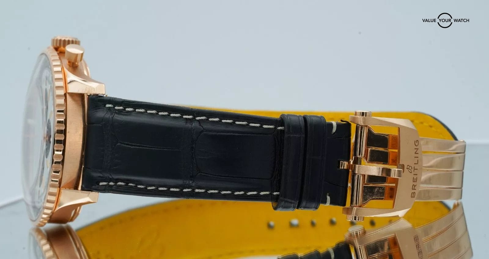 Band: Black Alligator Leather on Red Gold Folding Clasp