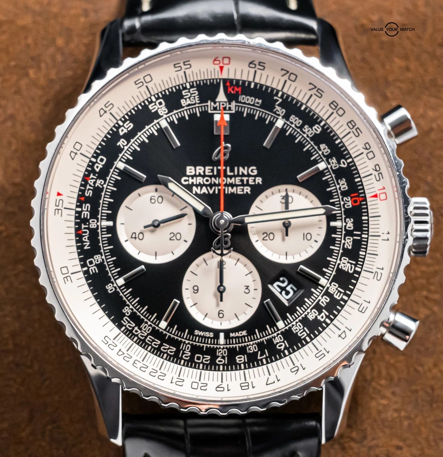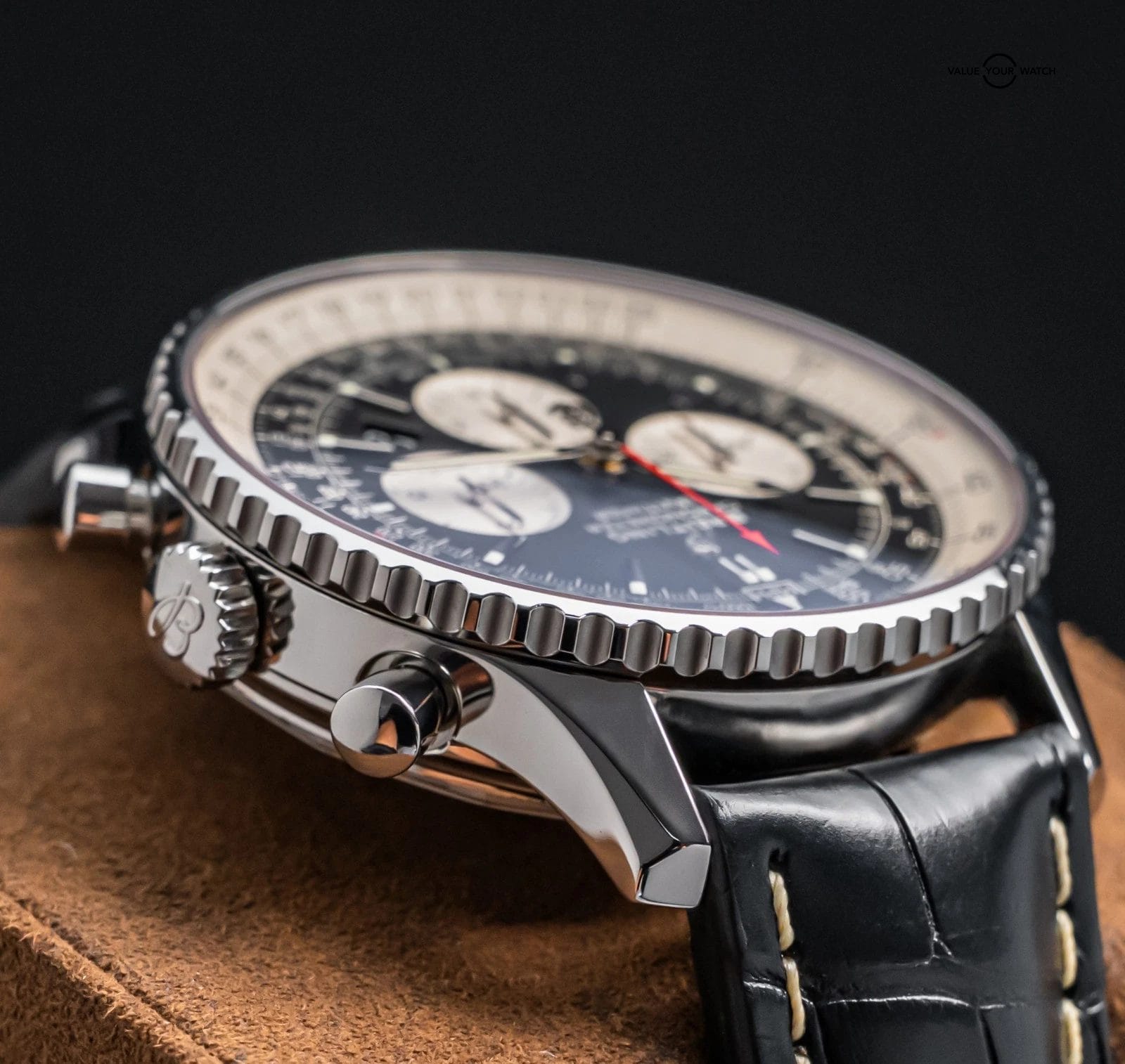 This Navitimer is in great condition with only very minor wear, nothing notable outside of some minor wear through the 11 on the slide rule. Keeps good time on my timegrapher when tested! Do excuse the dust/lint in the pictures from the photography process. This is a clean watch that belongs in any watch rotation and its classic Navitimer style matches with almost any outfit. Very classic Breitling, timeless and sure to be a future classic with the In-House B01 Movement!