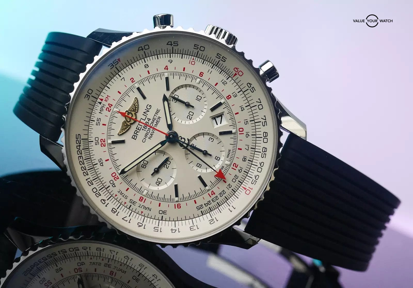 Up for sale is the a fantastic and timeless variant of the Breitling Navitimer. This one features the 24 hour GMT hand as well as the classic slide rule, and sits inside a very comfortable 48mm stainless steel case.