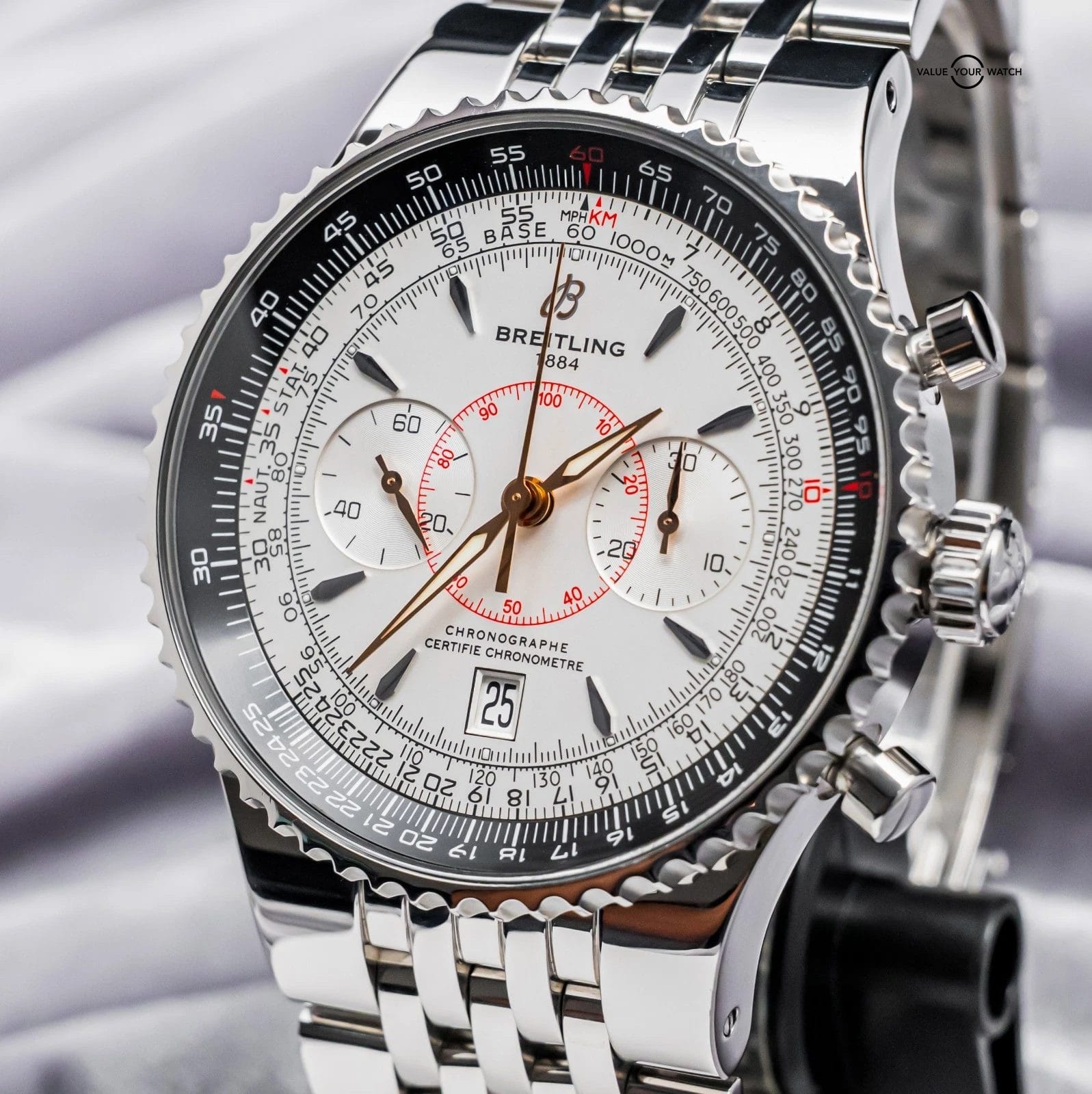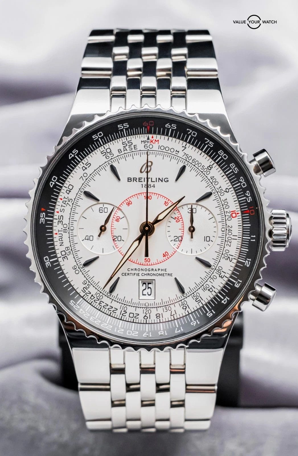 Specification: Breitling Navitimer Montbrillant Legende 47 mm Silver White Dial Complete A23340