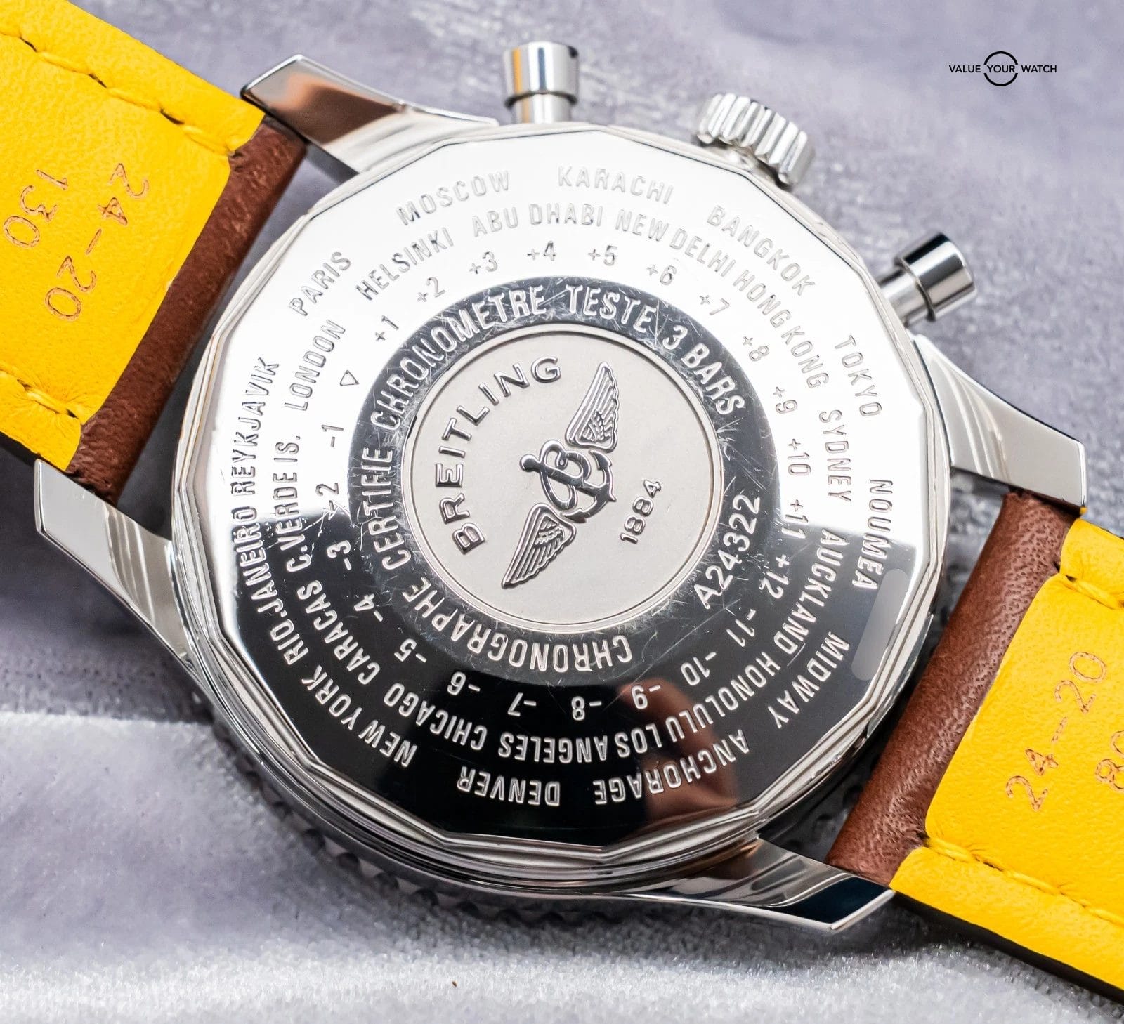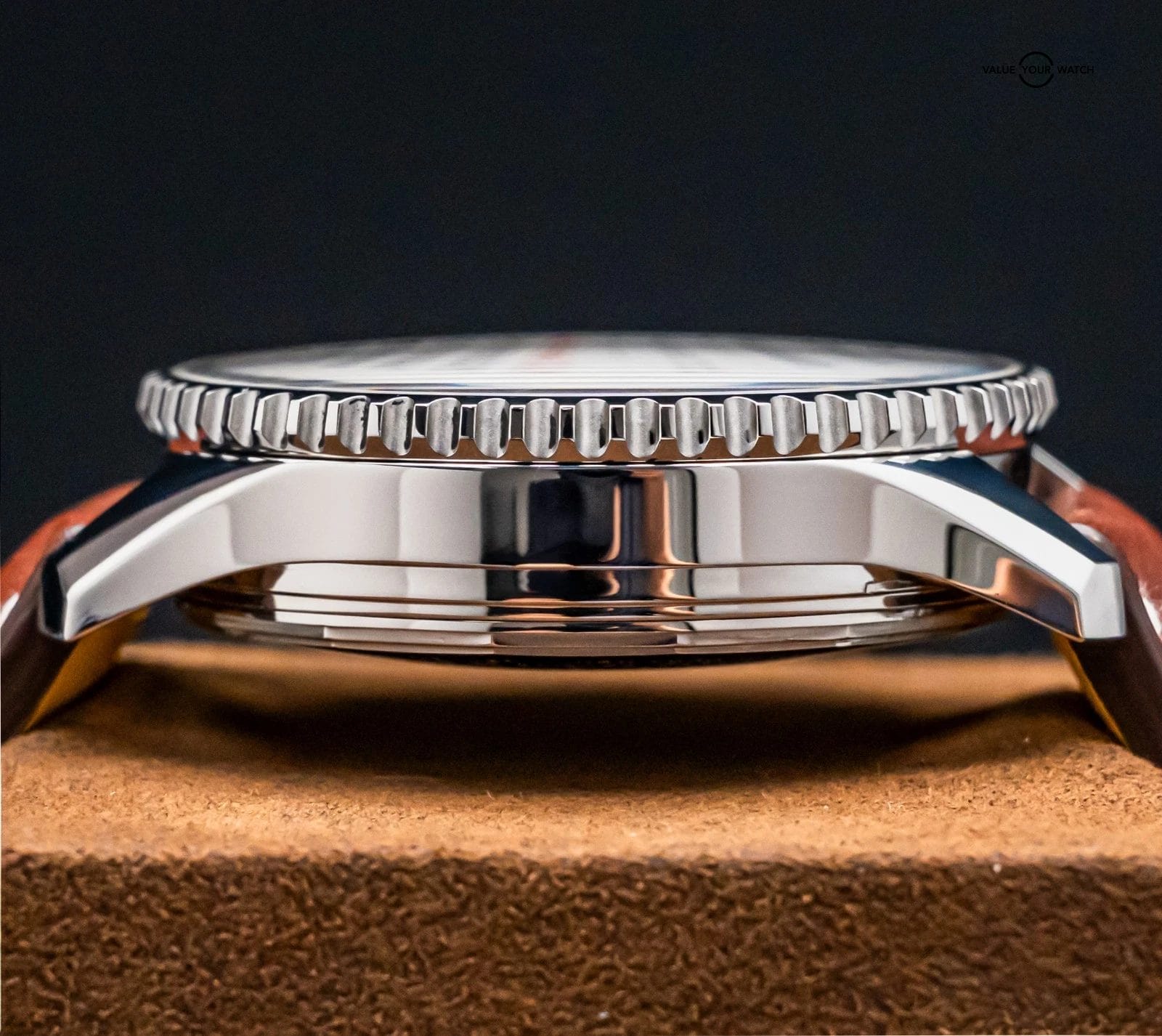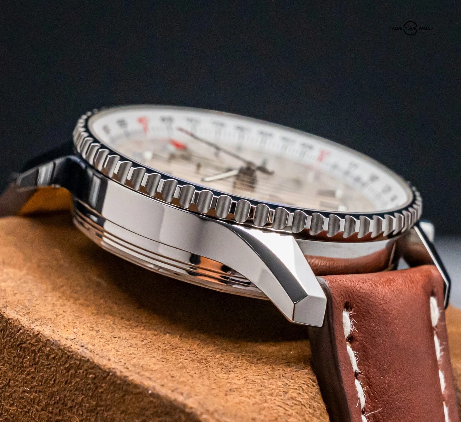 This Navi is clean overall with only very minor wear, nothing notable. Keeping good time on our timegrapher when tested! Do excuse the dust/lint in the pictures from the photography process. Clean watch that belongs in any watch rotation, with the Navitimer World being the most popular Navitimer in recent production. It’s classic Navitimer style matches with almost any outfit!