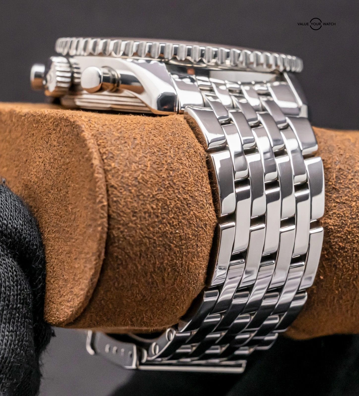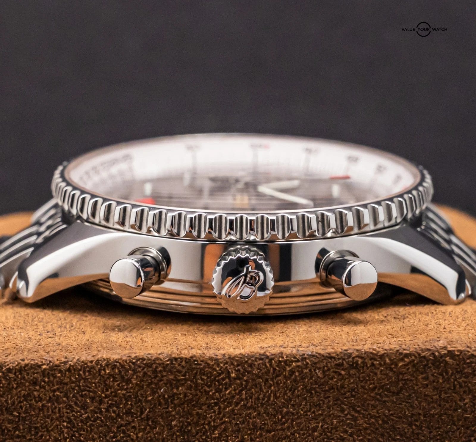 This Navi is clean overall with minor wear, nothing notable. Keeping good time on our timegrapher when tested! Do excuse the dust/lint in the pictures from the photography process. Clean watch that belongs in any watch rotation, with the Navitimer World being the most popular Navitimer in recent production. It’s classic Navitimer style matches with almost any outfit!