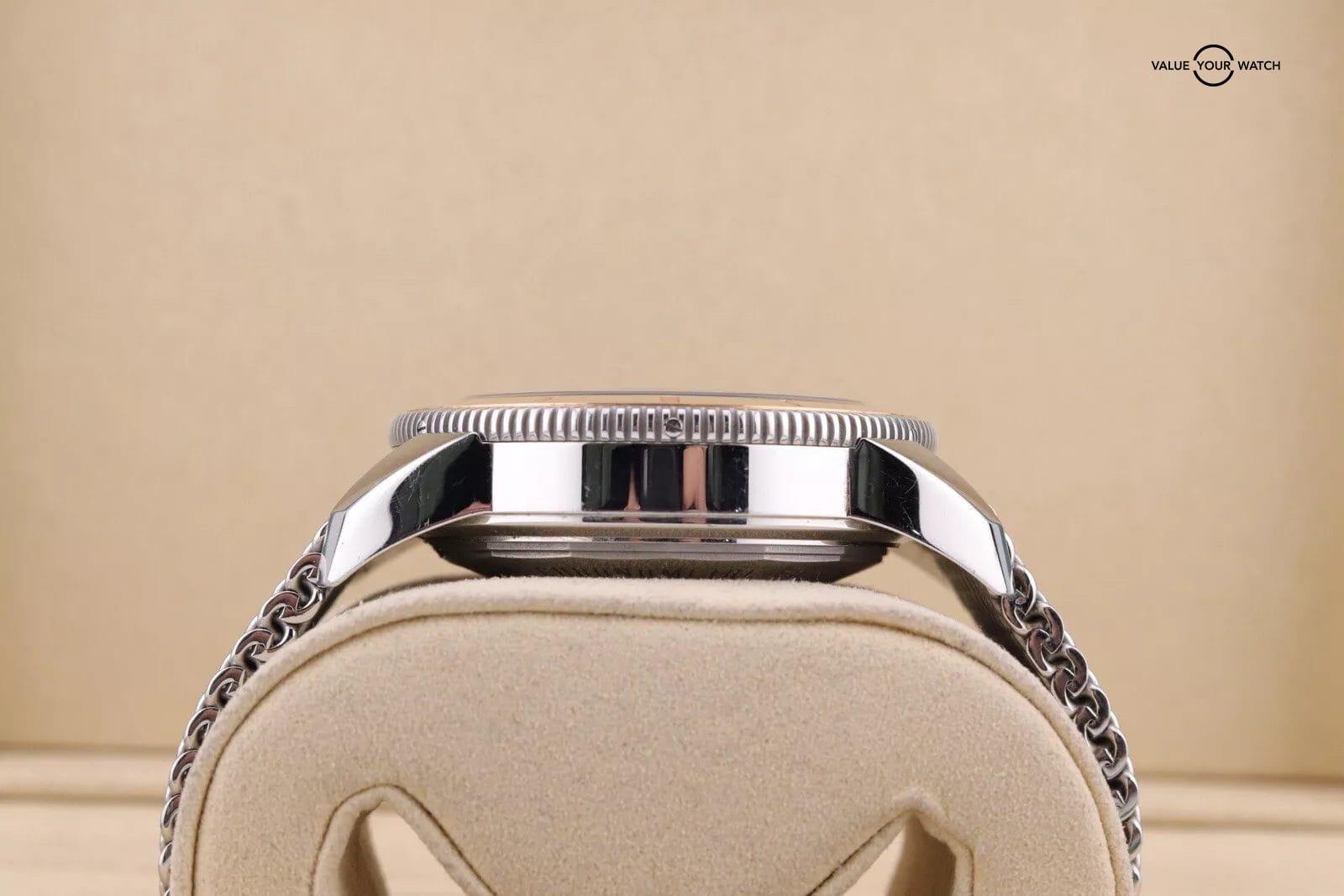 – This watch has scratches throughout, but most should clean up well with a polish. The crystal does not have any deep scratches — there could be light marks in AR coating but I can’t find anything. The movement runs +3s a day at 300 amp on timegraph. See photos for most accurate representation of condition.