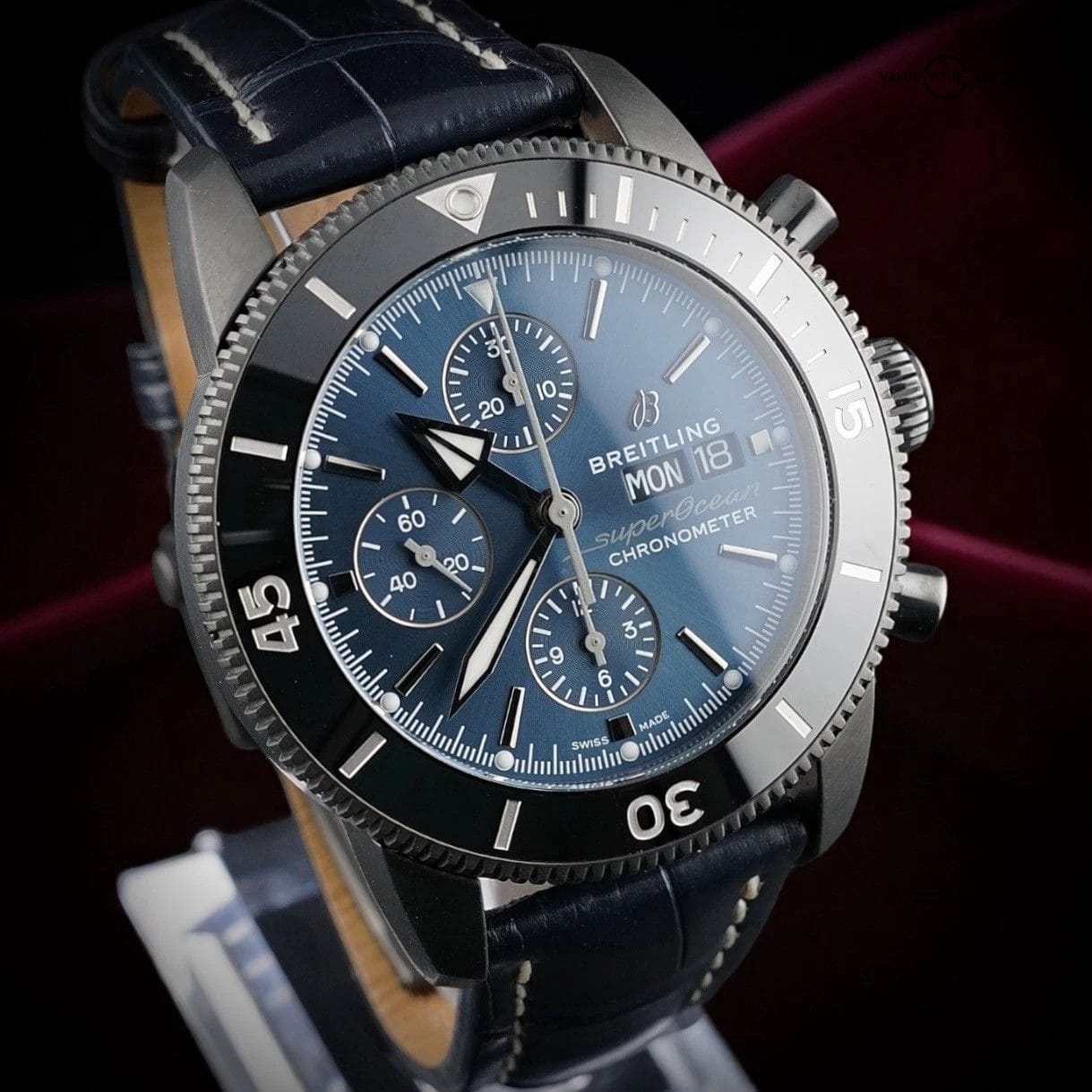 Breitling Superocean Heritage Chronograph 44 Outerknown watch on Breitling blue leather strap
