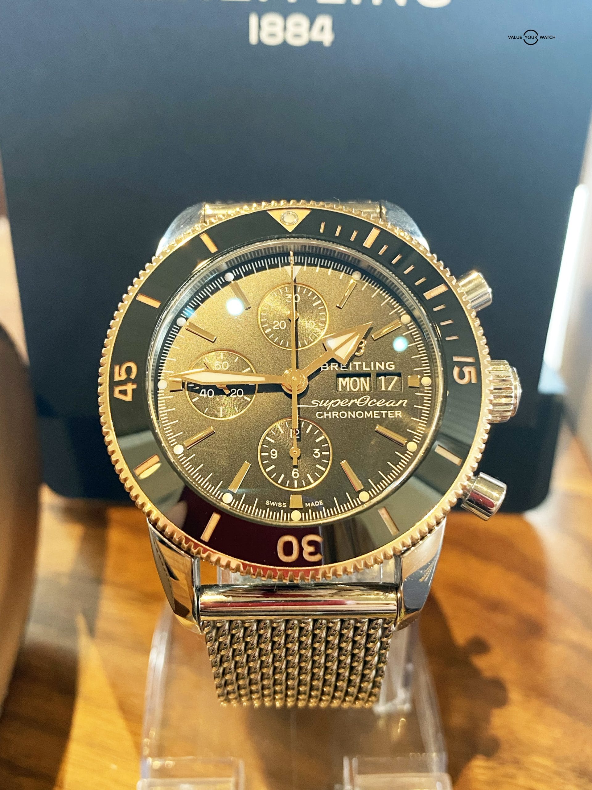 Gorgeous Breathing Super Ocean Heritage Chronograph Stainless Steel & Red Gold on OEM SS Mesh bracelet. Full Set. Under Manufacturers Warranty until 07/2023
