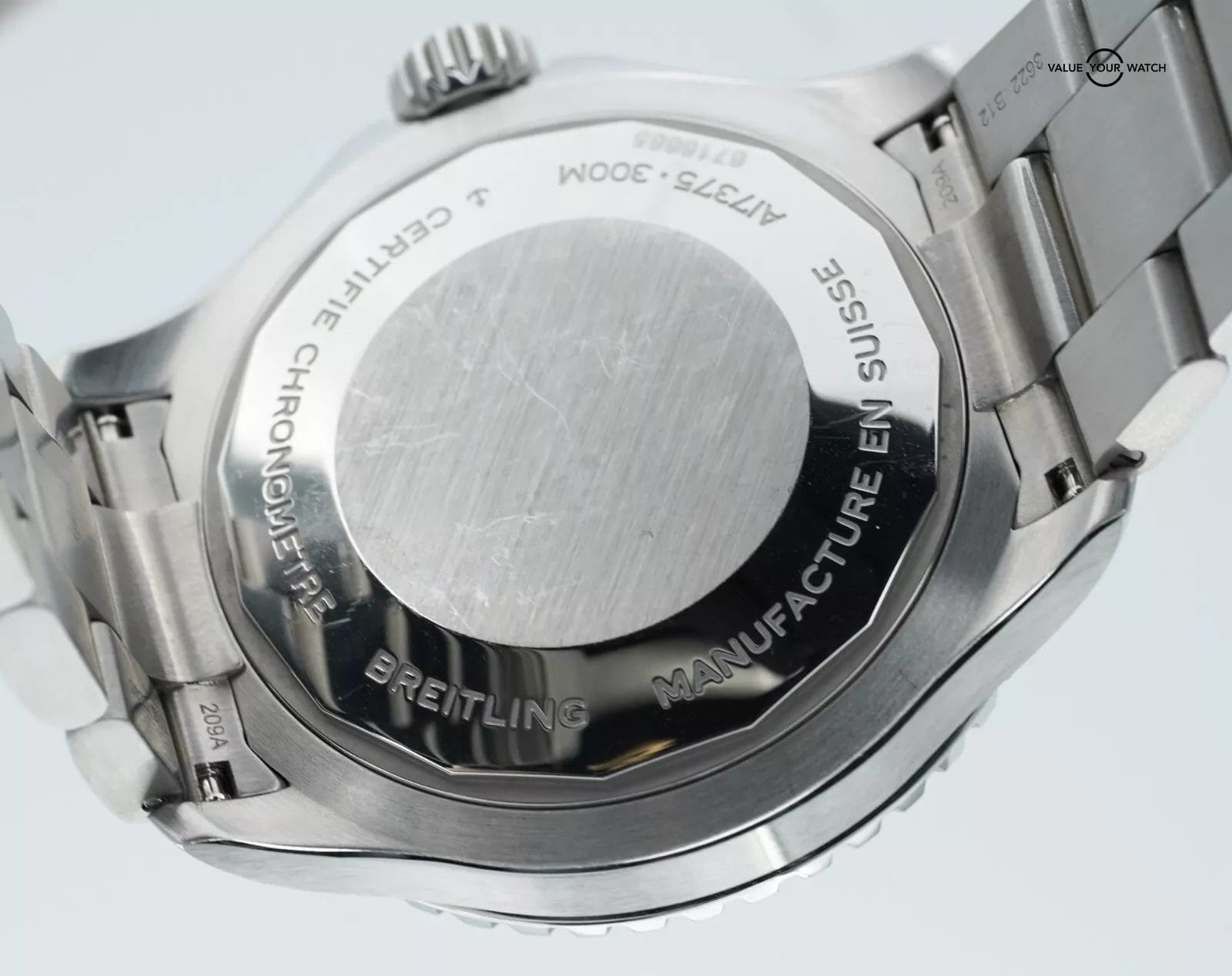 This beautiful timepiece comes with the blue Breitling box and roll. The watch is in excellent pre-owned condition with very light cosmetic wear throughout the case and bracelet. The watch was purchased brand new in May 2024 and has the 2-year warranty from that date. The bracelet will accommodate up to an 8” wrist. MSRP on this is $5,400. Pay close attention to the pictures as they accurately describe the condition. Mechanically the watch is functioning as it should. Serial numbers and names are blurred in photos only for privacy reasons.