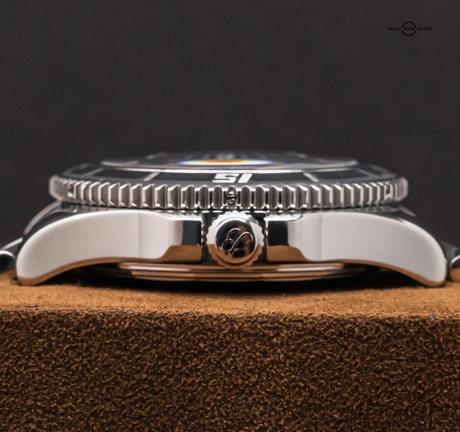 The watch is in great condition with minor wear as pictured, nothing notable outside of a small ding on the left side of case that was so small the camera didn’t pick it up. Keeping fantastic time on my timegrapher when tested! Do excuse the dust/lint in the pictures from the photography process. The Superocean is Breitling’s go-to watch for any occasion, its durability and versatility is unmatched. Ready to be on wrist!
