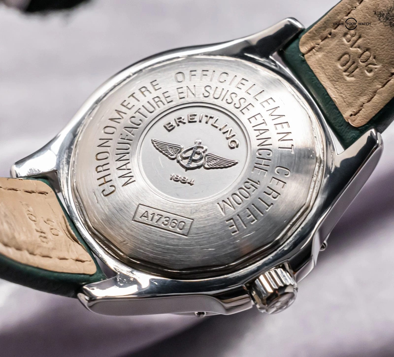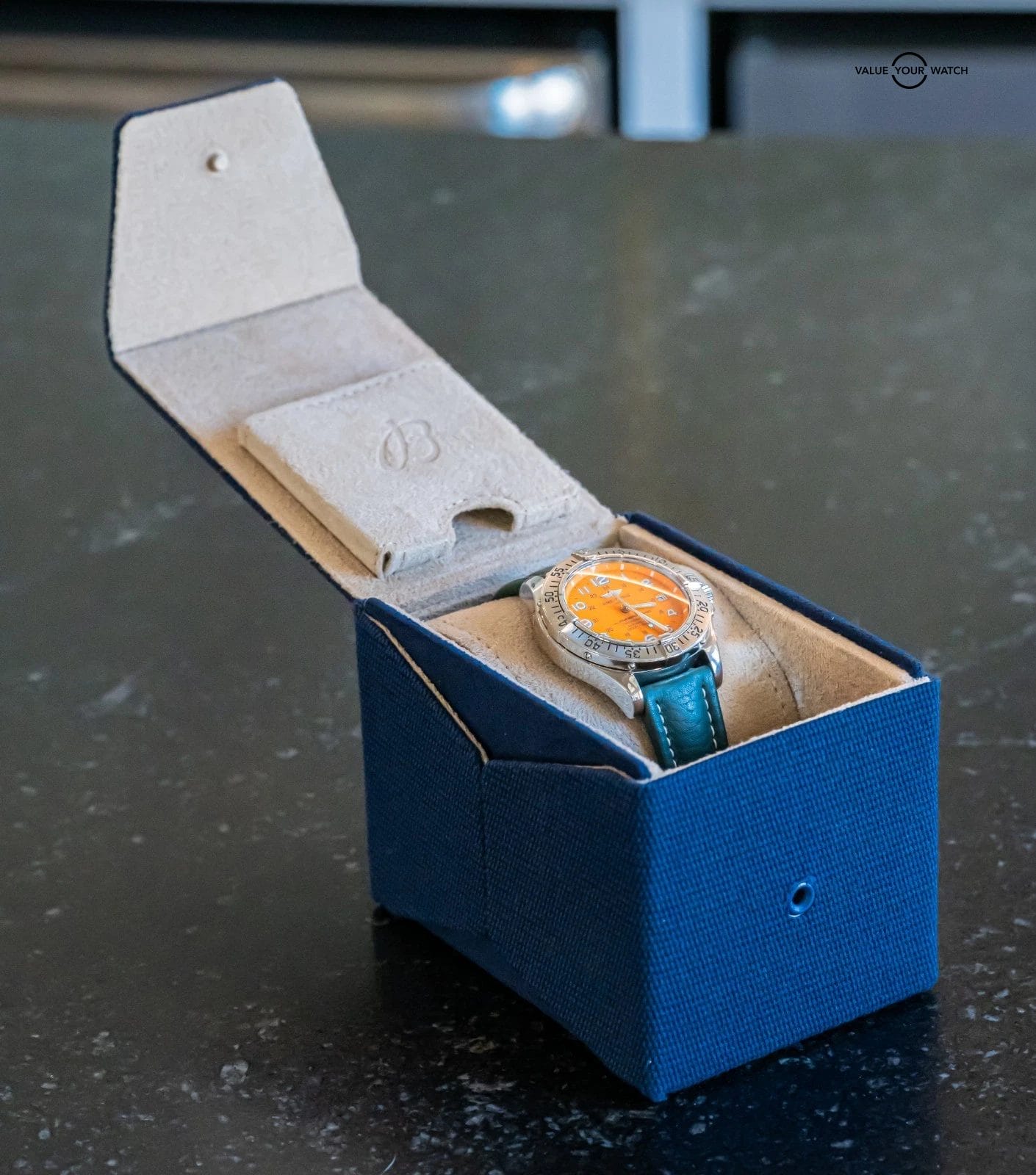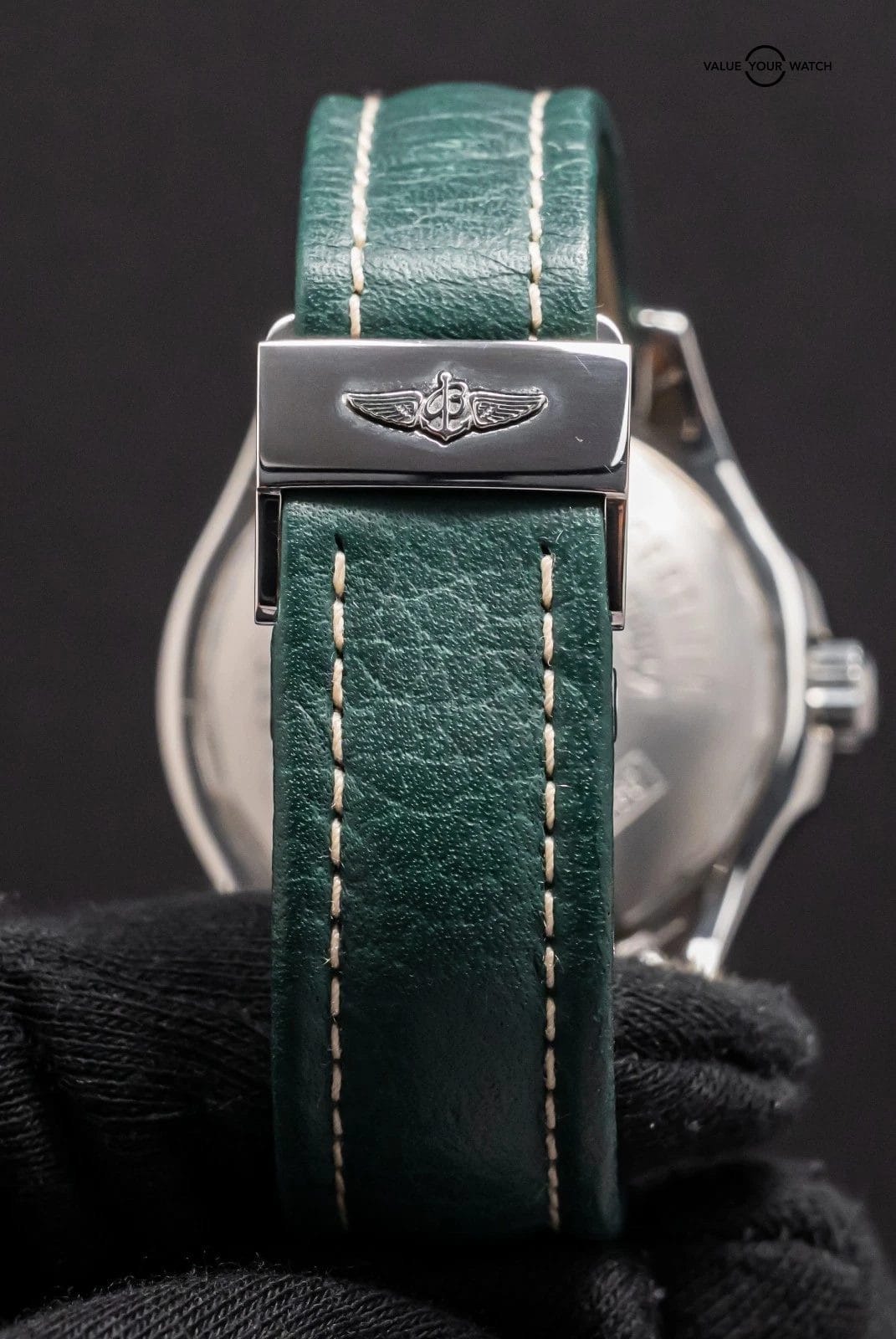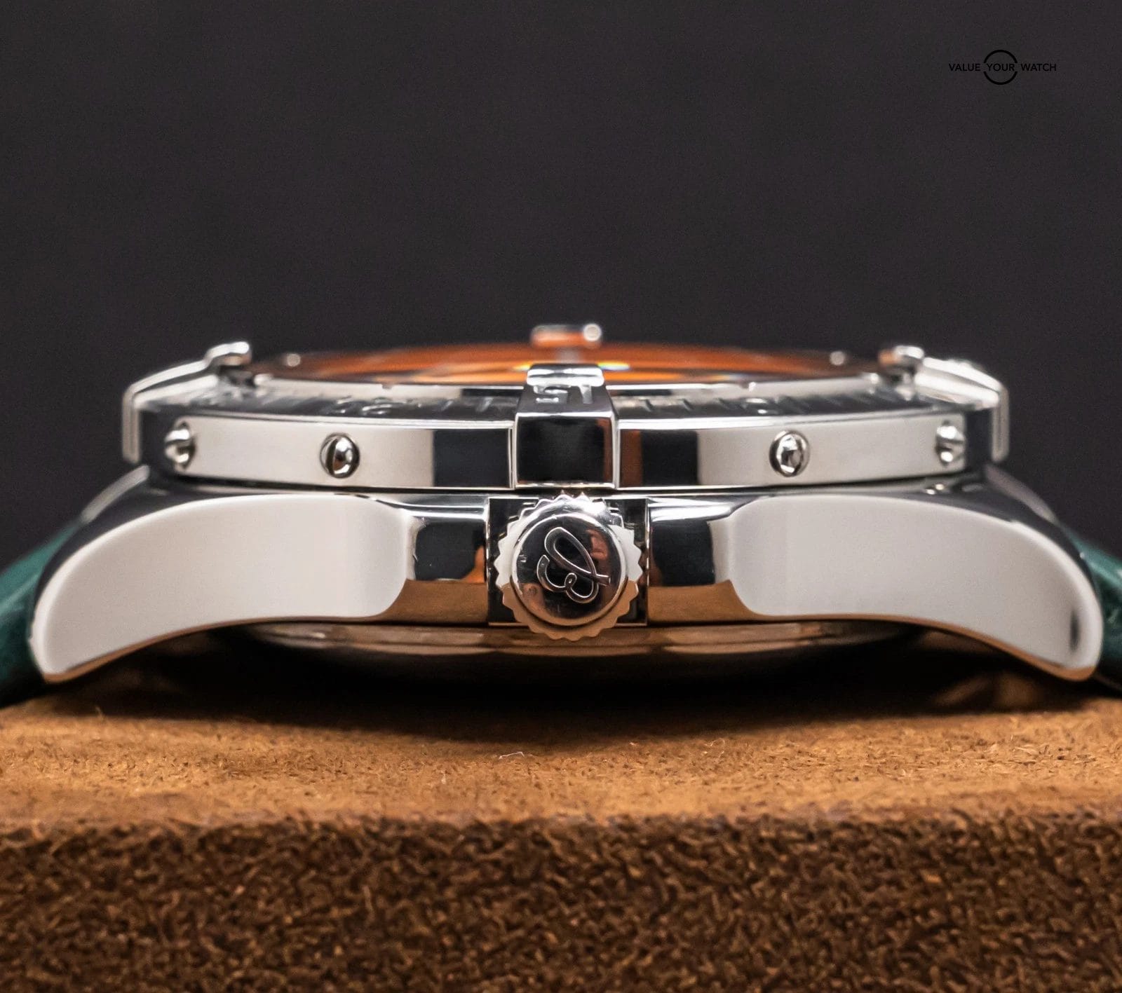 STUNNING Breitling Superocean Automatic 42 mm with Coral Orange Dial on Green Breitling Leather Strap & Deploy Clasp! Comes with original Breitling boxes and was FULLY SERVICED at my watchmaker in April 2025, a huge value-add. Being automatic, 42 mm, clean, and keeping good time, this Superocean presents itself as a fantastic value proposition at the dollar!