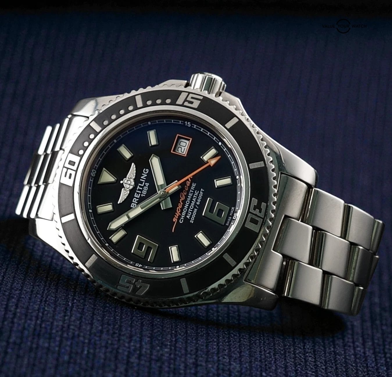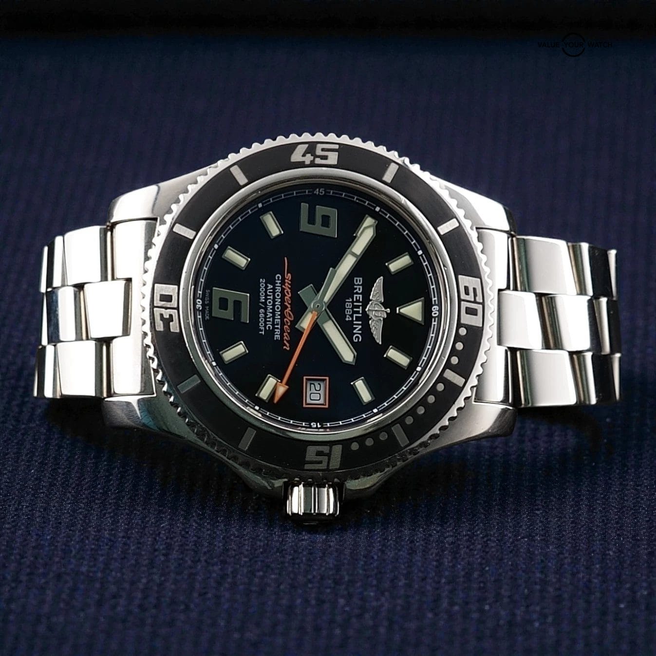 Breitling Superocean 44 A17391 | Black Dial – Orange Seconds | 2000m Deep Sea Diver | Steel Bracelet