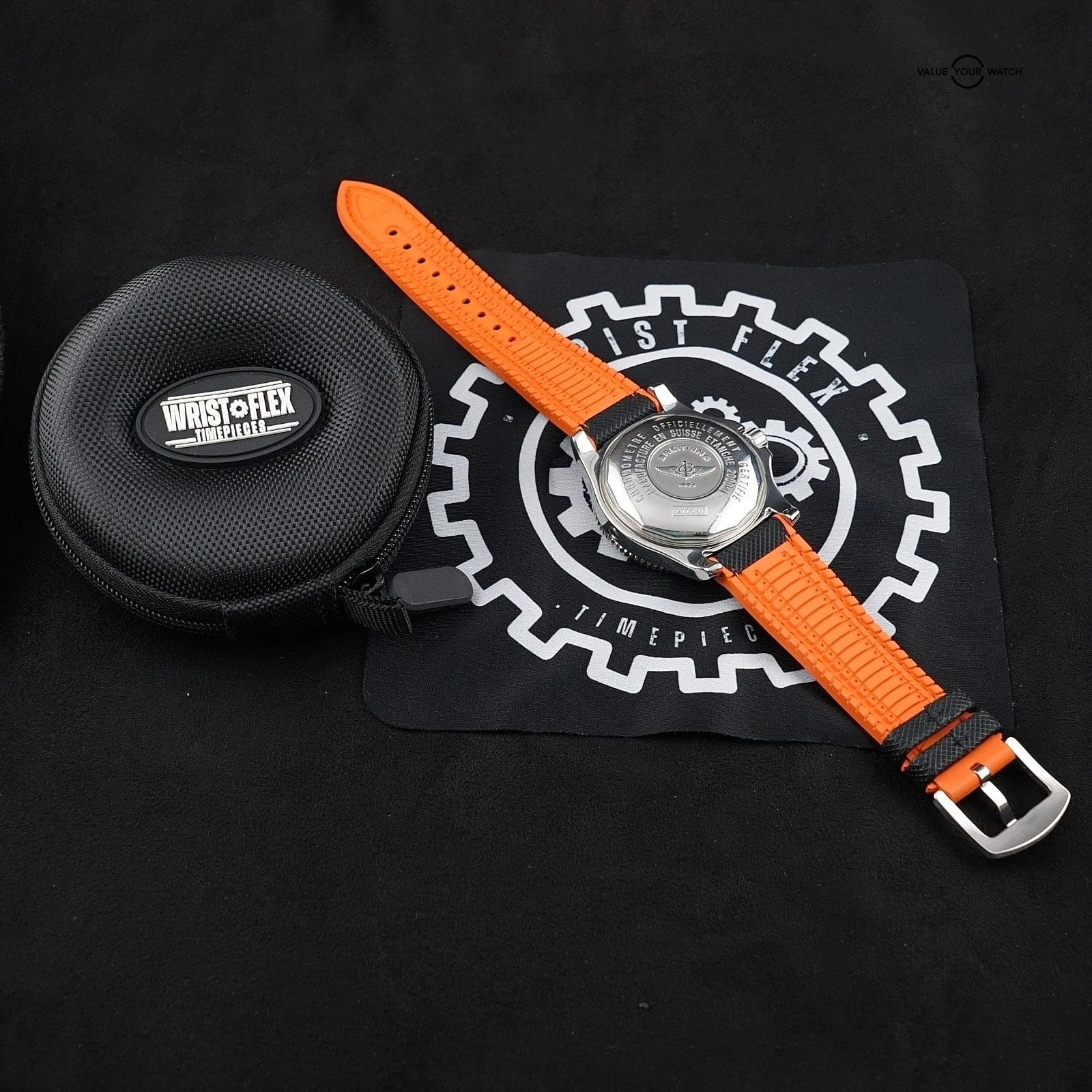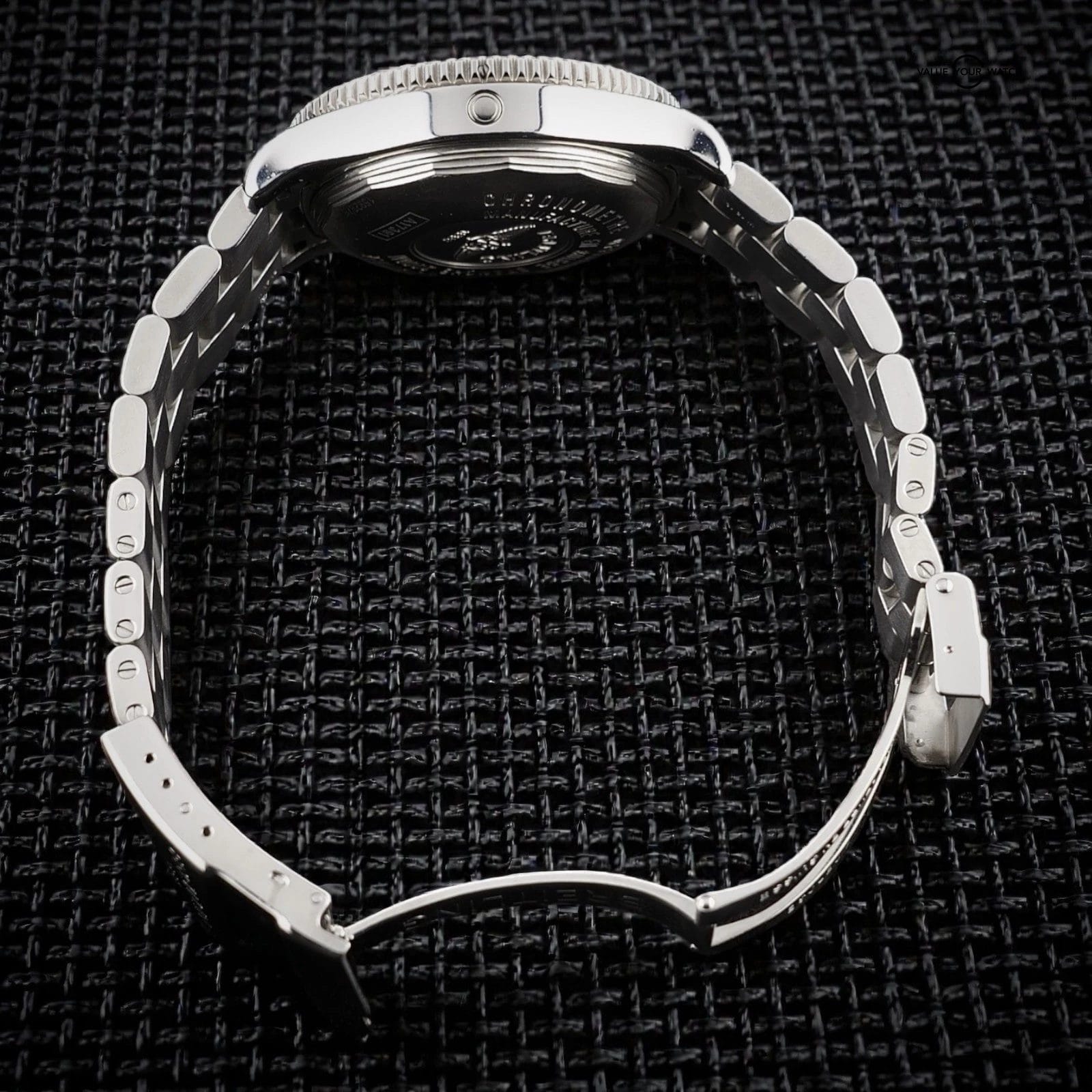 ✅ Clean three hand dive layout ✅ 2000m depth rating ✅ Steel bracelet versatility ✅ Wrist Flex travel case and logo cloth included