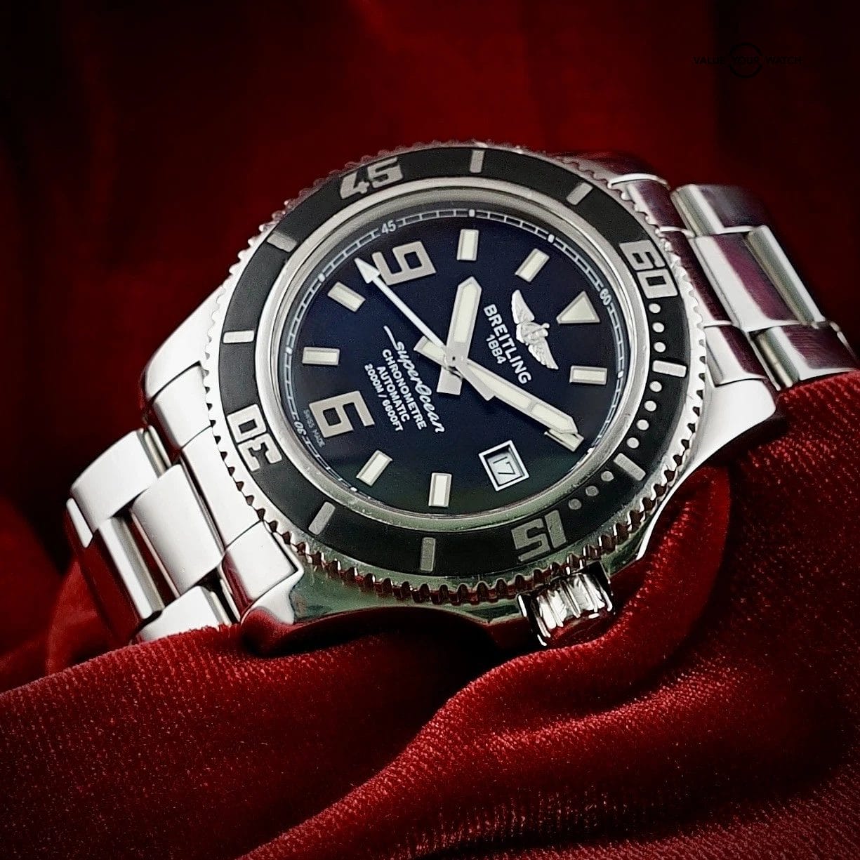 The Superocean 44 A17391 remains one of Breitling’s most versatile divers – built for extreme underwater reliability while maintaining a sleek wrist presence.