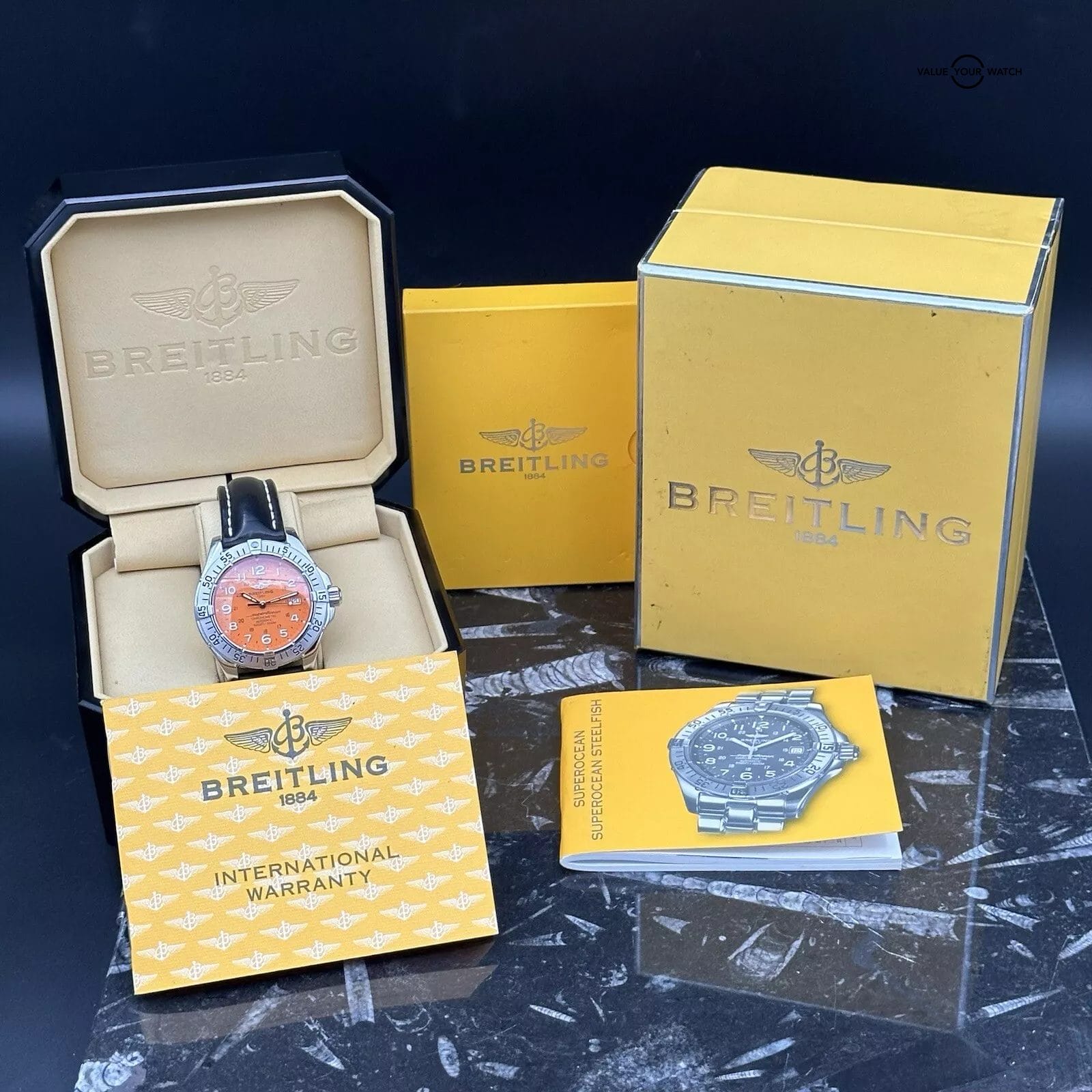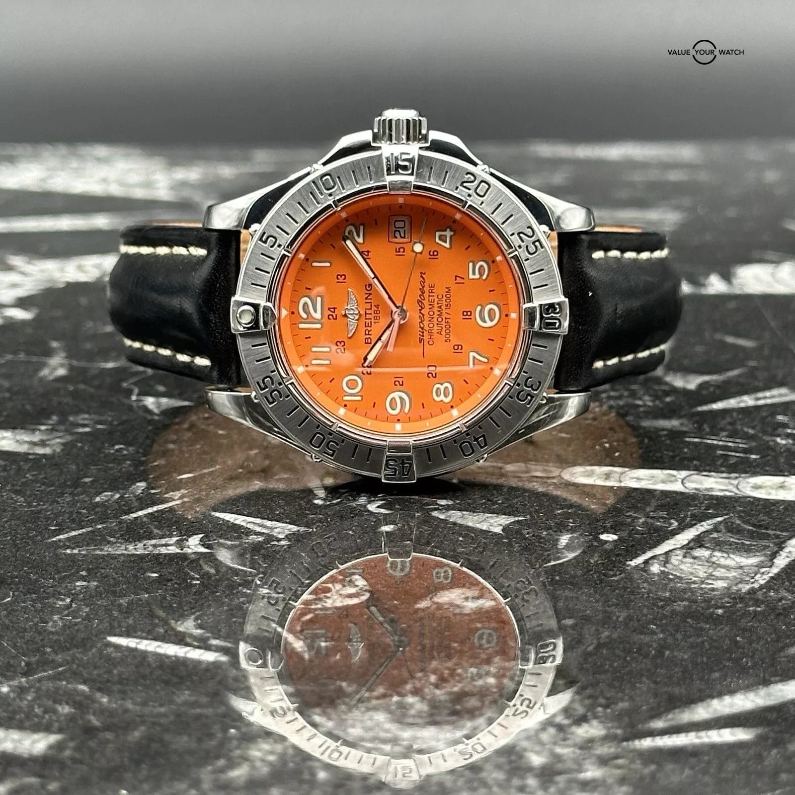 Specification: Breitling Superocean A17360 Orange Leather Strap Complete Set 42mm Steel 1500m