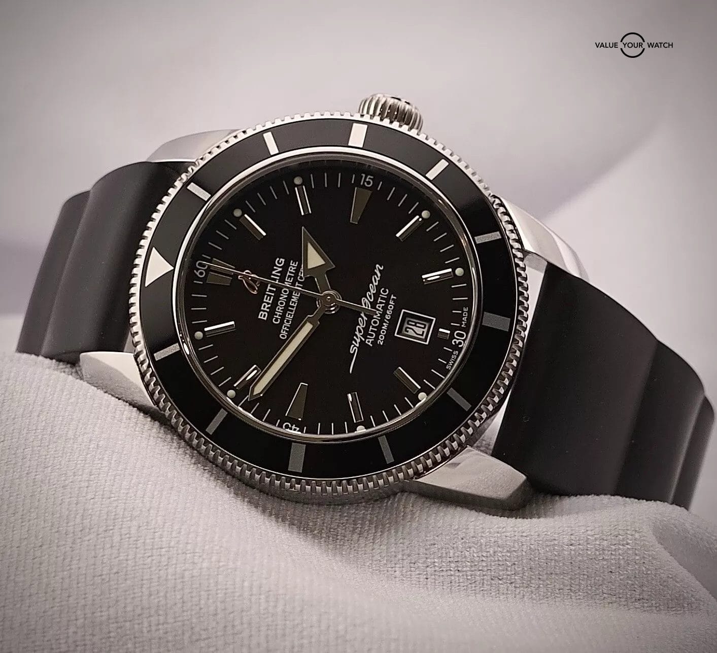 The Breitling Superocean Heritage A17320 is a top choice for luxury dive watch enthusiasts. With its robust 46mm stainless steel case and versatile black dial, this timepiece is engineered for both performance and style. The Superocean Heritage combines cutting-edge technology with classic design, making it the ideal watch for both adventurers and those seeking a sophisticated, reliable timepiece.