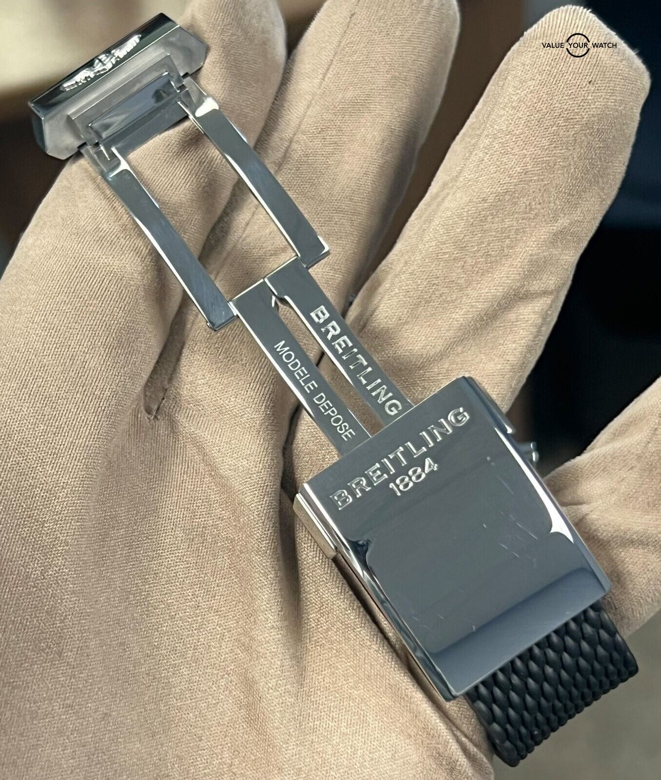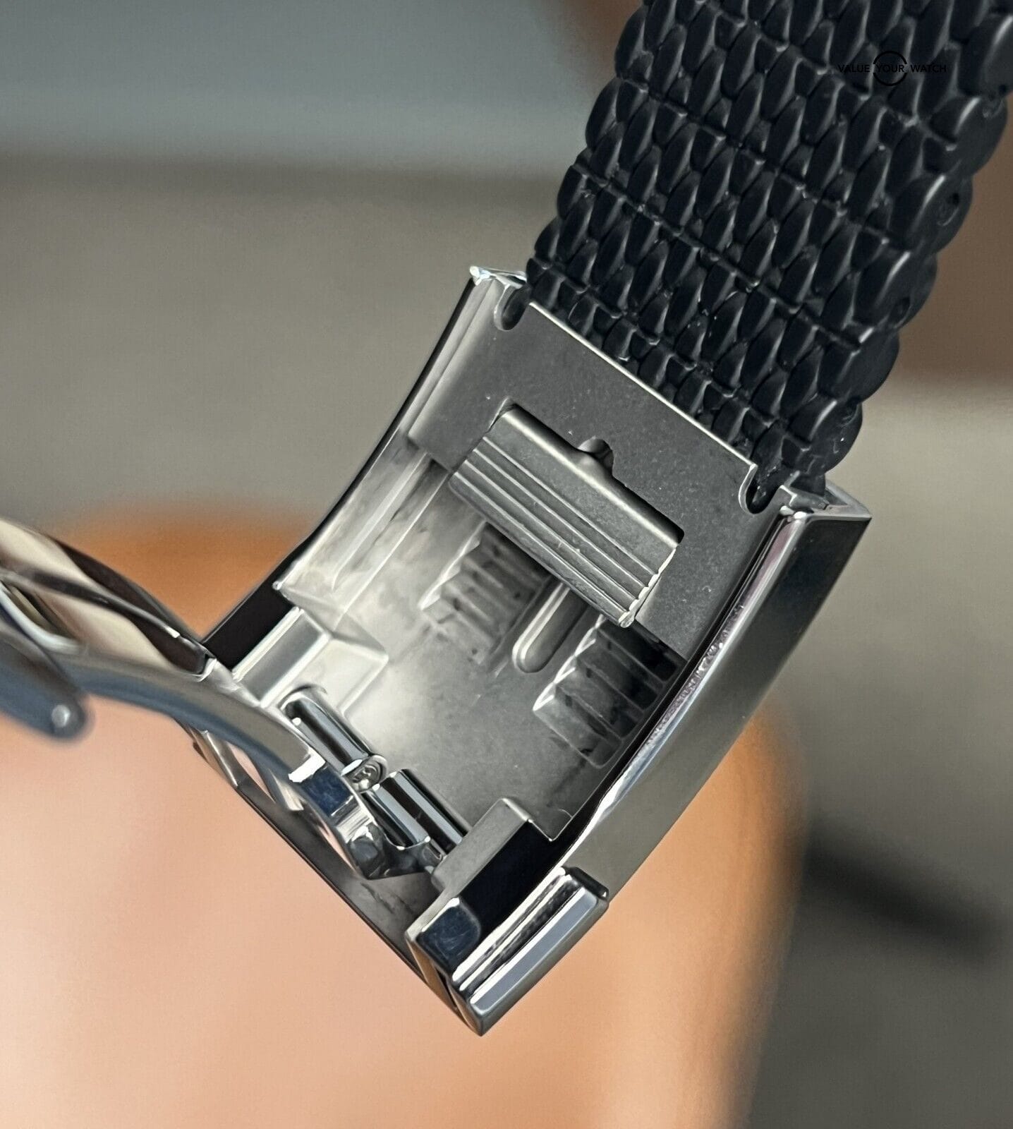 Band: Black Rubber on Stainless-Steel Push-Button Fold Clasp