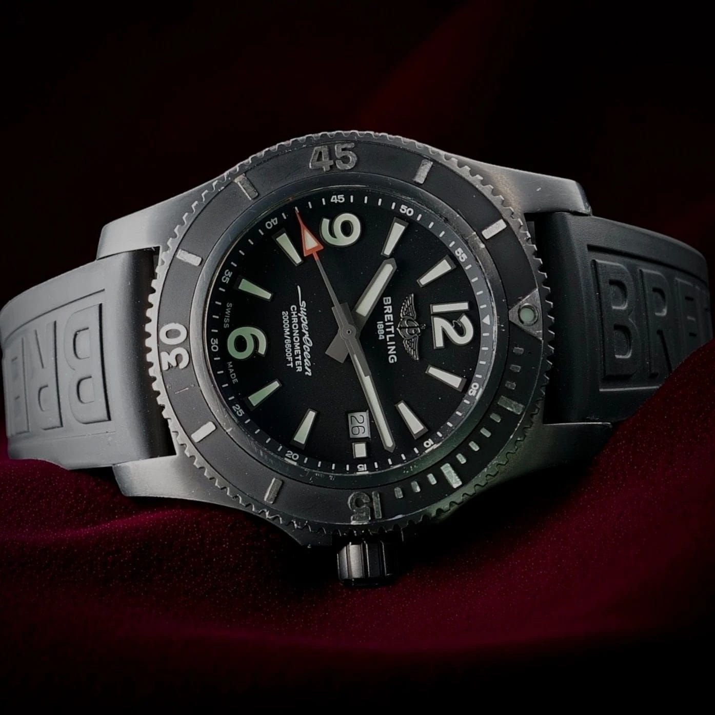 Breitling Superocean 46 Blacksteel M17368 on OEM rubber with Blacksteel buckle