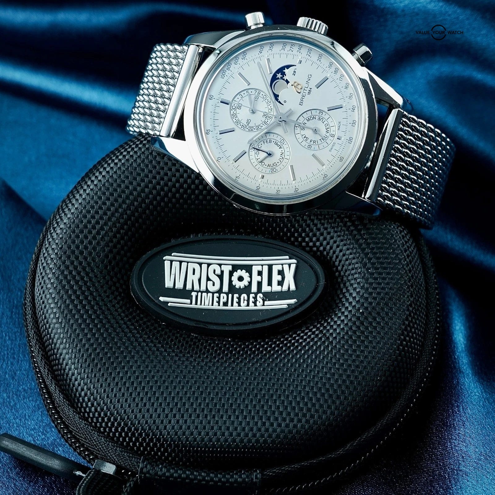 Many chronographs offer only one layer of appeal. This Breitling gives you several. The chronograph adds useful function. The moonphase adds collector charm and a more elevated look on the wrist. The calendar display makes it feel complete and purposeful. Together, those features create a watch that feels more substantial, more detailed, and more special than a basic three-hand or plain chronograph model.