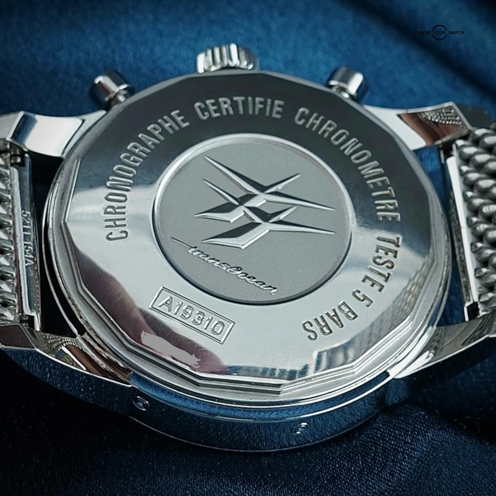 The Breitling Transocean A19310 is the kind of reference that speaks to a buyer who wants more than a standard sports watch. This model brings together the clean, elegant Transocean case design with one of the most attractive complication layouts Breitling produced in the line. You are getting the visual depth of a moonphase display, the everyday usefulness of a chronograph, and a calendar layout that gives the dial real character without feeling crowded.