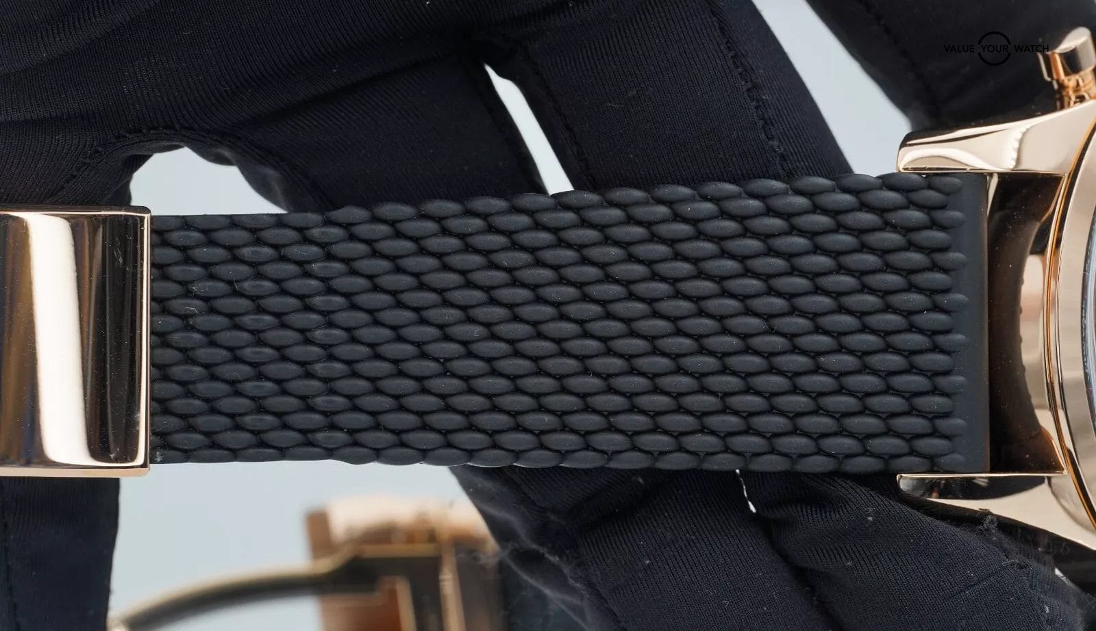 Band: Black Rubber on Rose Gold Deployant Buckle