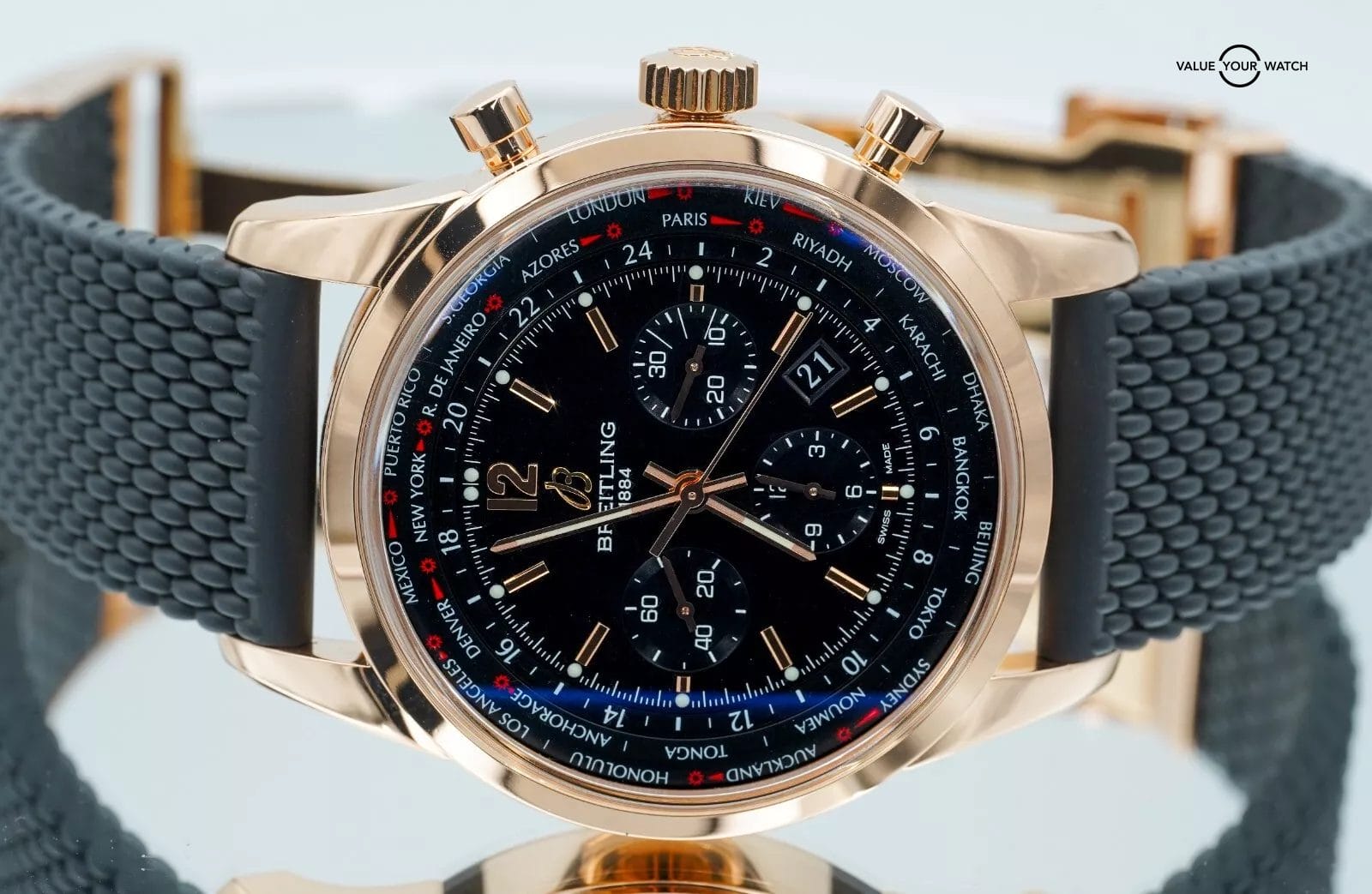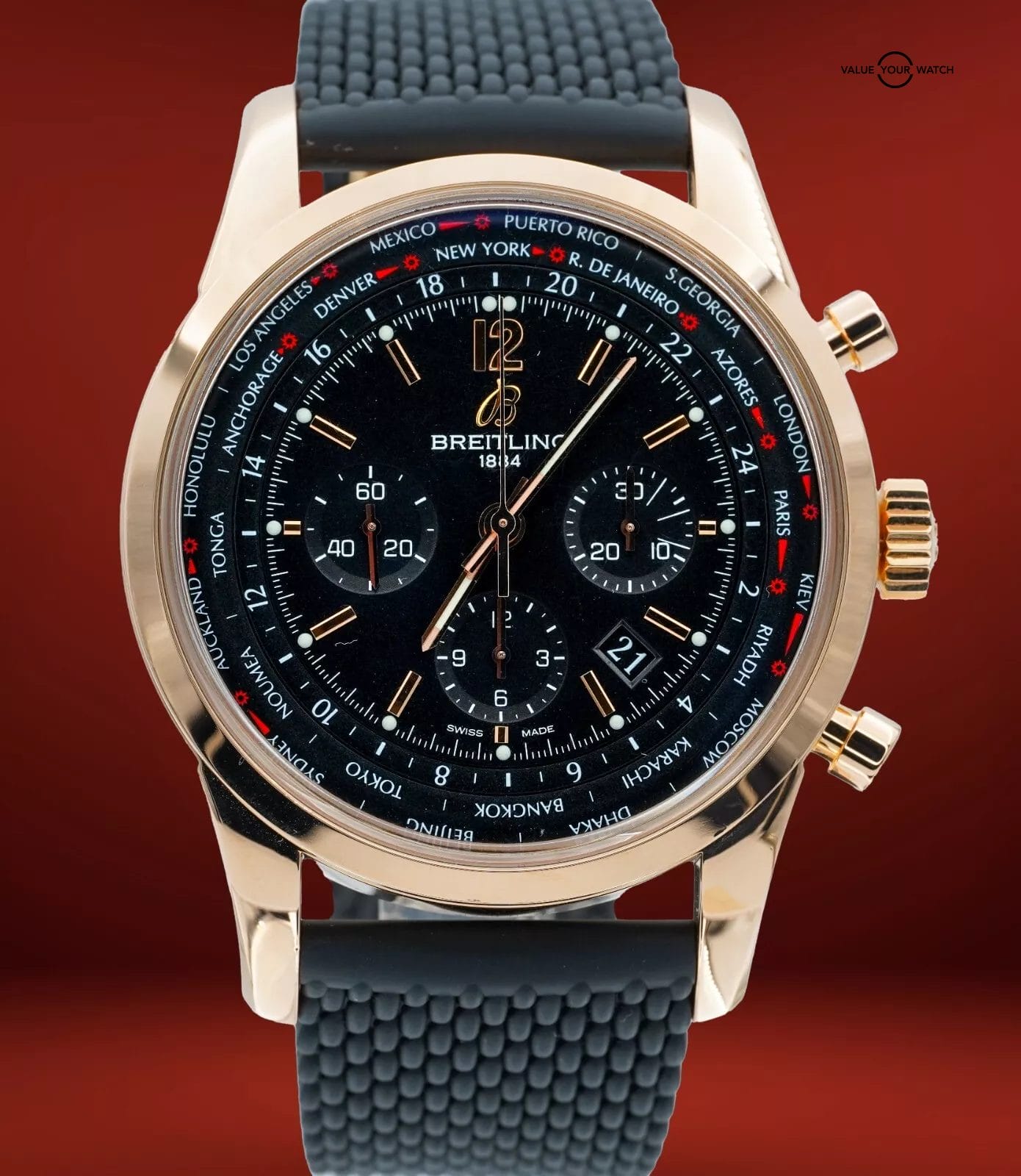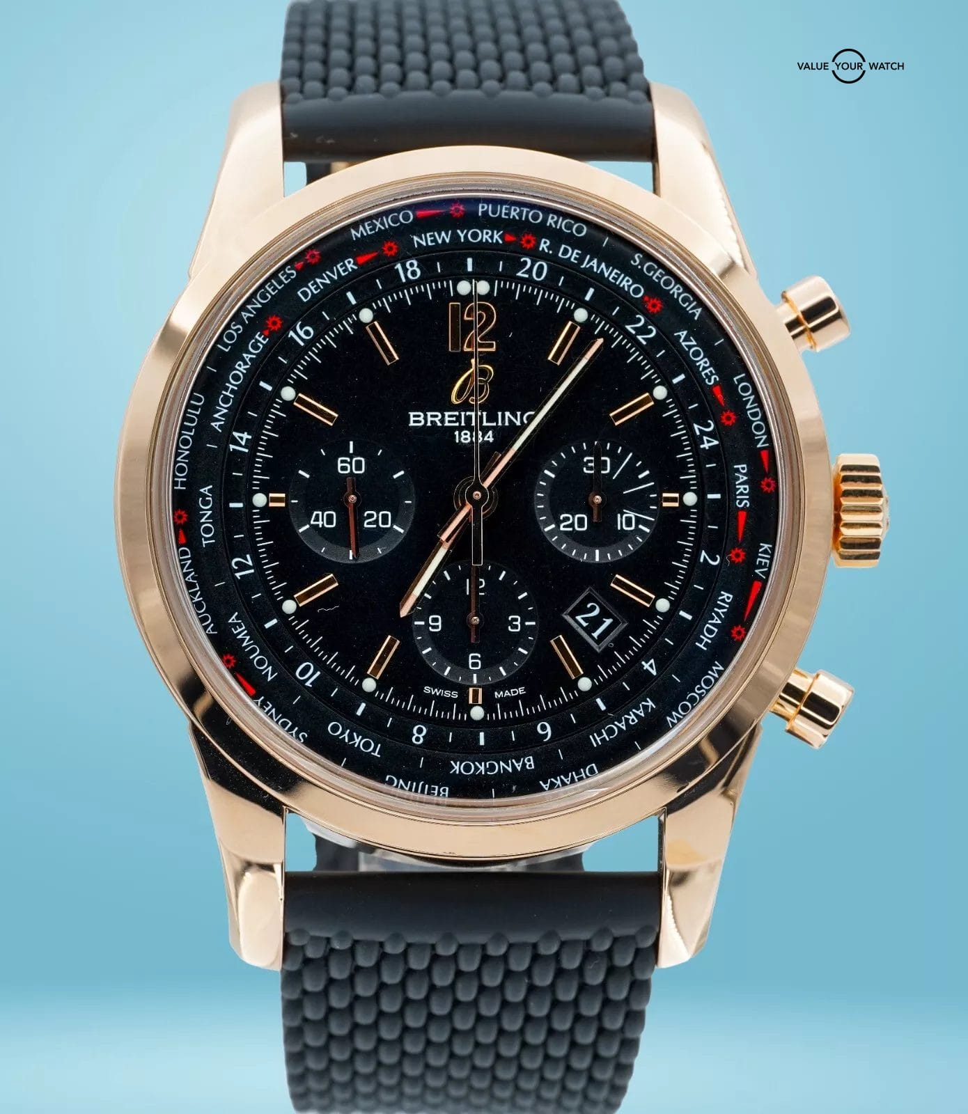 Breitling Transocean Unitime Pilot 46mm Rose Gold RB0510!