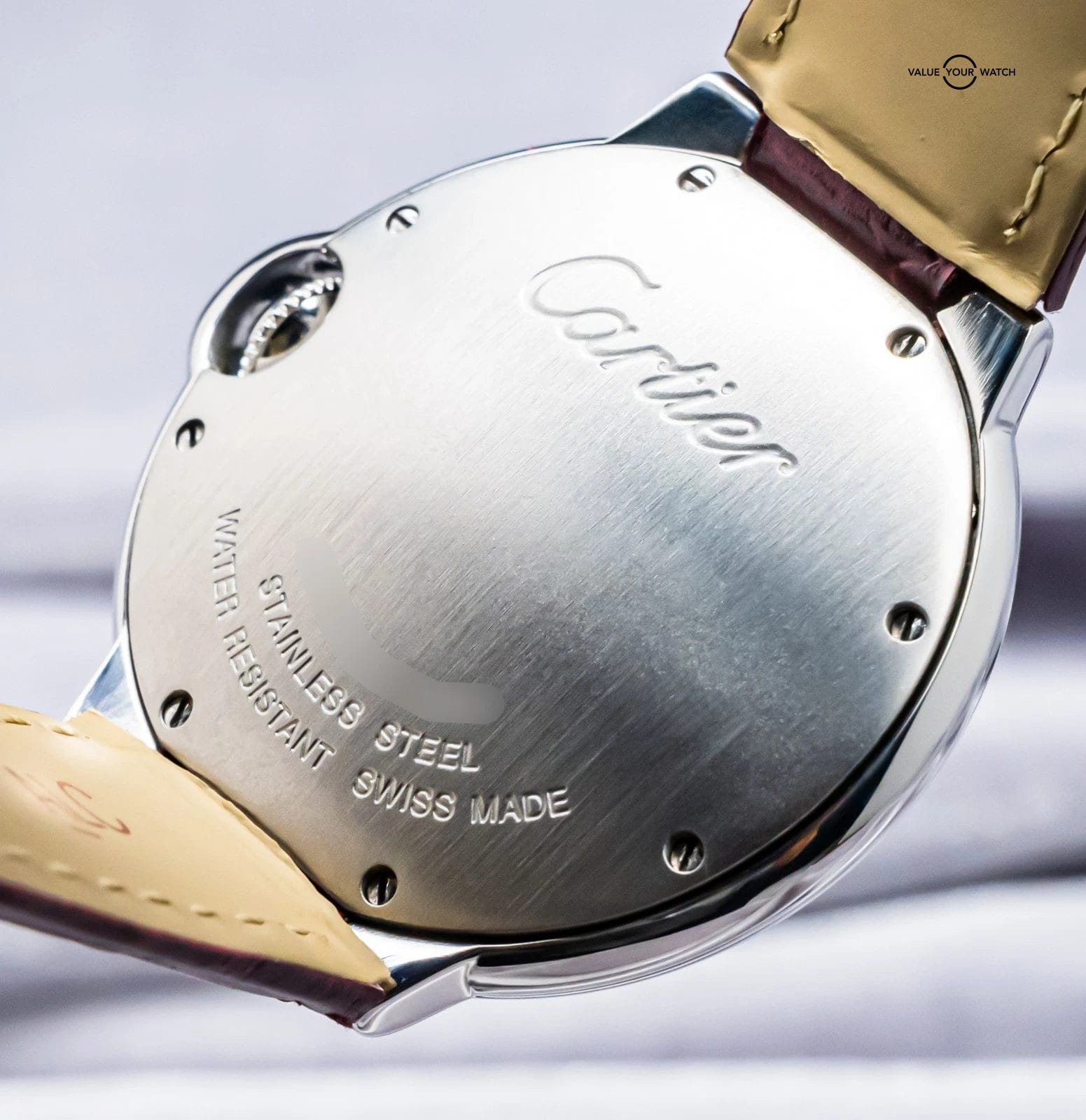 Specification: Cartier Ballon Bleu 36mm Silver Dial Purple Strap Steel Quartz Roman W6920087