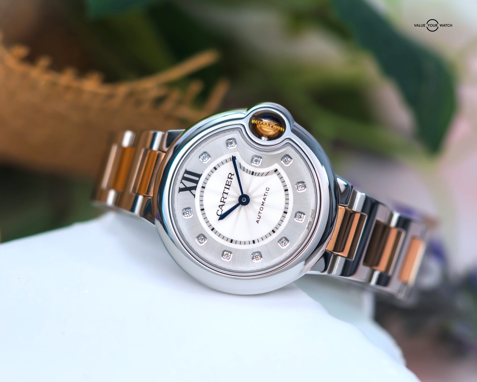 The Ballon Bleu represents everything Cartier stands for: timeless design, impeccable proportion, and effortless beauty. Collectors and admirers alike love this 33-millimeter variant for its versatility: large enough to feel substantial, yet delicate enough to remain elegant. The mix of steel and rose gold offers the best of both worlds, complementing any jewelry or skin tone. With its diamond dial and graceful curves, it’s the perfect gift for someone special or a meaningful addition to your own collection.