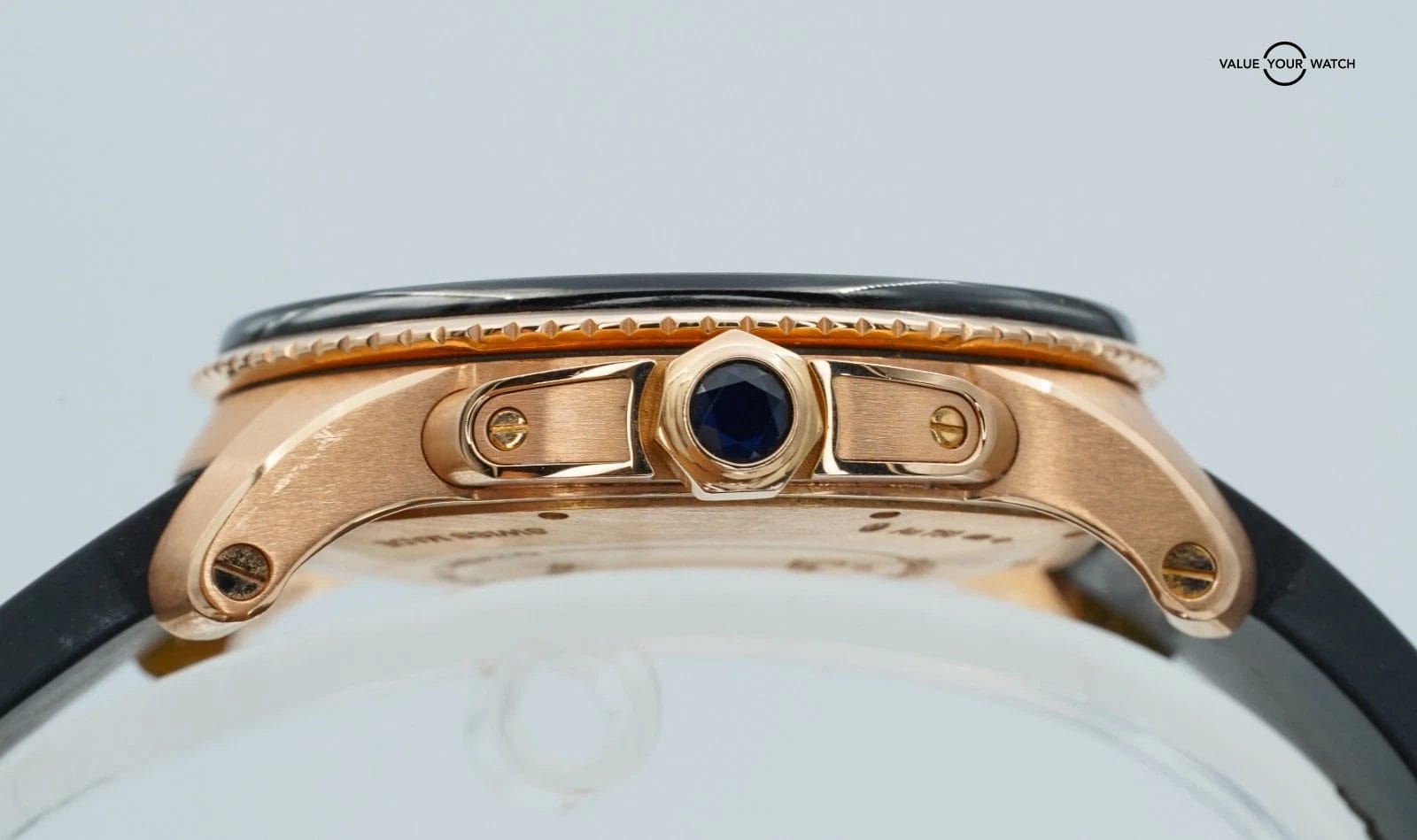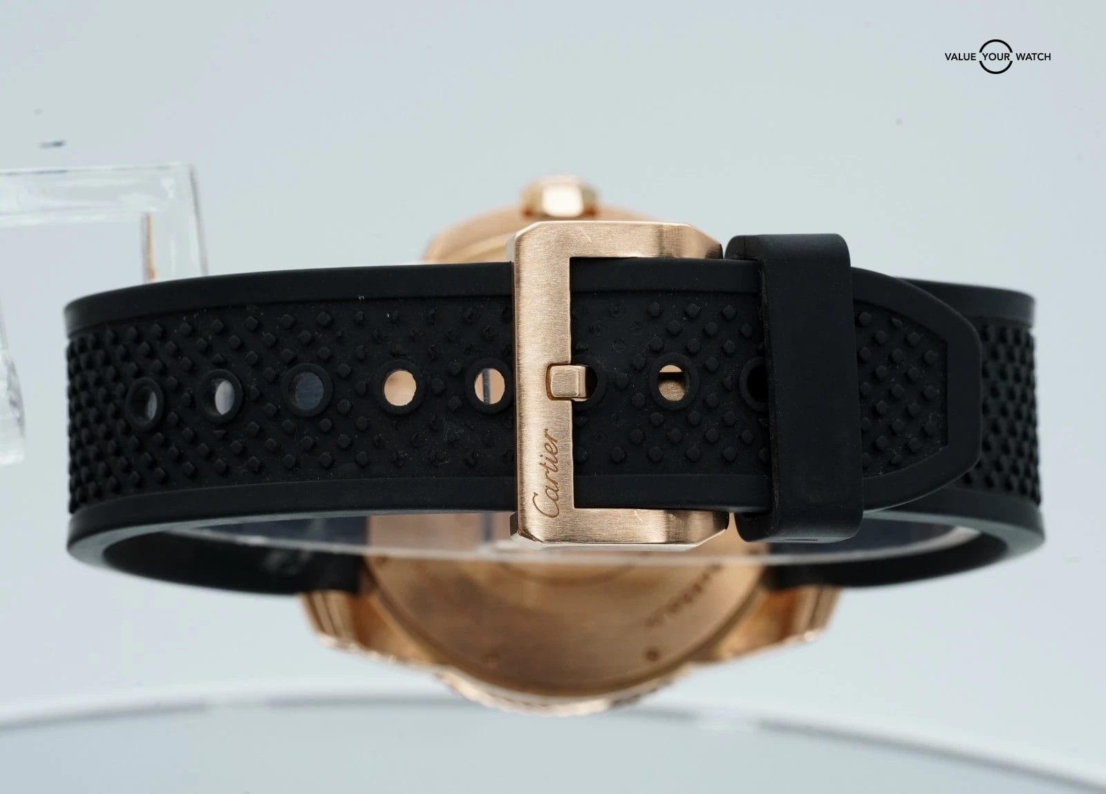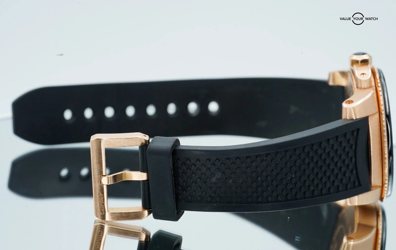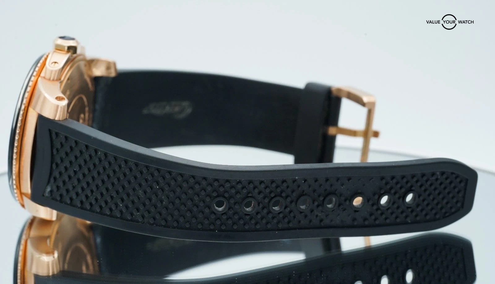 Band: Black Rubber with 18K Rose Pin Buckle
