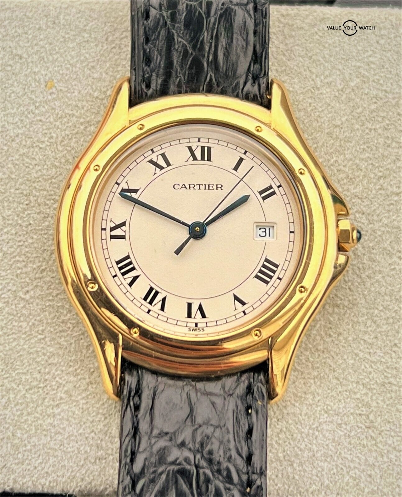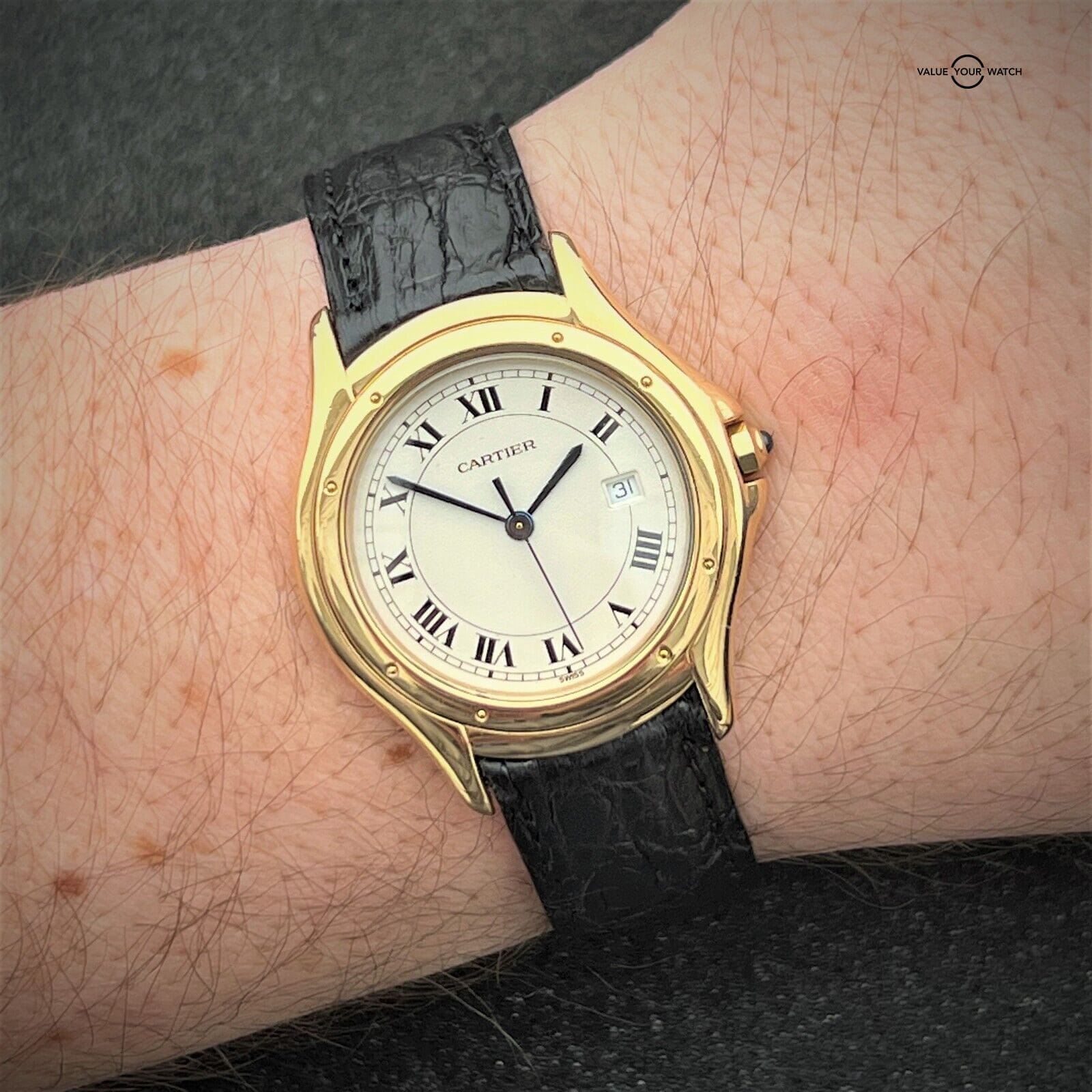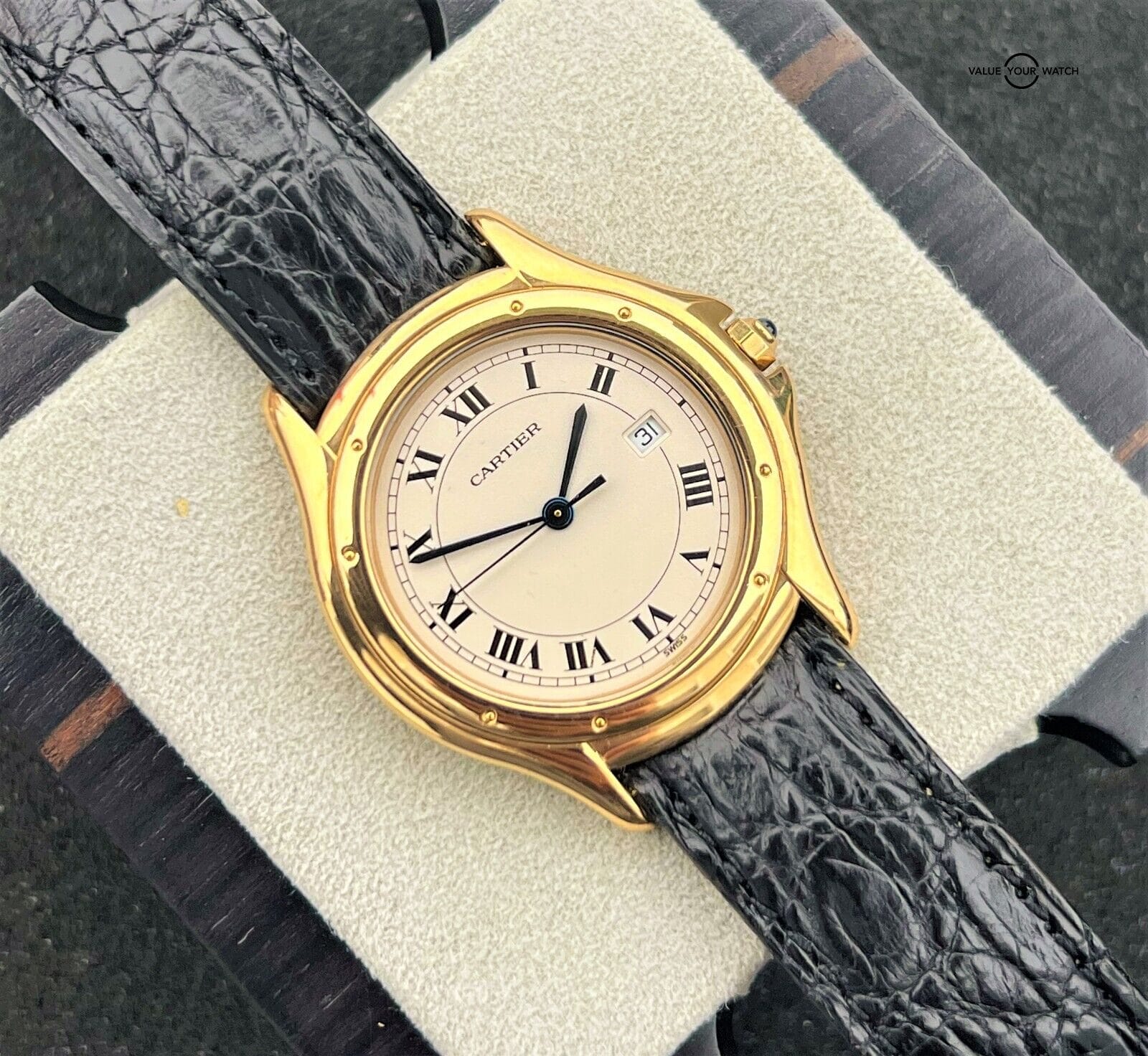 Specification: Cartier Cougar Large 33mm 18K Yellow Gold Quartz!