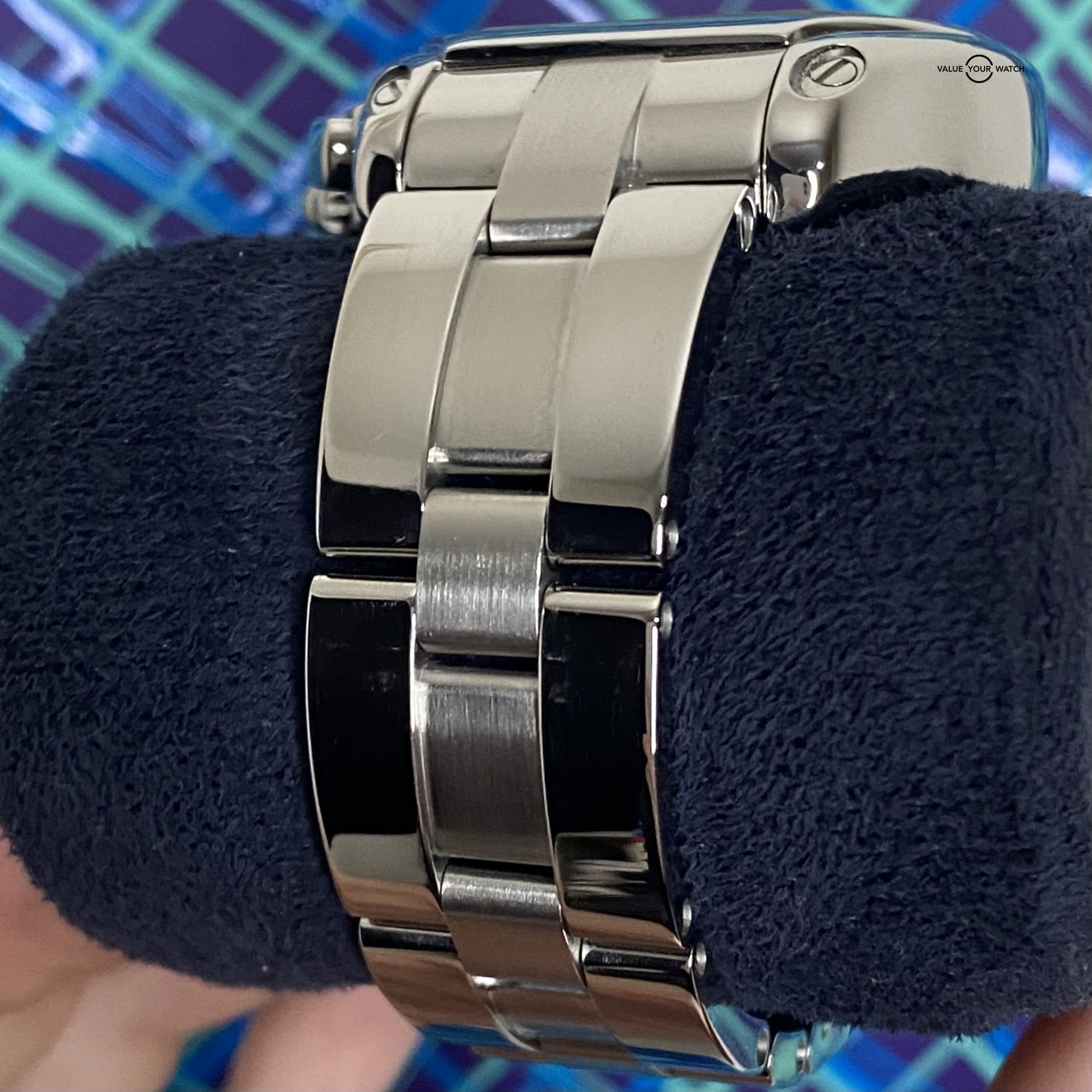 With design inspiration taken from classic automobiles. The Roadster XL has a classic look that will never go out of style. At 43mm it is one of Cartiers larger models.