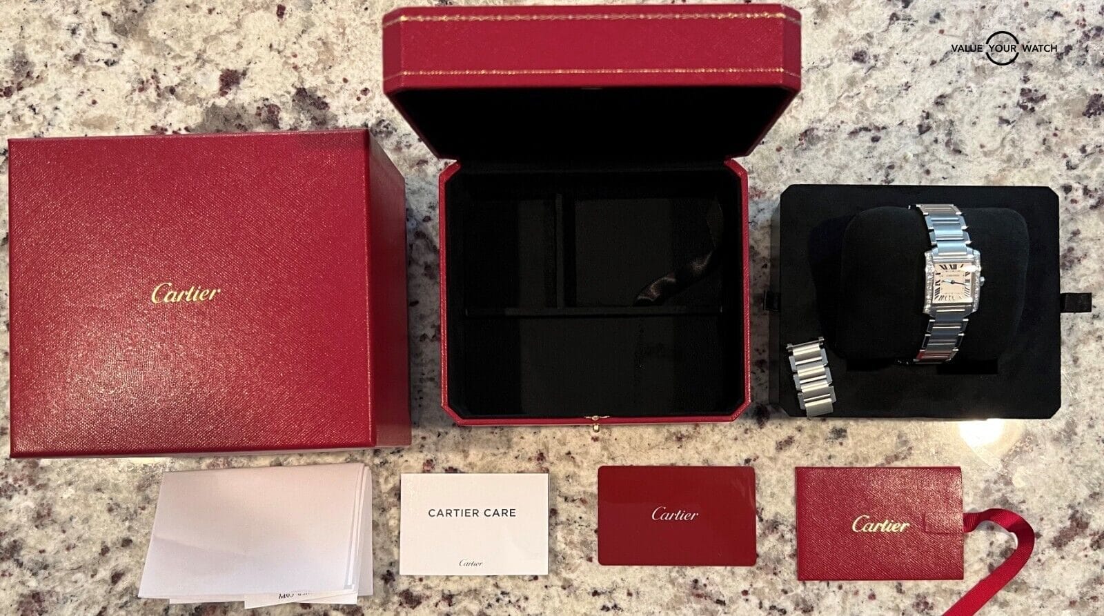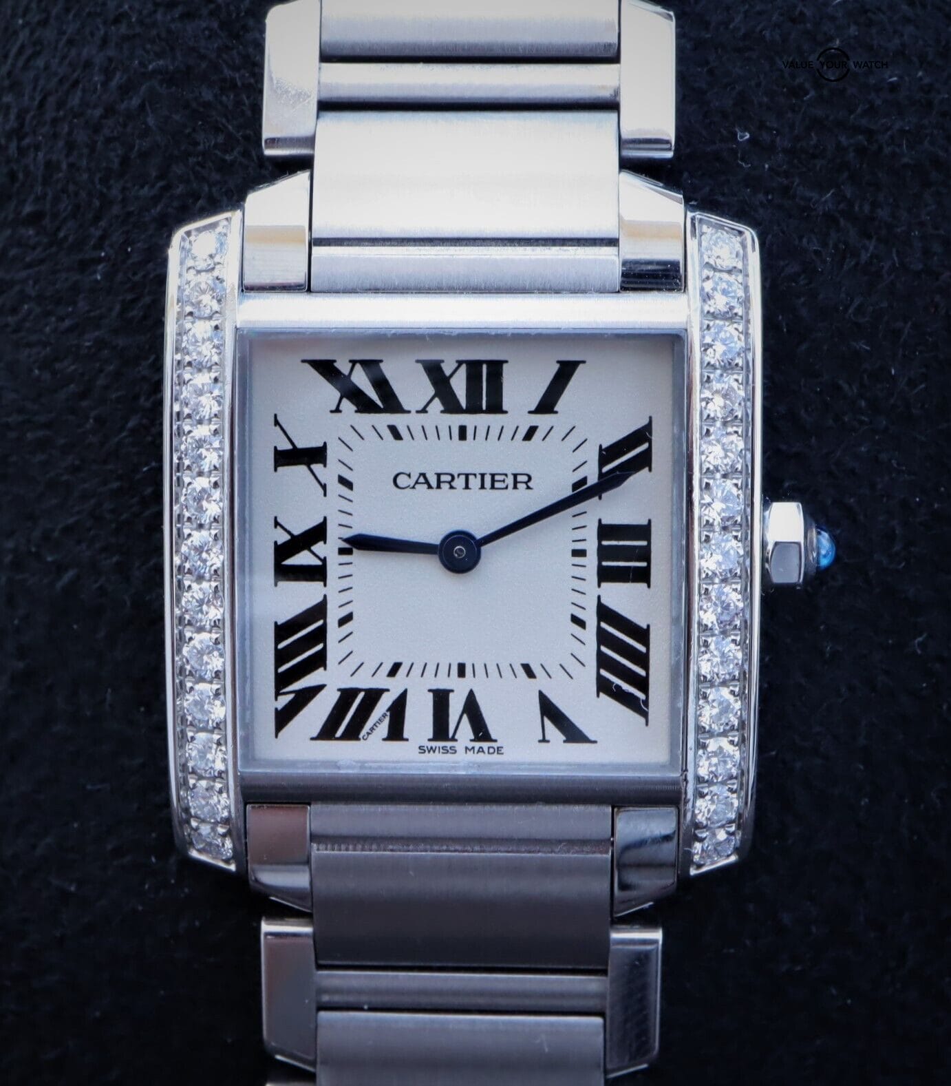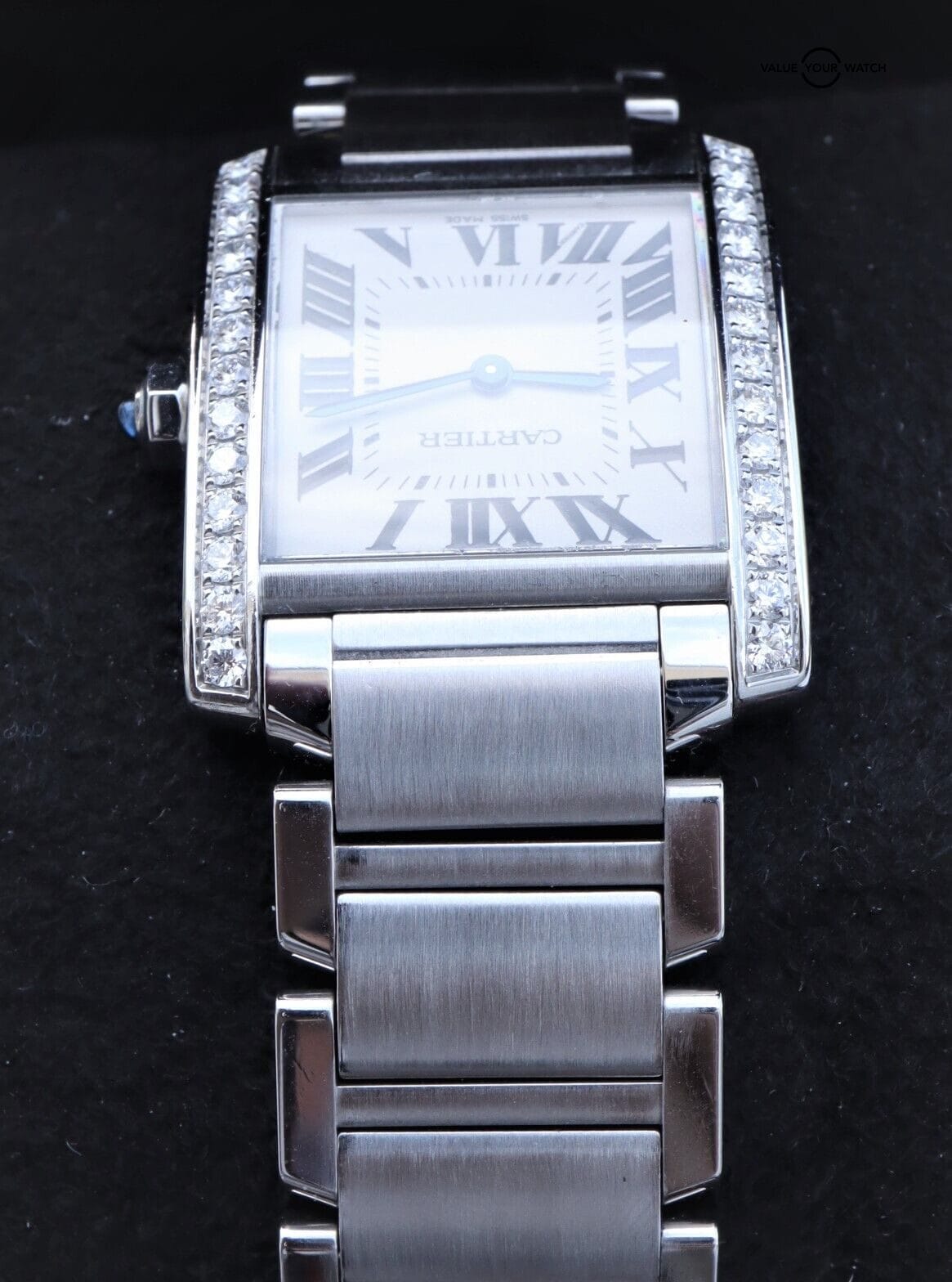 Cartier Tank Francaise W4TA0009 Midsize Ladies Box/Papers! This beautiful timepiece comes as a complete set. It has the outer red box, inner red box, all links, care manual, original receipt, and original warranty card (Dated November 2, 2020). It comes with the original receipt where the original owner paid $9,000. The silver dial with roman numerals is the timeless Cartier look on this beautiful timepiece Everything Is functioning as it should. Serial numbers and names are blurred in photos only for privacy reasons. I am happy to answer all questions about the watch. Just reach out to me via messages. I have many references in the watch world and am happy to provide as many as needed. Feel free to search my username “thegolferguy” in the Rolex Forums under the “Who’s Who” section and see ample feedback.