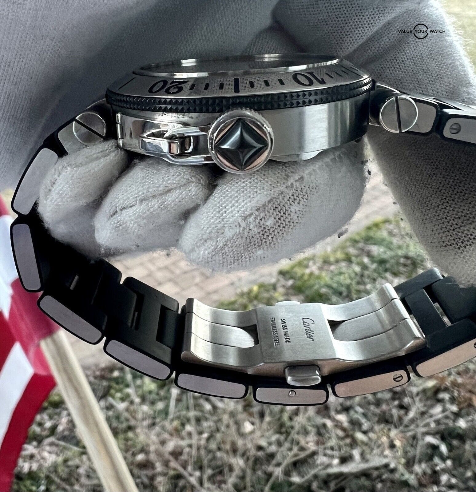 Water Resistance: 100M/330 feet (canteen screw down crown) Case Size: 40.5mm Movement: Cartier Calibre 049 Swiss-automatic I am pleased to offer for sale this stunning and masculine Cartier diver with an original MSRP of $8K! This watch is in good, pre owned condition. It is keeping great time and the seals were just replaced and pressure tested to ensure factory specifications. This timepiece includes the watch, sized roughly 7.75” to fit a 7.5” wrist comfortably, and the box. No papers included. I have sold well over 100 watches in the last year alone and have taken every measure to ensure the happiness of every client. Your wrist is my reputation! |