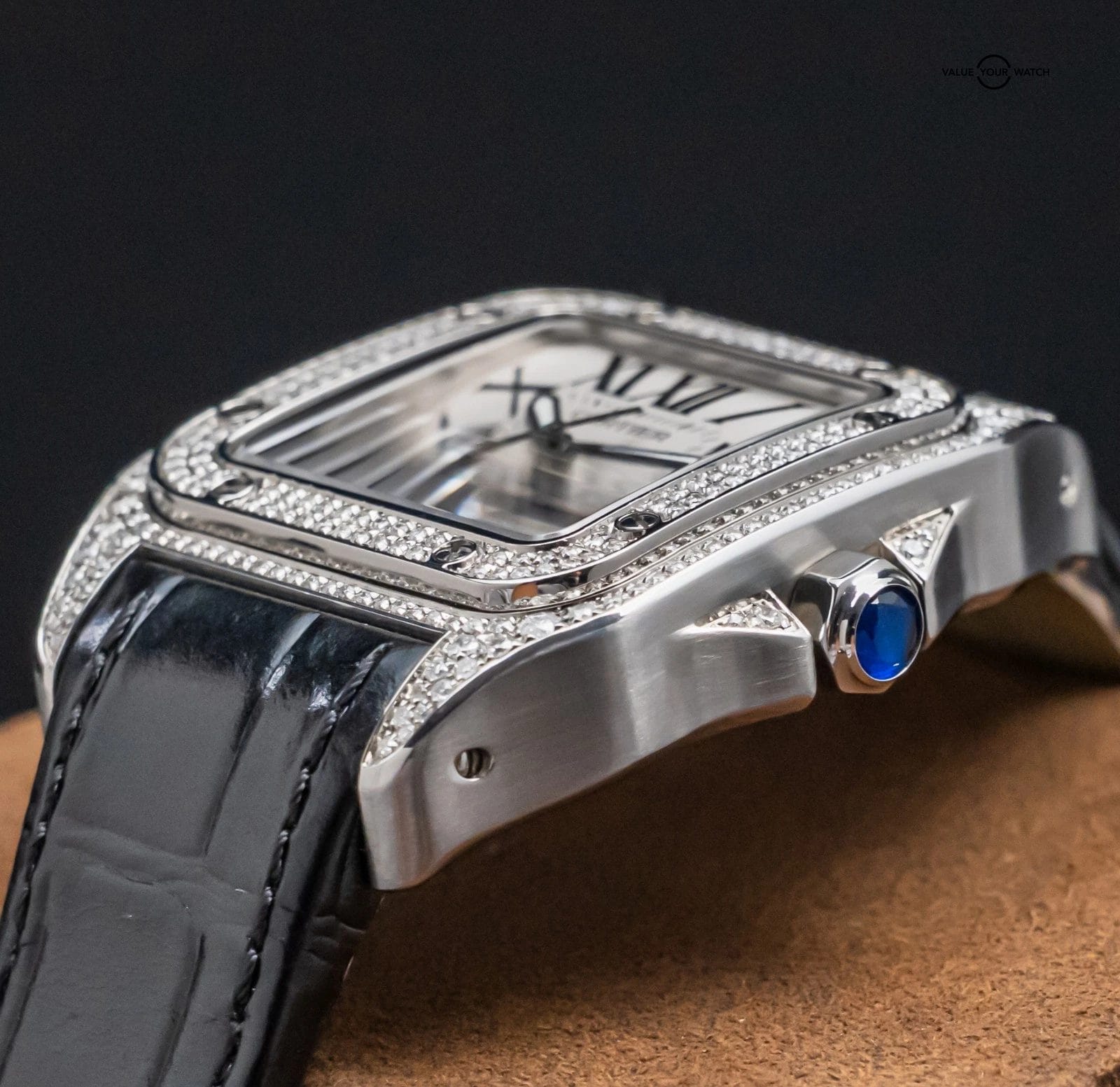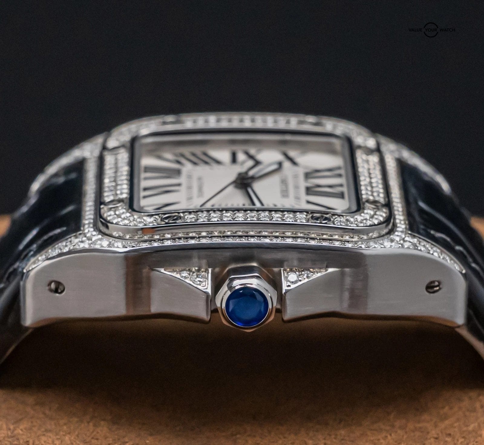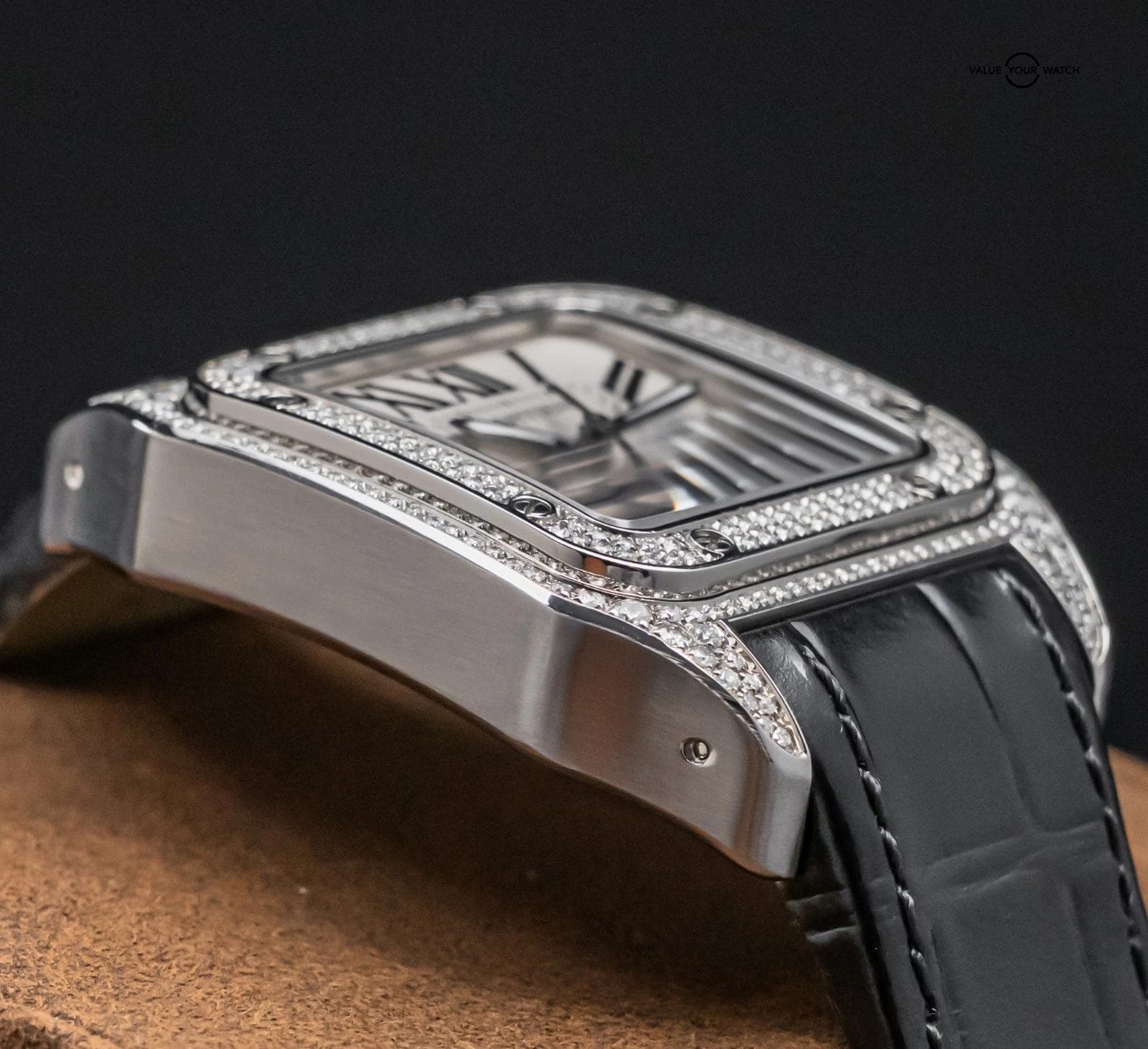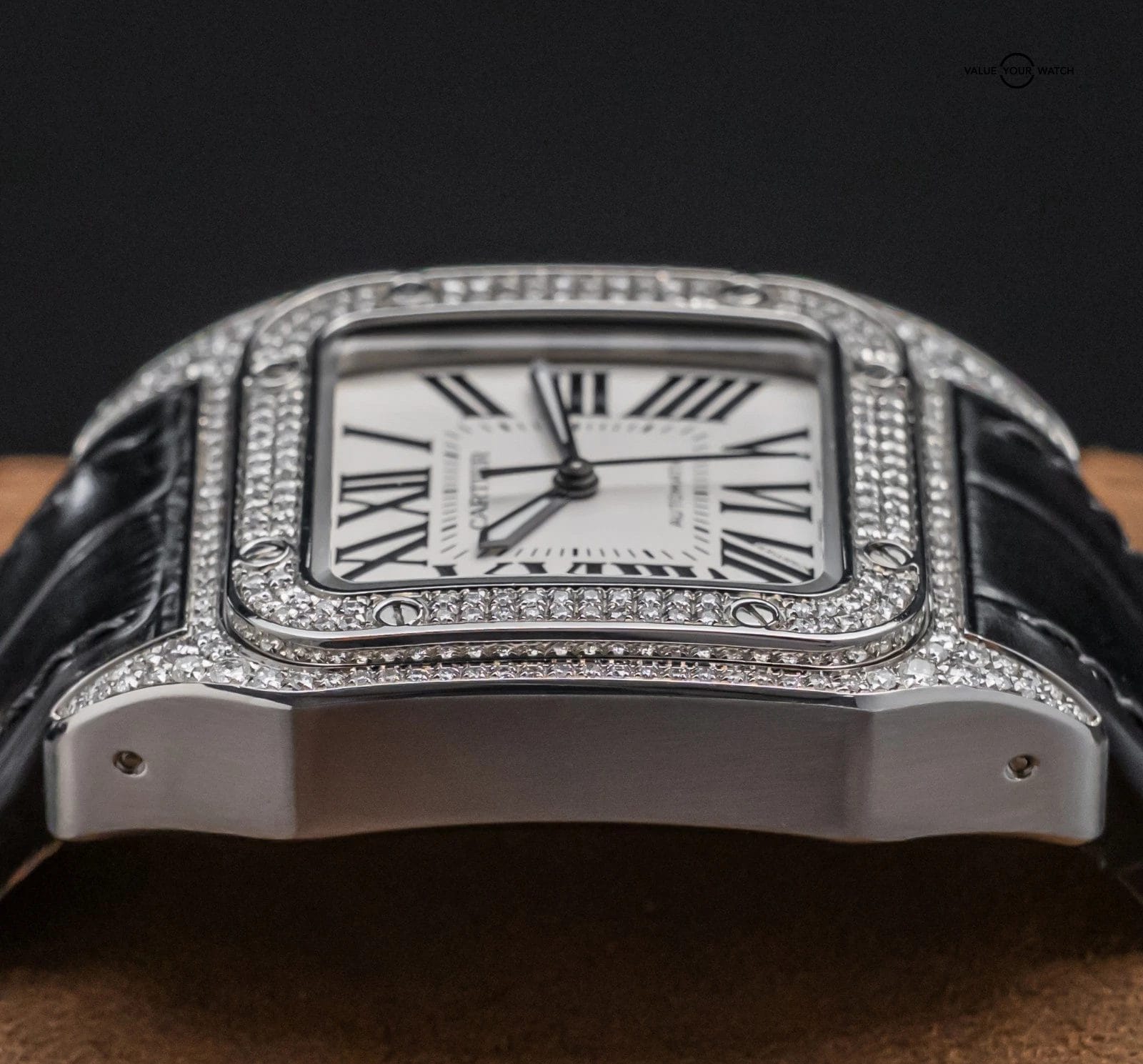 Specification: Cartier Santos 100 Medium Model Custom-Set Diamonds Midsize Steel 2878 W20106X8