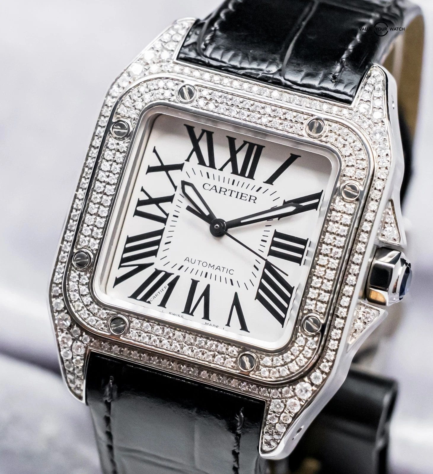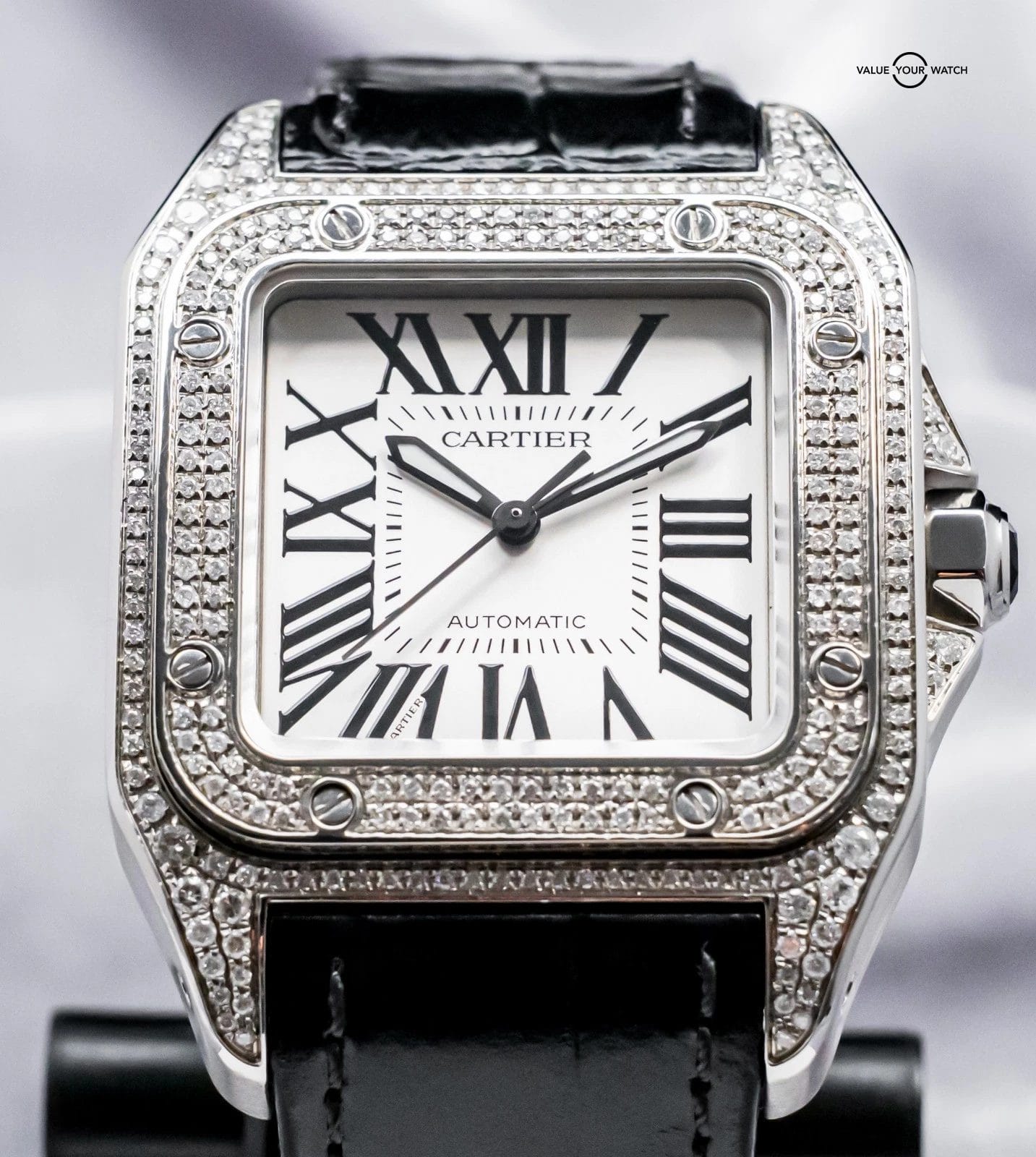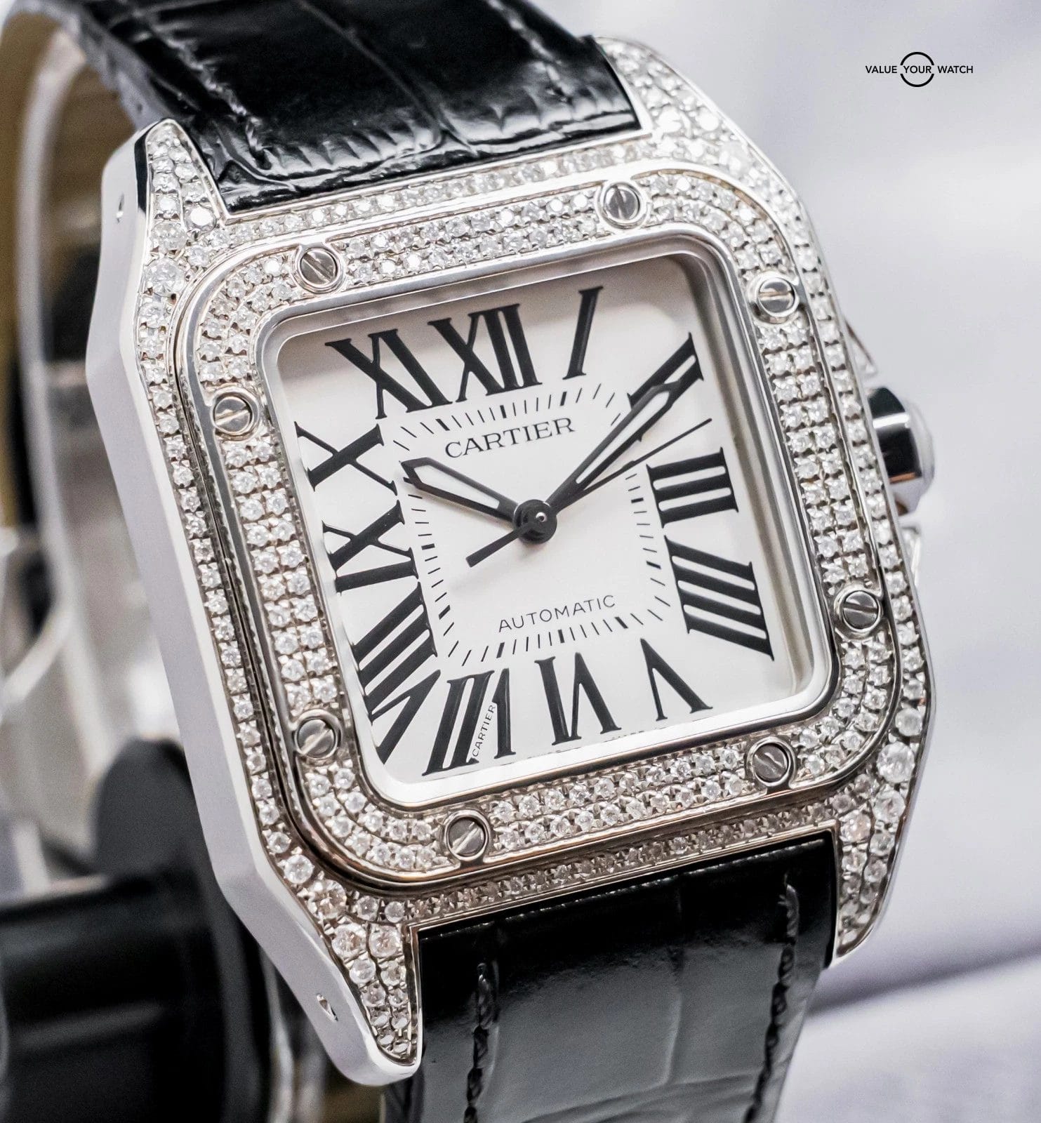 Specification: Cartier Santos 100 Medium Model Custom-Set Diamonds Midsize Steel 2878 W20106X8