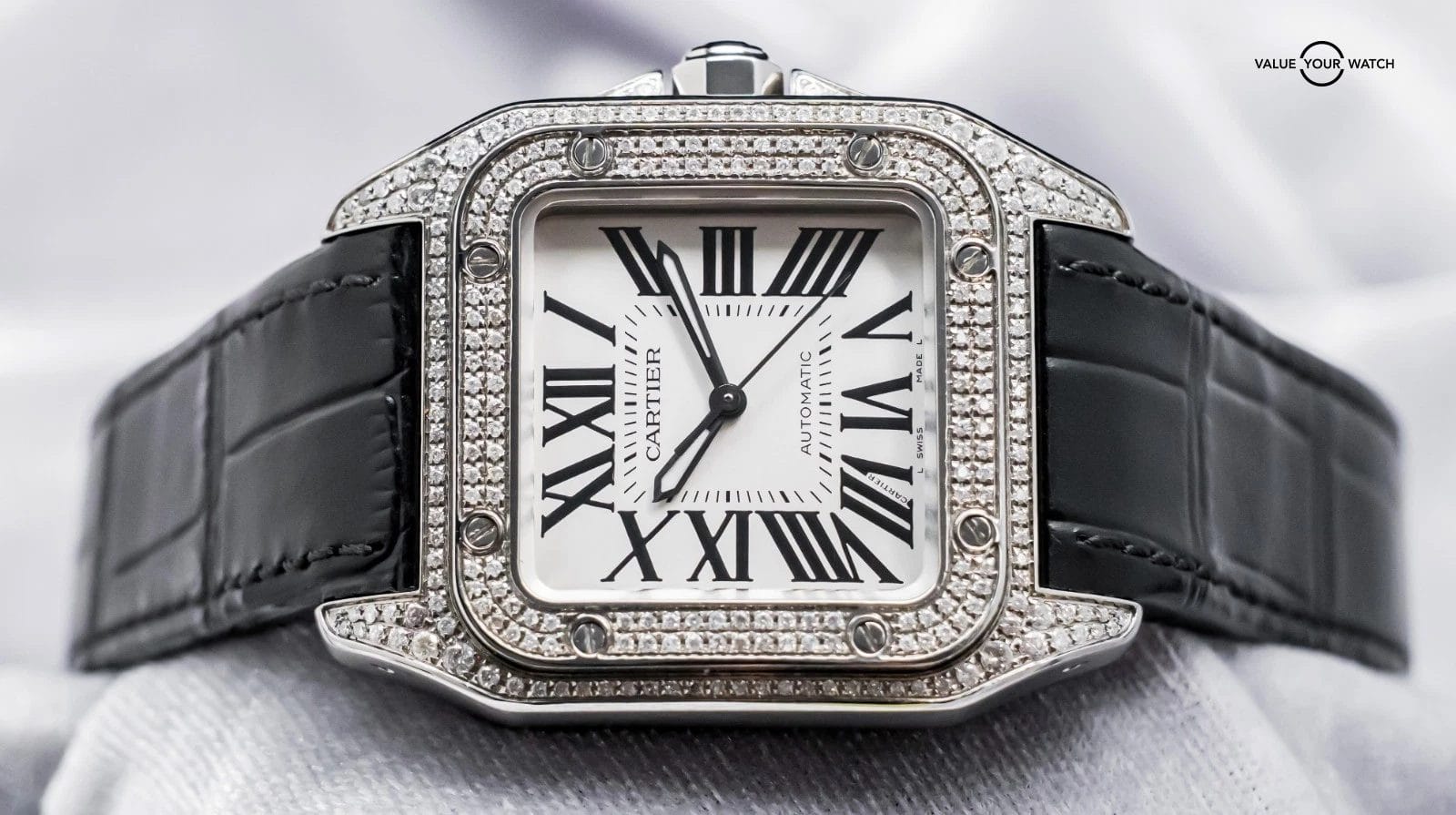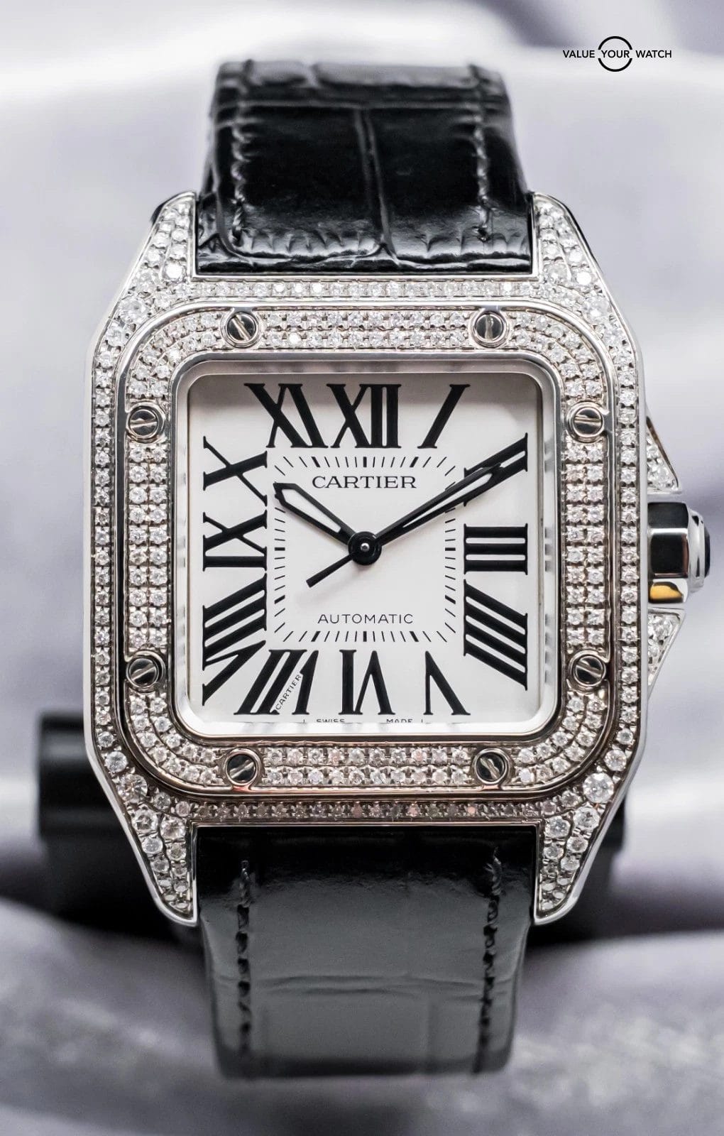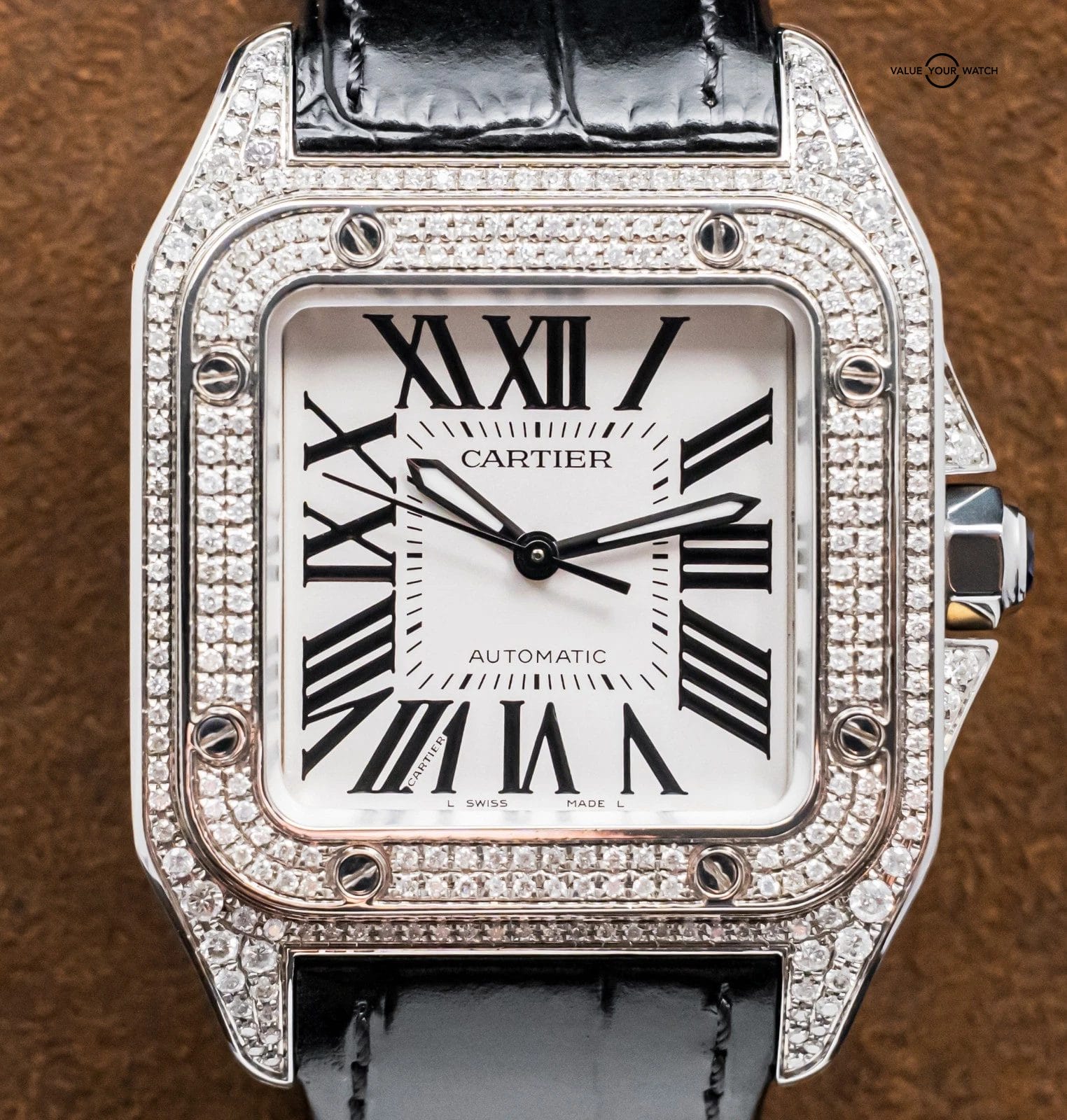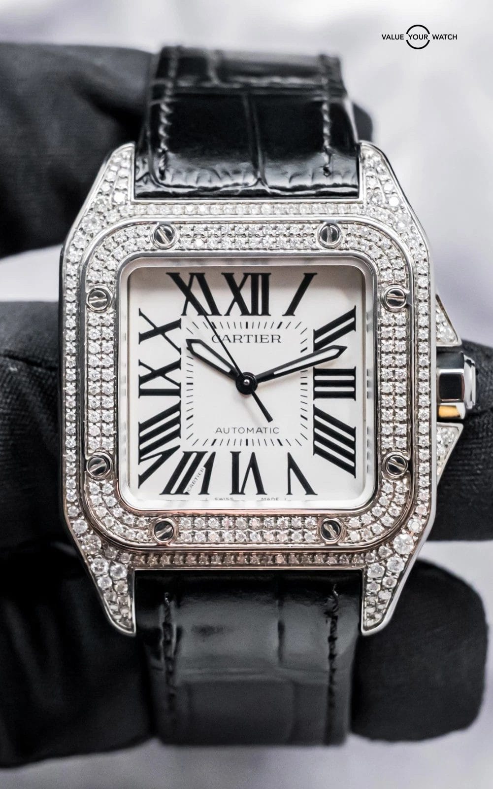 Specification: Cartier Santos 100 Medium Model Custom-Set Diamonds Midsize Steel 2878 W20106X8