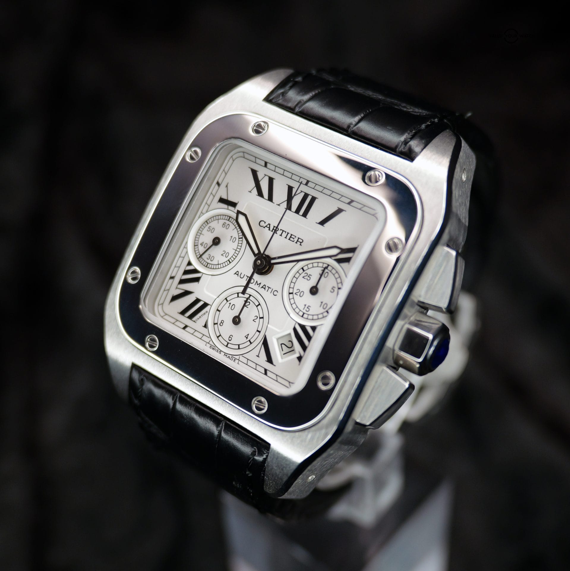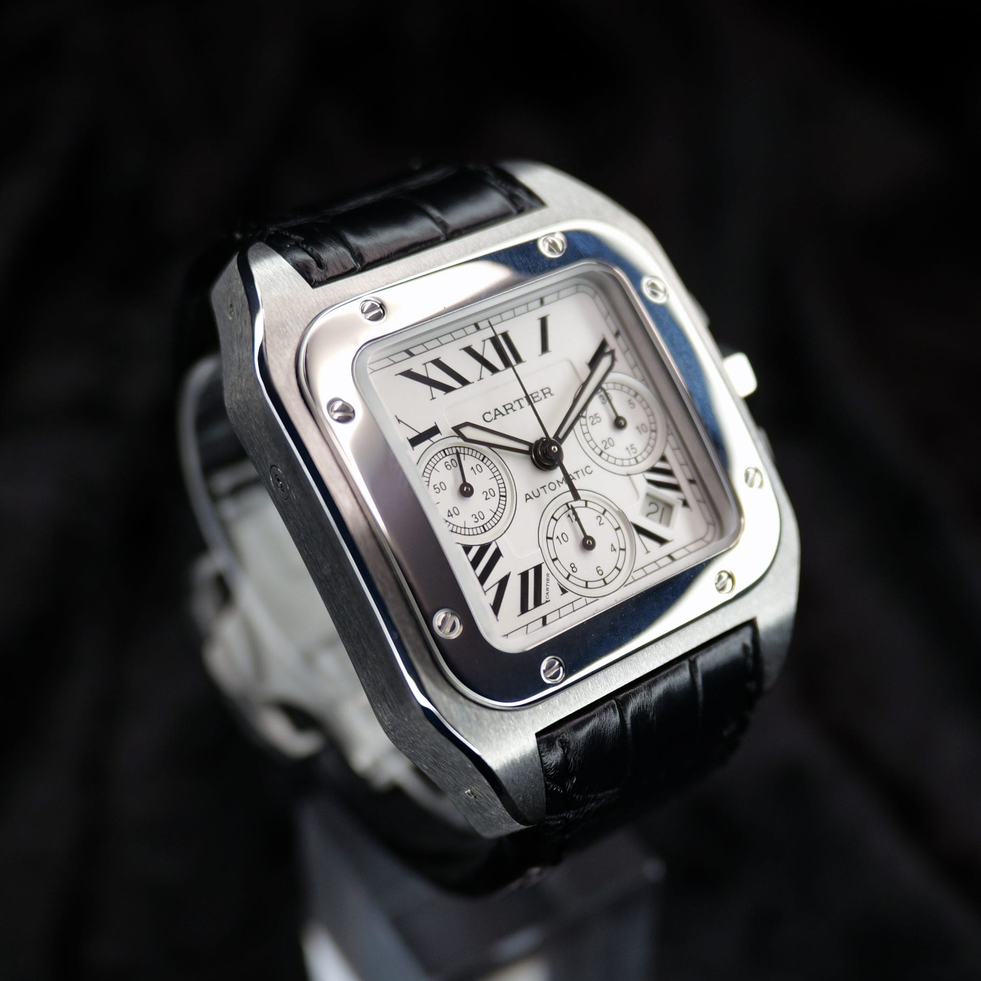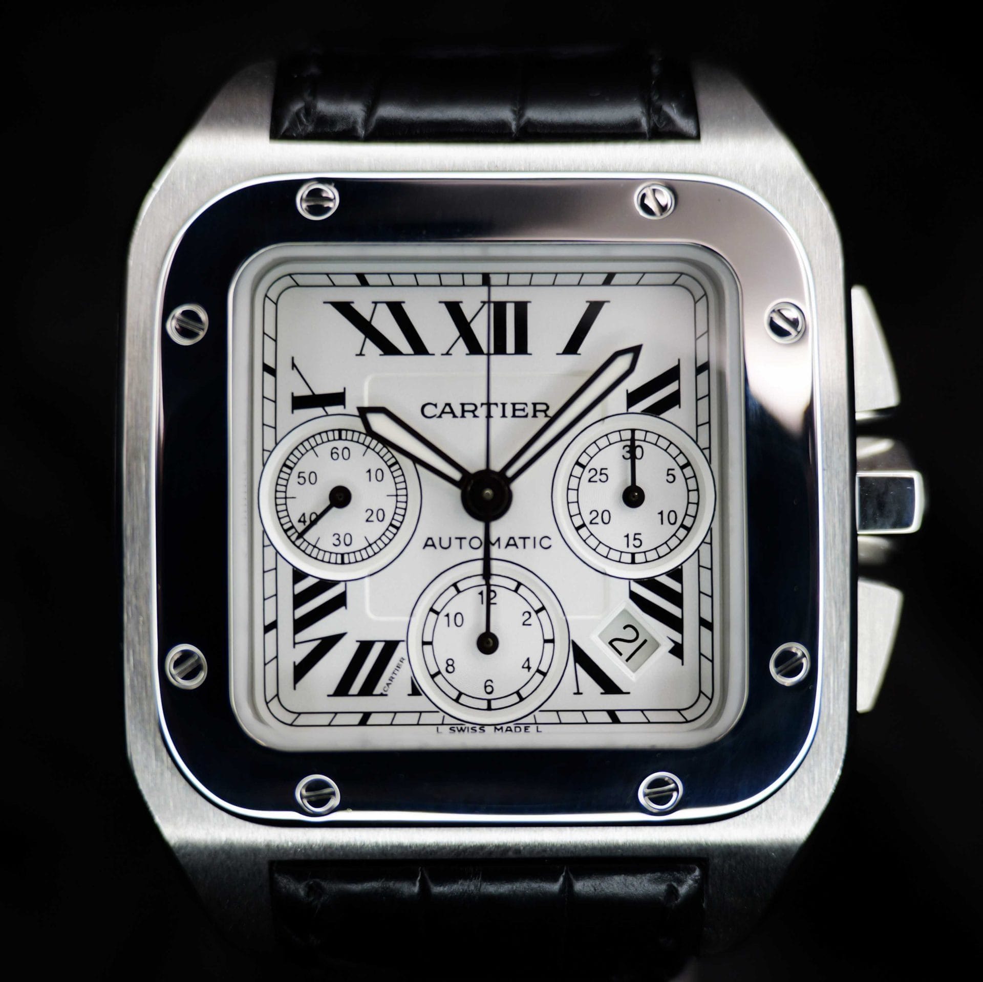 Specification: Cartier Santos 100 XL Chronograph W20090X8 42MM White Dial WARRANTY