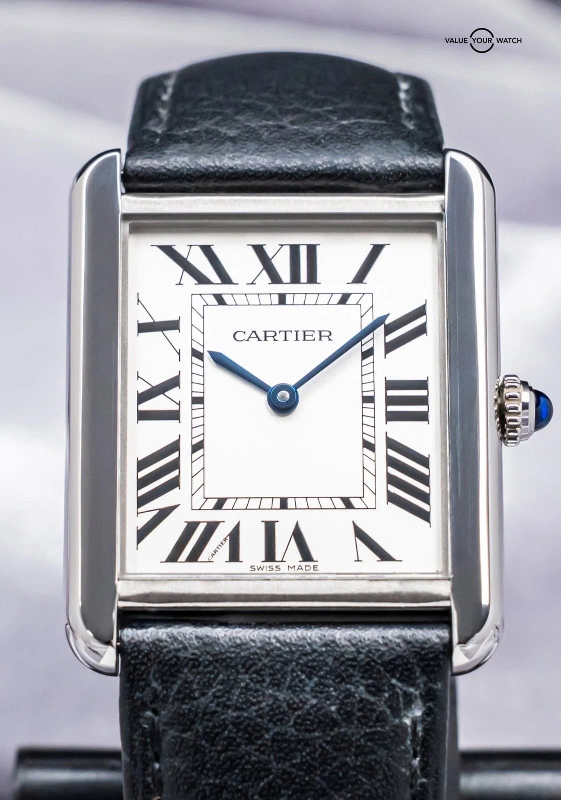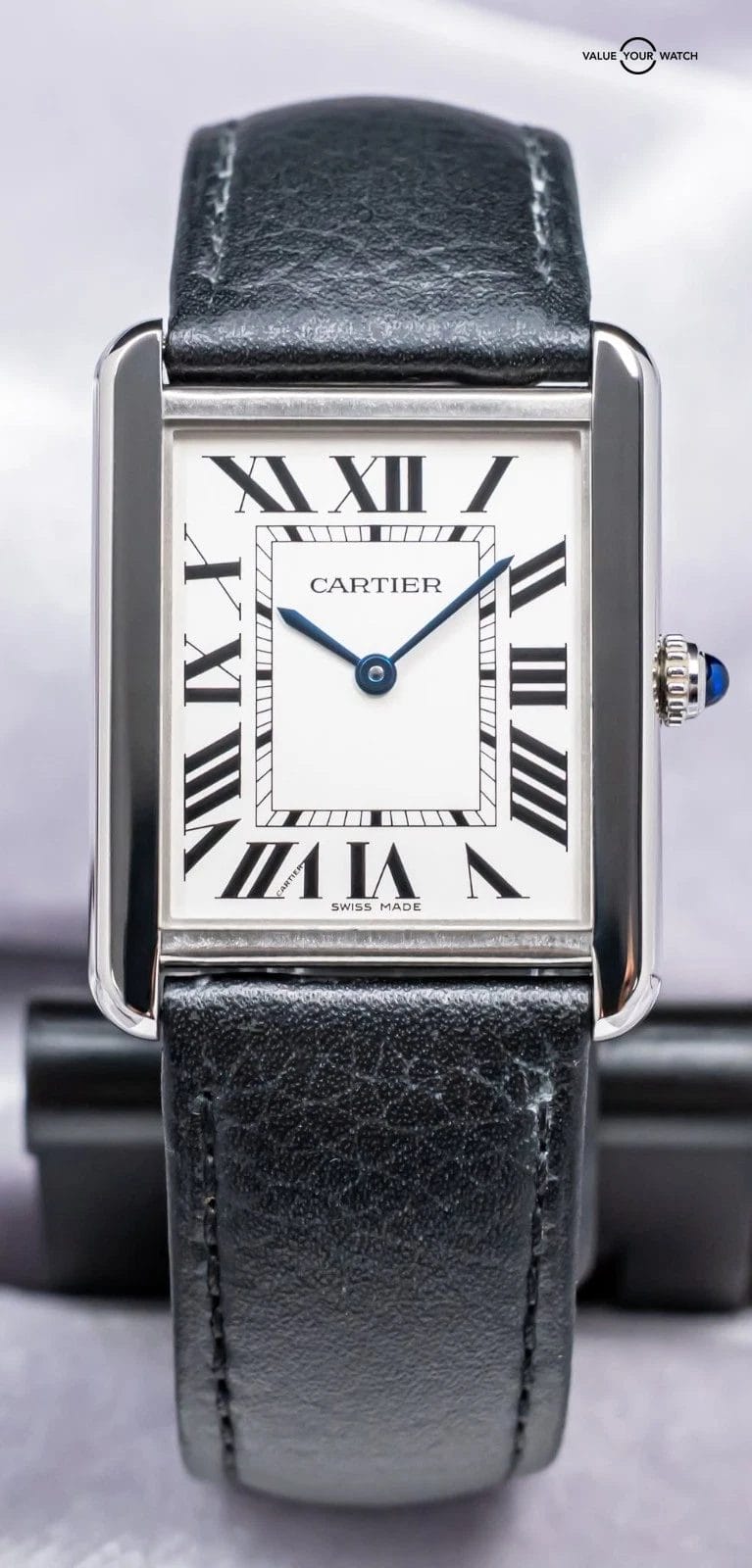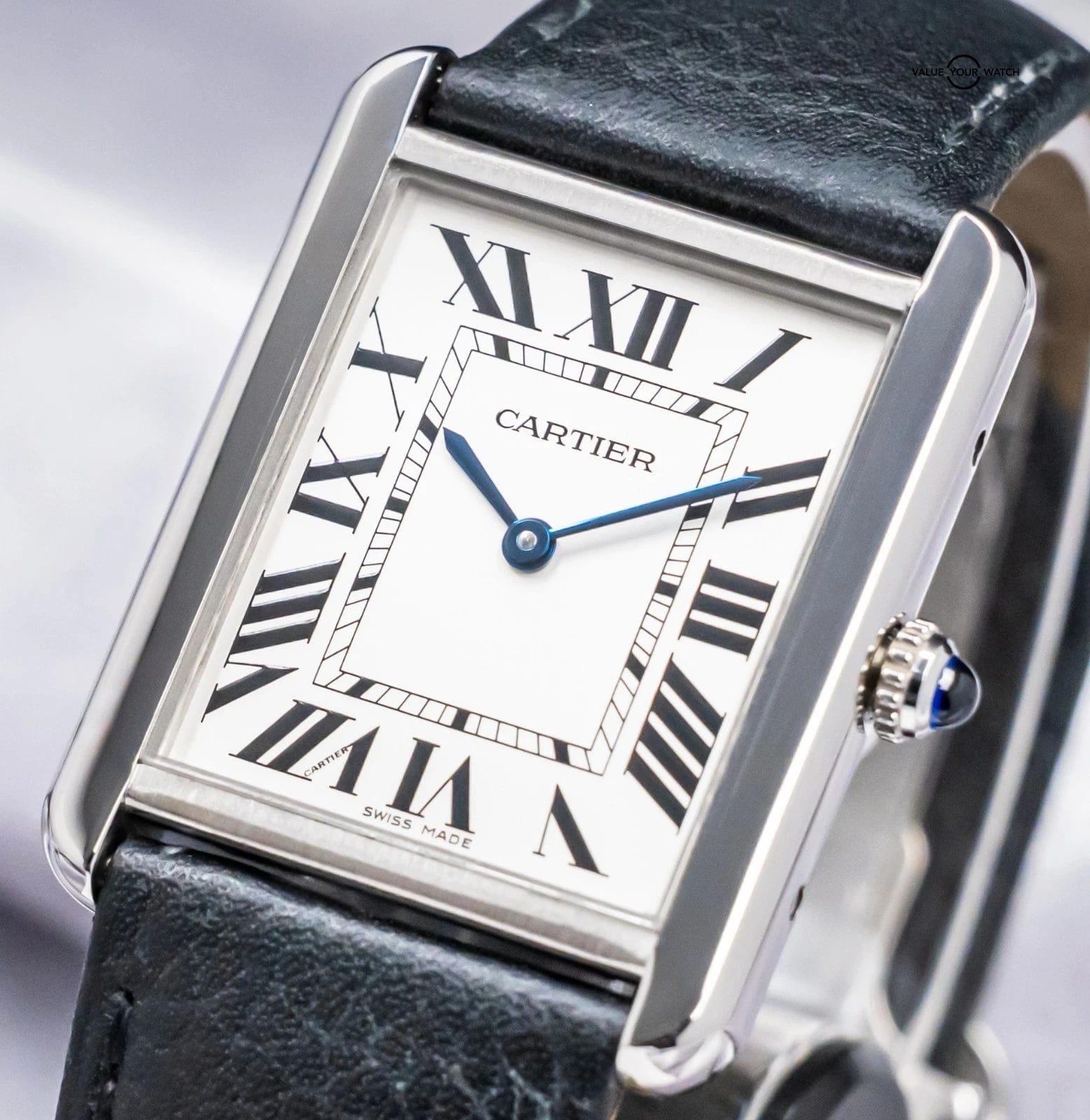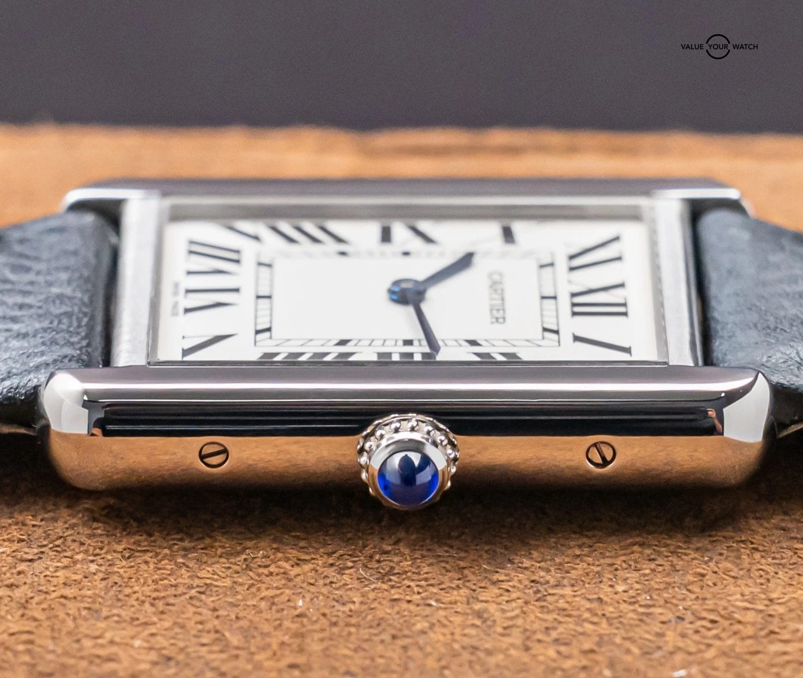 Specification: Cartier Tank Solo Large Model Ladies’ 35mm Silver Dial Steel Leather WSTA0028