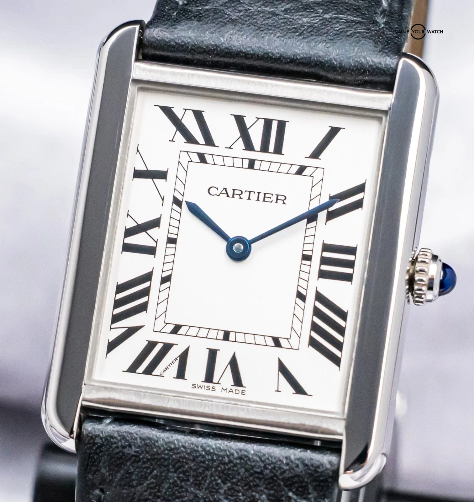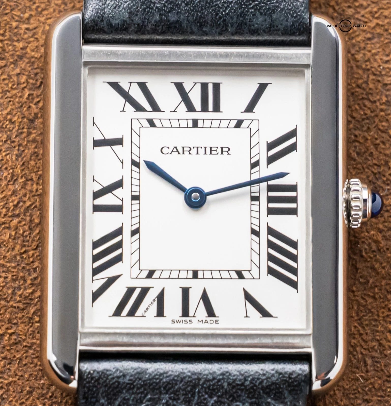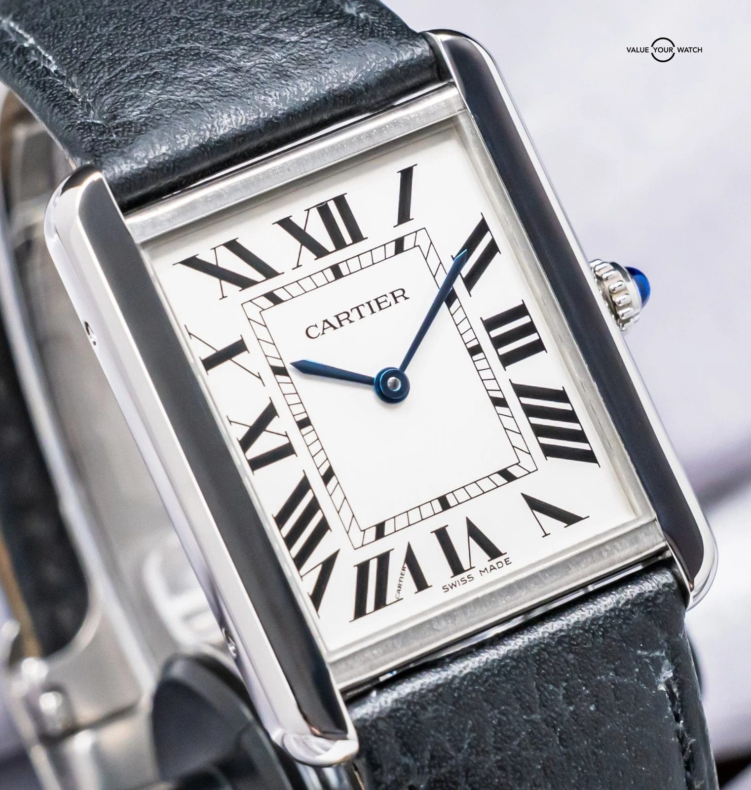 Specification: Cartier Tank Solo Large Model Ladies’ 35mm Silver Dial Steel Leather WSTA0028