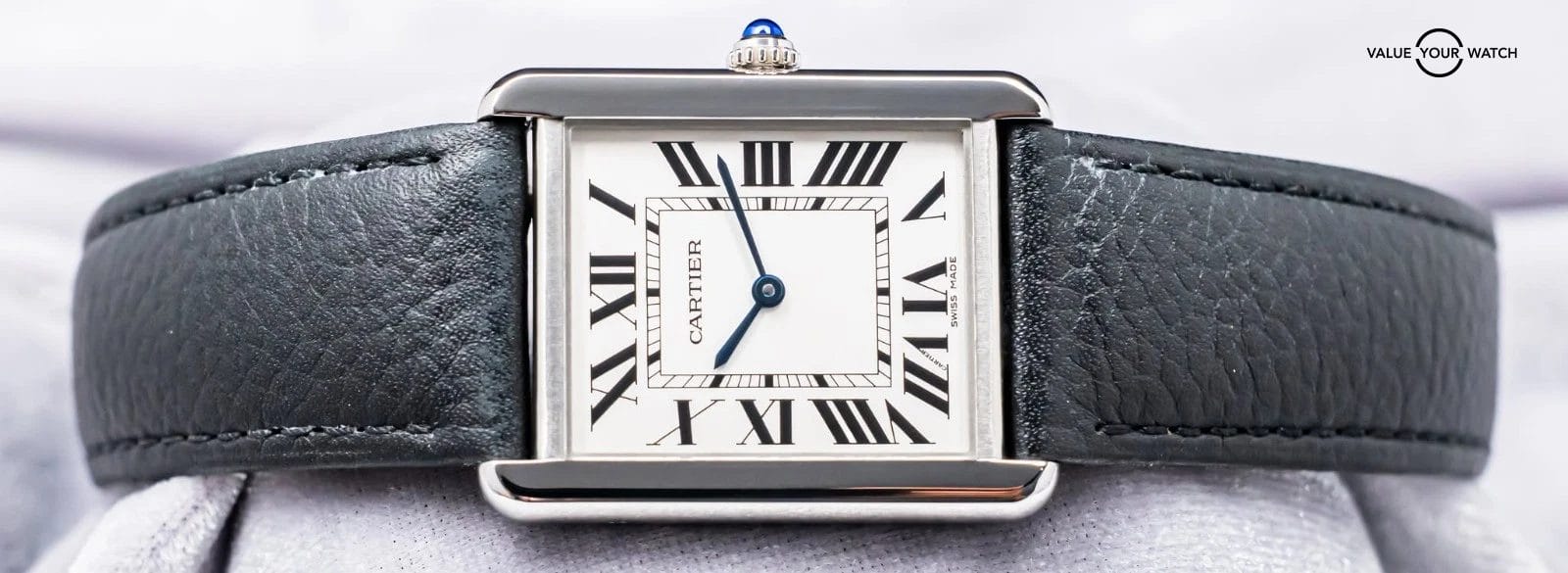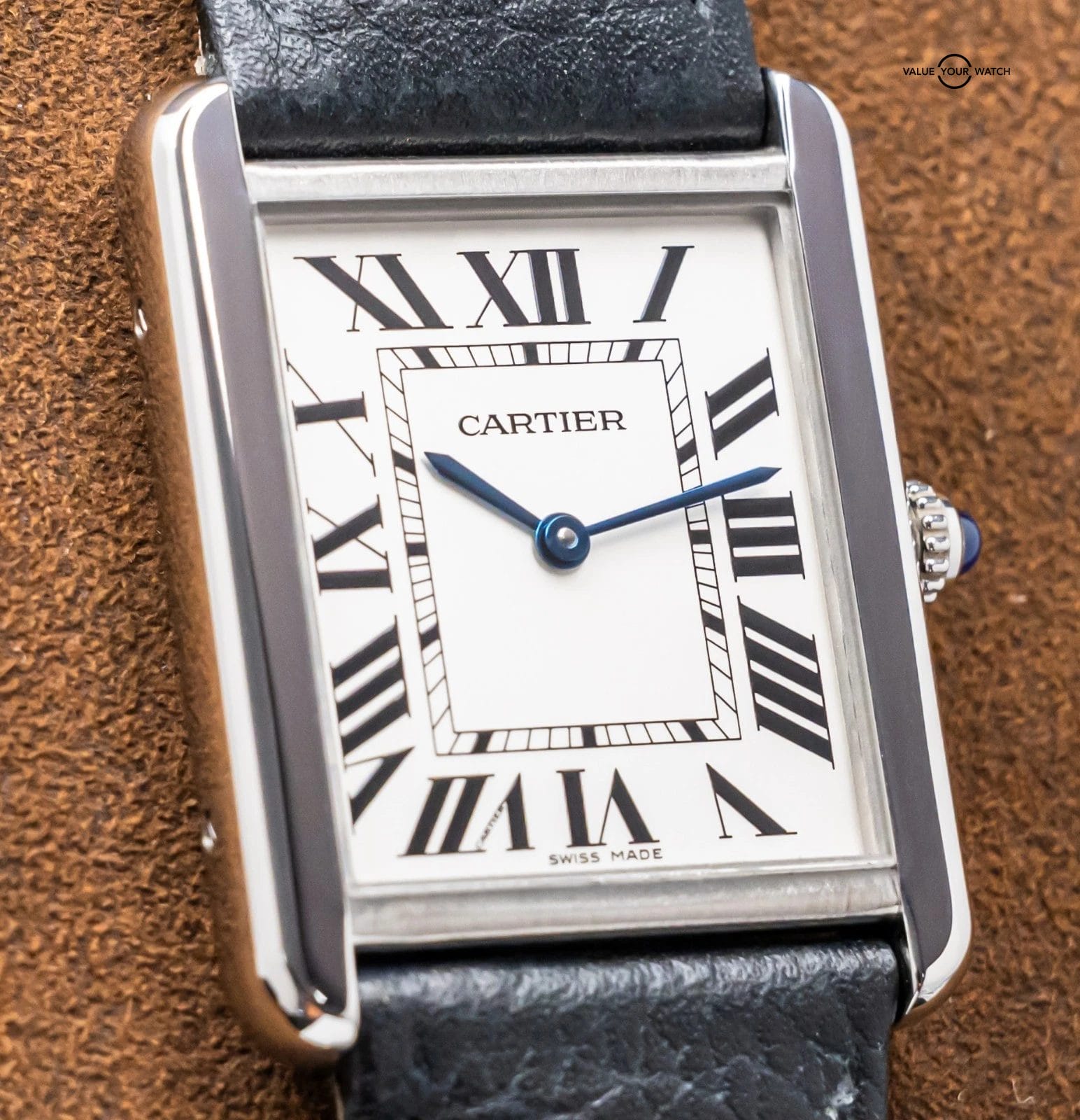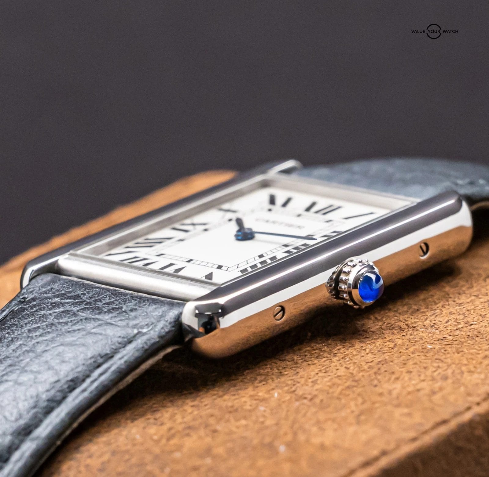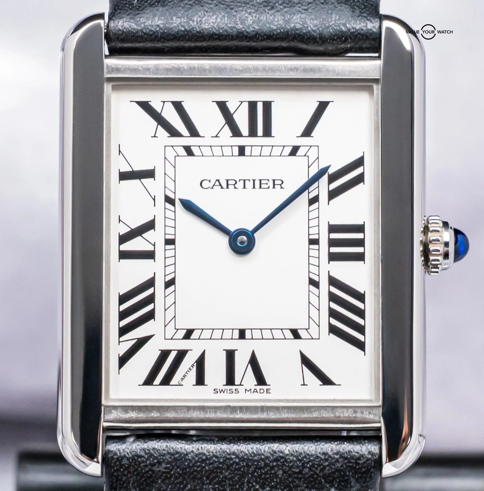 Specification: Cartier Tank Solo Large Model Ladies’ 35mm Silver Dial Steel Leather WSTA0028